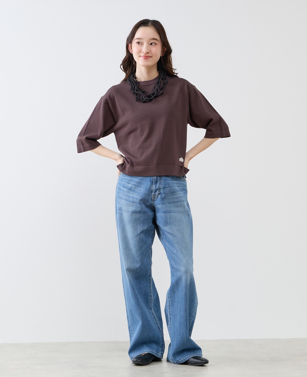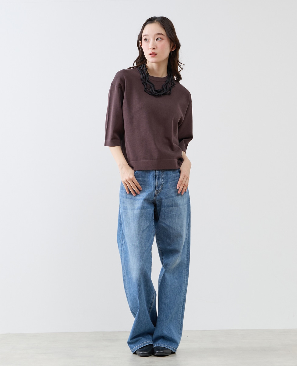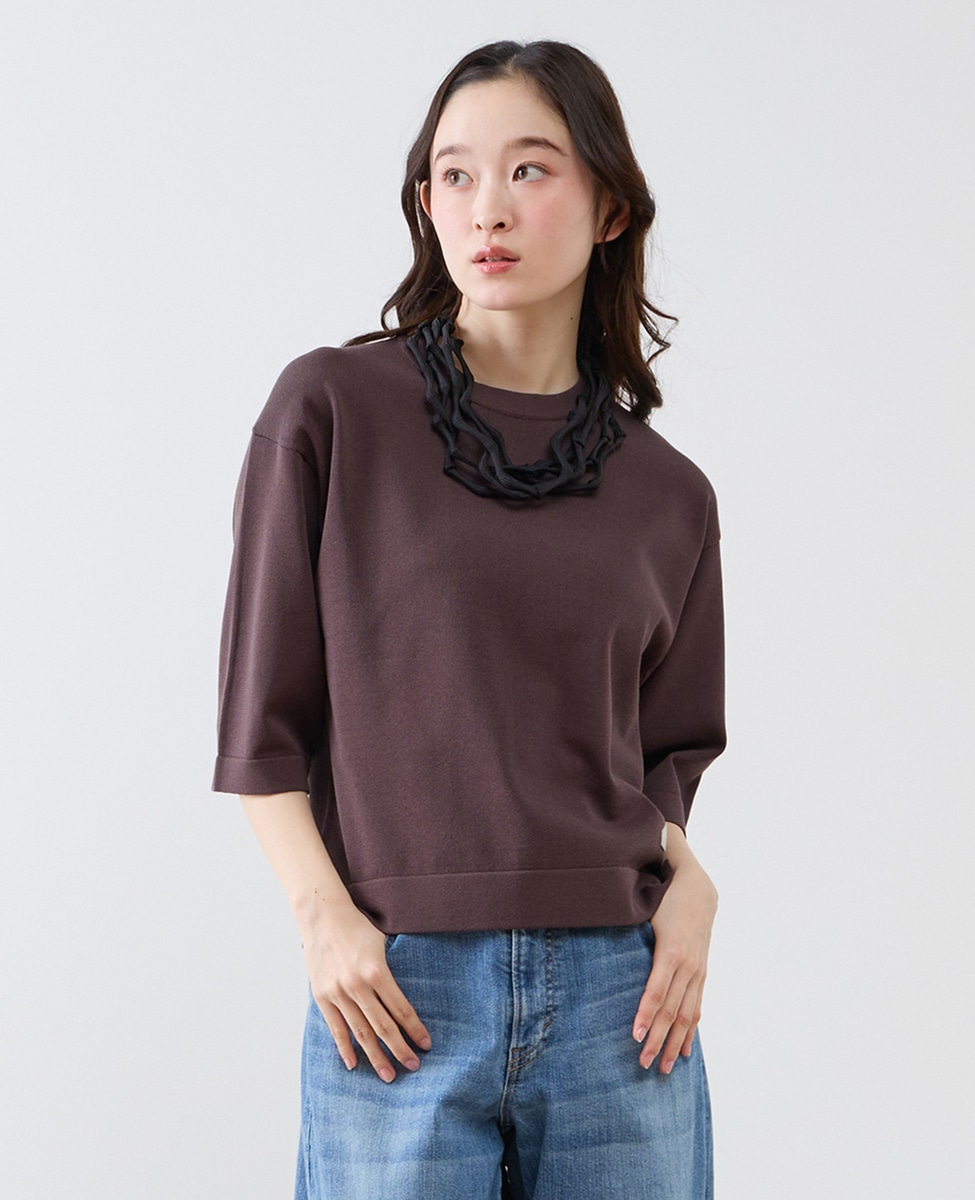 • クルーネック5分袖ニットプルオーバー 詳細画像 ダークブラウン 6