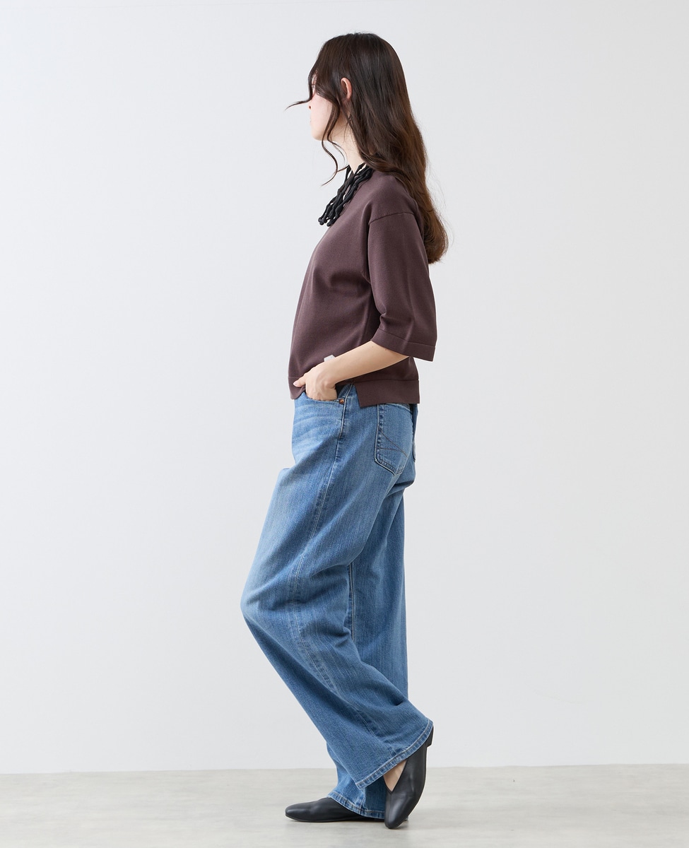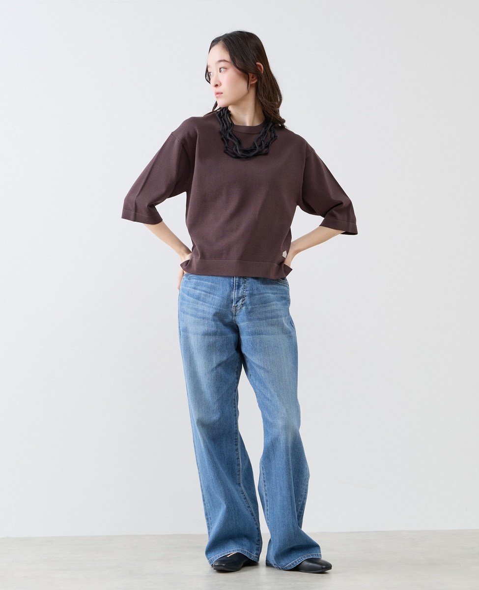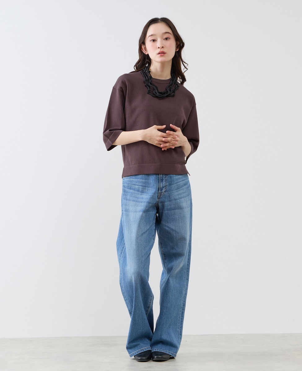 • クルーネック5分袖ニットプルオーバー 詳細画像 ダークブラウン 6