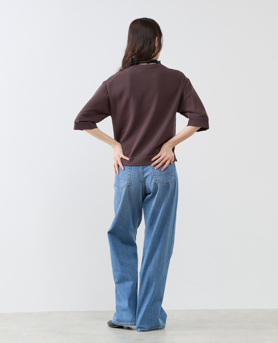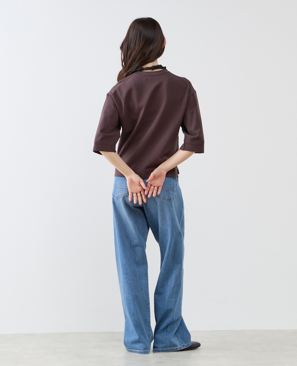 • クルーネック5分袖ニットプルオーバー 詳細画像 ダークブラウン 4