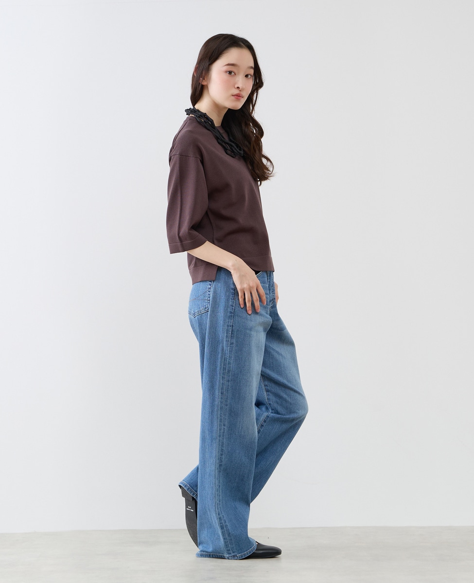 • クルーネック5分袖ニットプルオーバー 詳細画像 ブルー 13