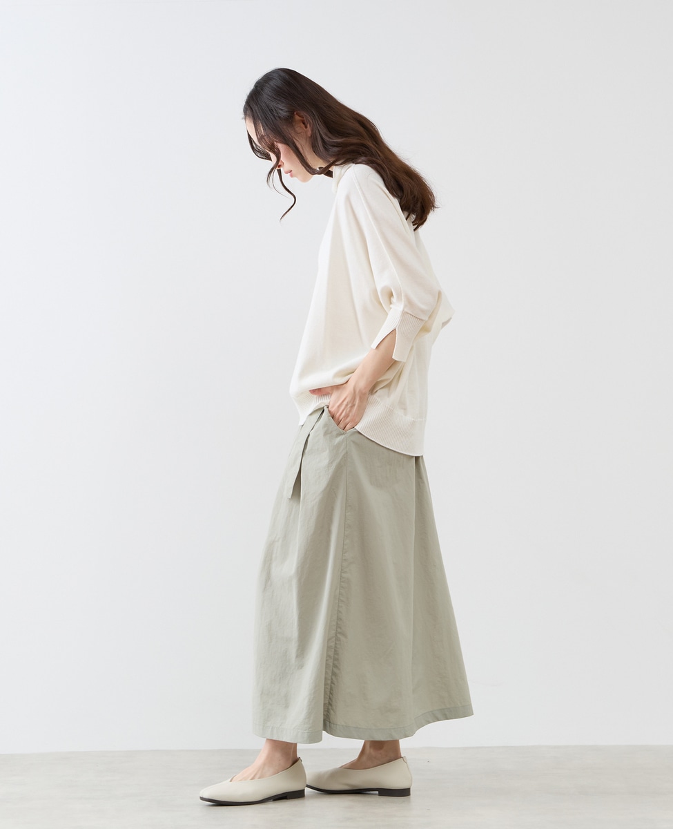 肌触りの良いコットン/麻素材を使用したドルマンニット。国内のホールガーメントで編まれていて、縫い目のないフラットな仕上がりで快適な着心地の一枚。適度なゆとりのあるシルエットと前後差のある絶妙な着丈のバランスが人気の商品です。