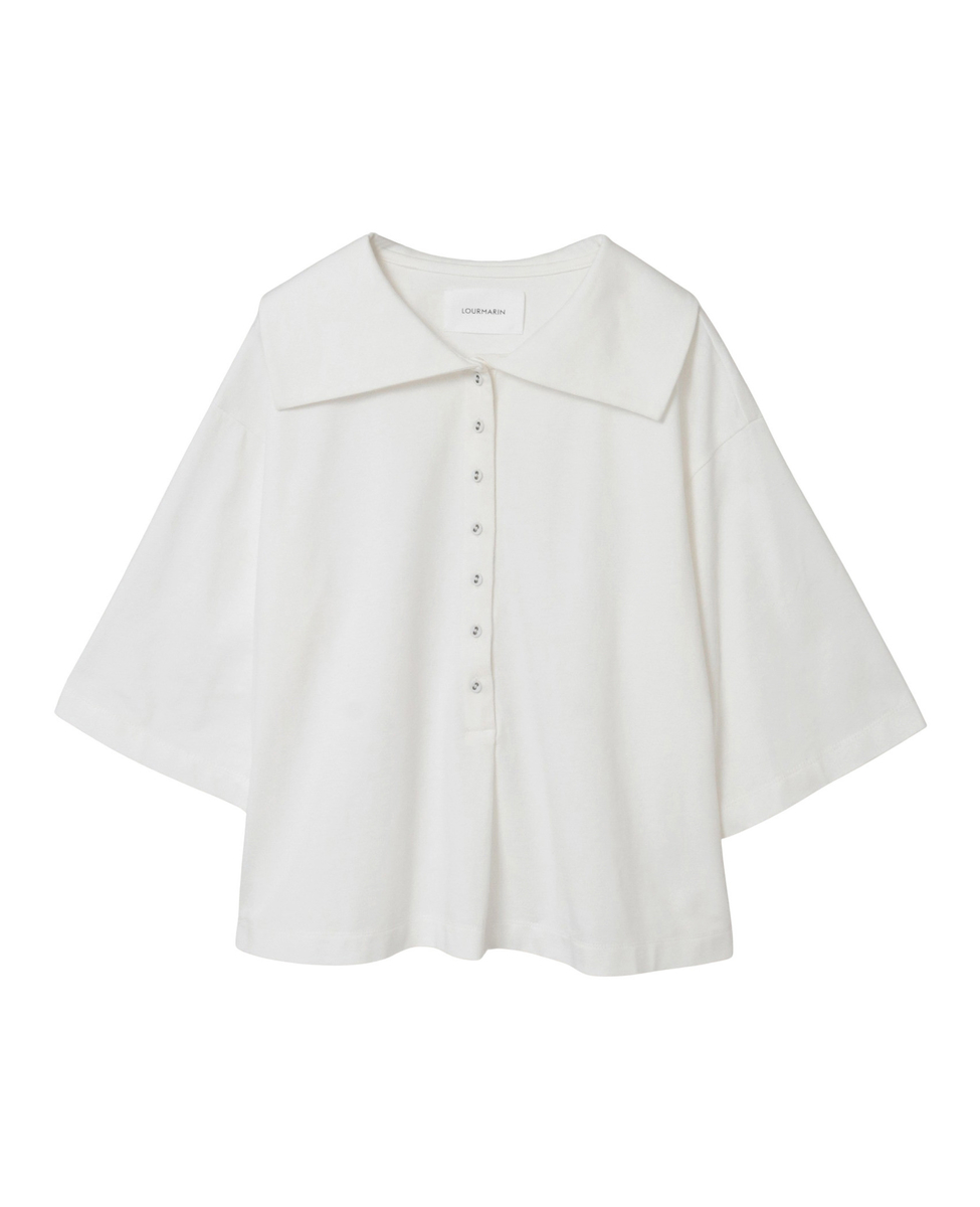 大きな衿が女性らしいデザインのカットソー。衿元はスッキリ、身幅はゆとりを持たせたシルエットの一枚。ベーシックなパンツ合わせでも華やかなスタイリングが叶います。