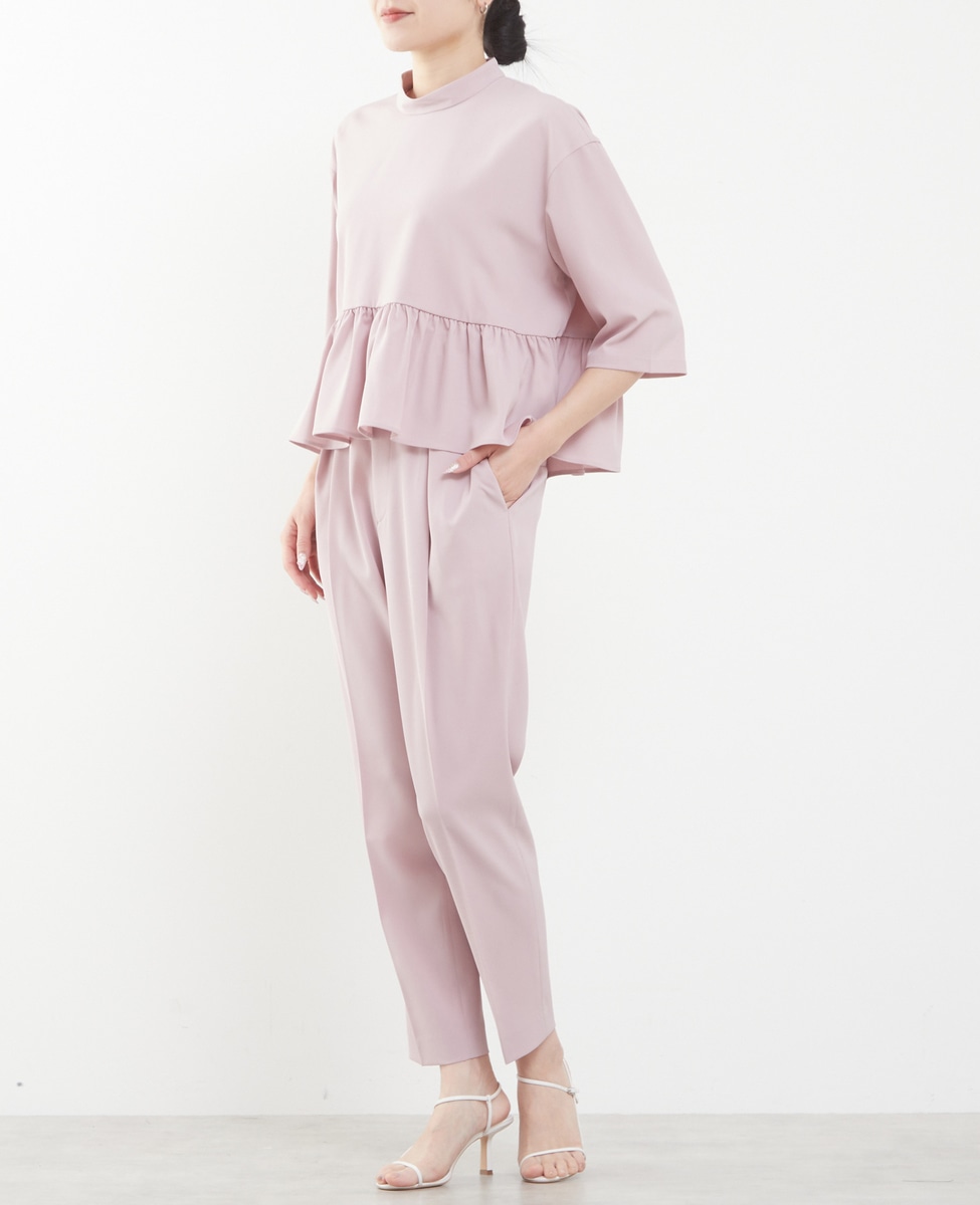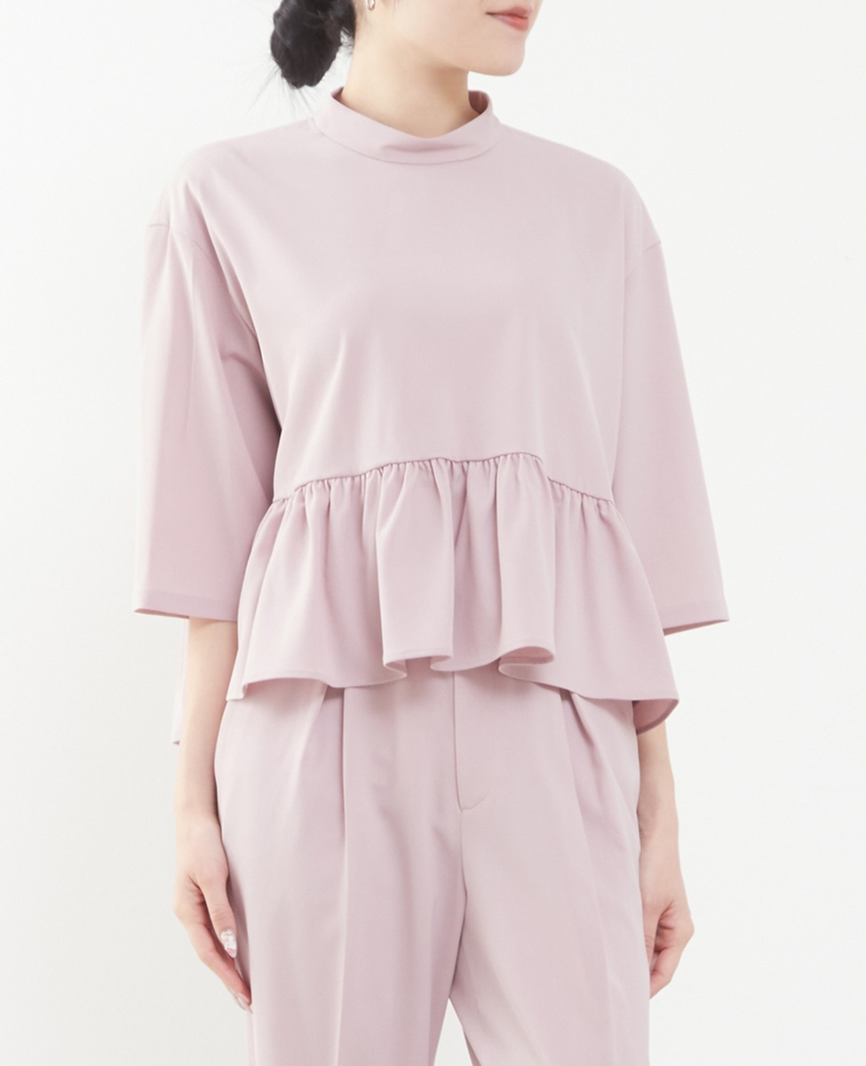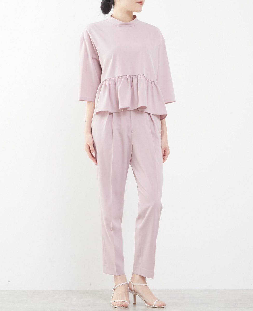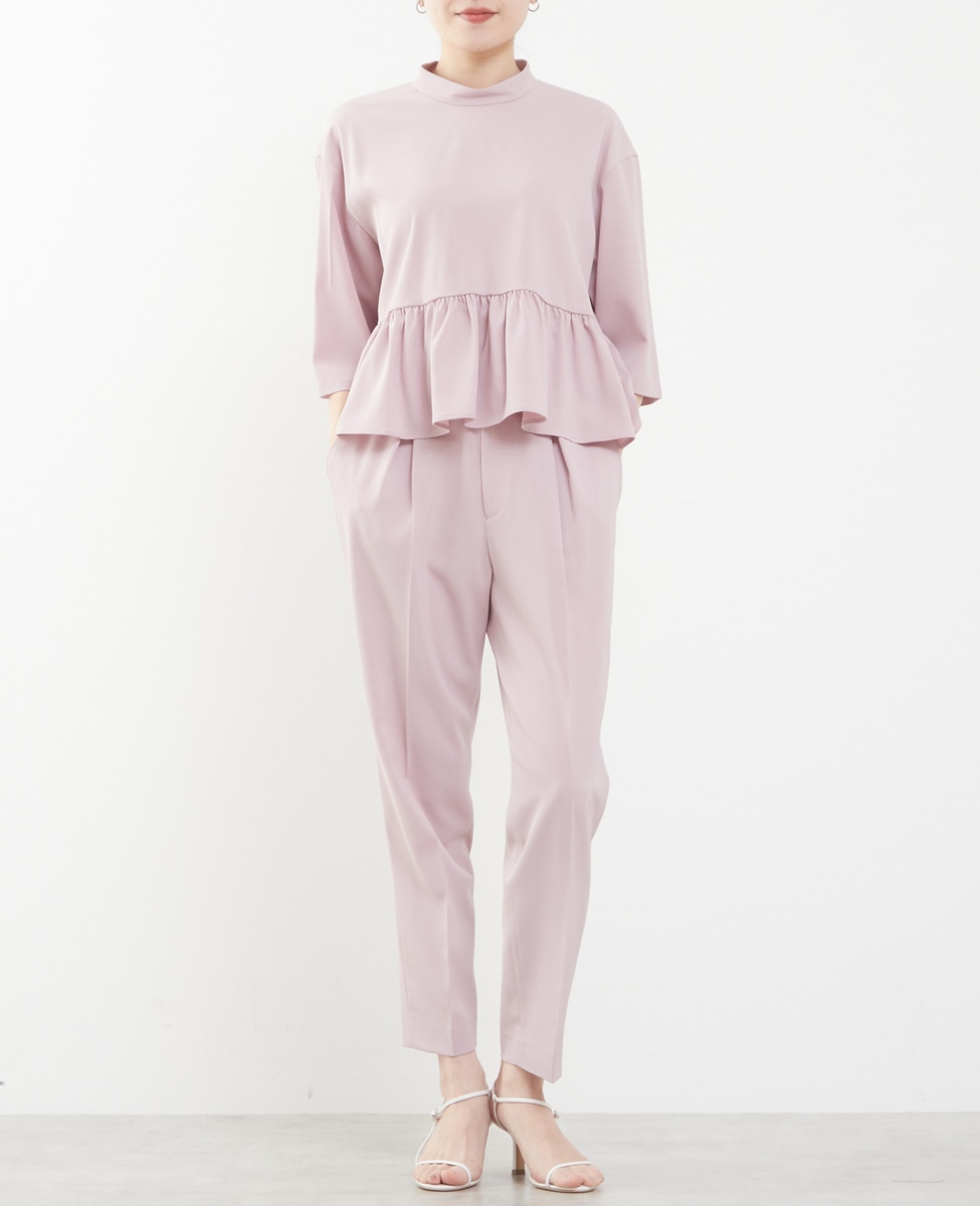 女性らしいペプラムのデザインを可愛くなりすぎないように