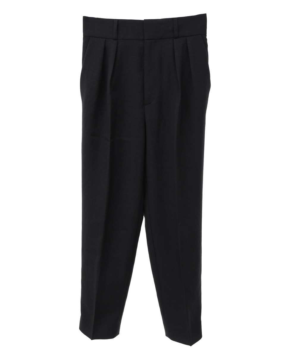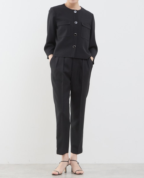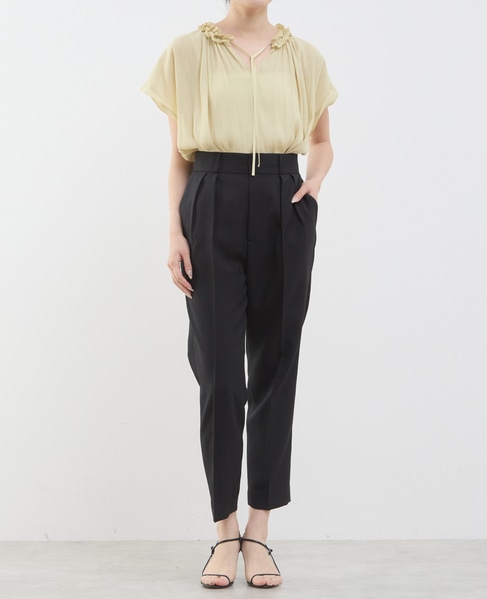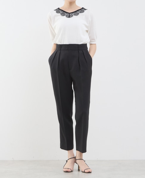 腰周りにきれいなフォルムのゆとりをとり、女性らしいテーパードにしています。