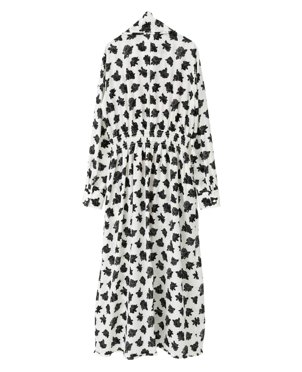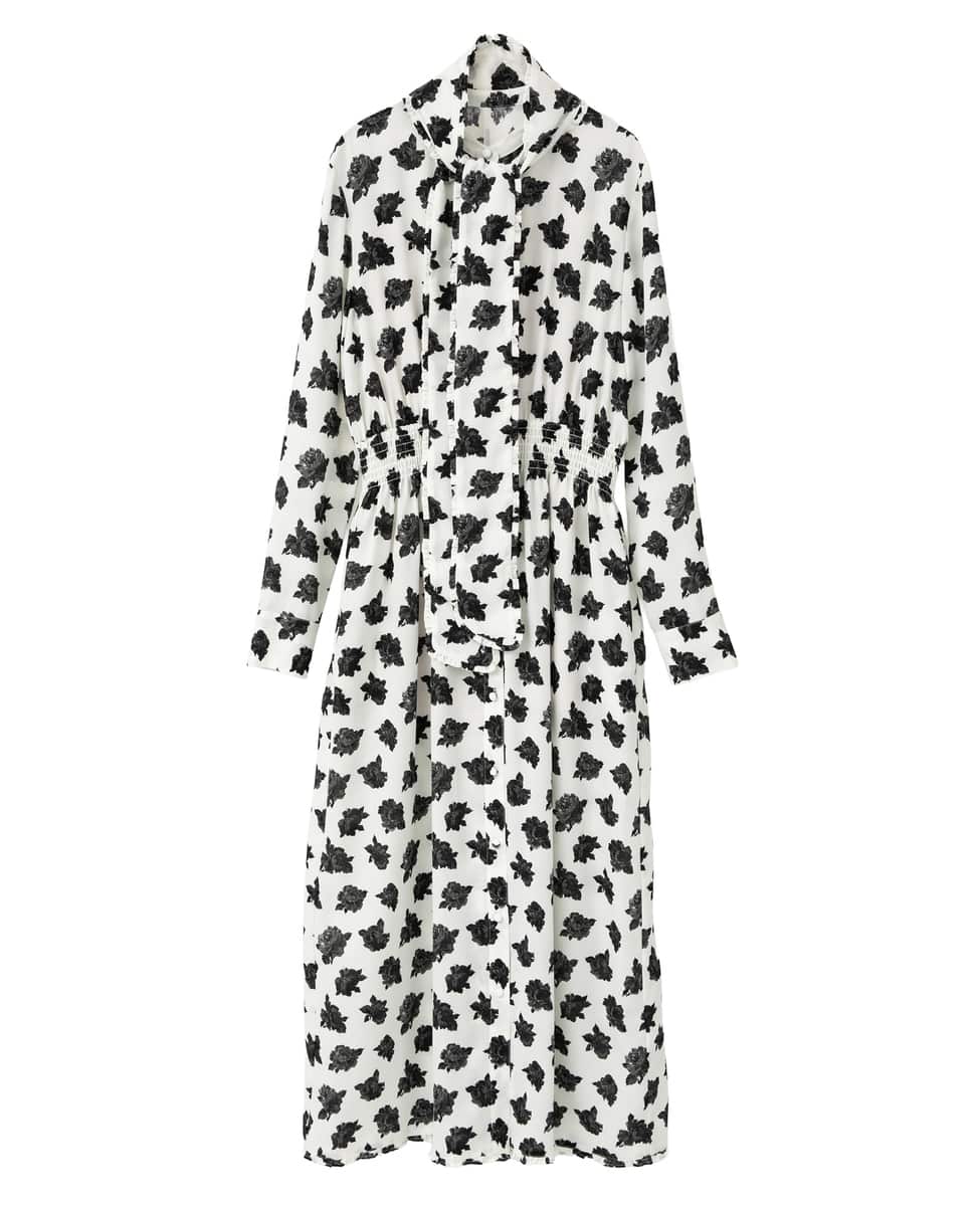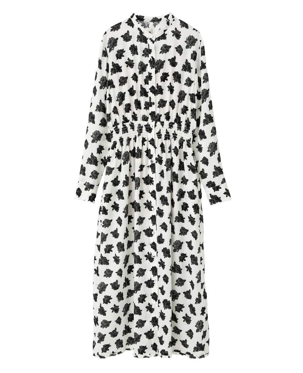 バンドカラーのシャツドレスはジョーゼットがクラシックなムード。