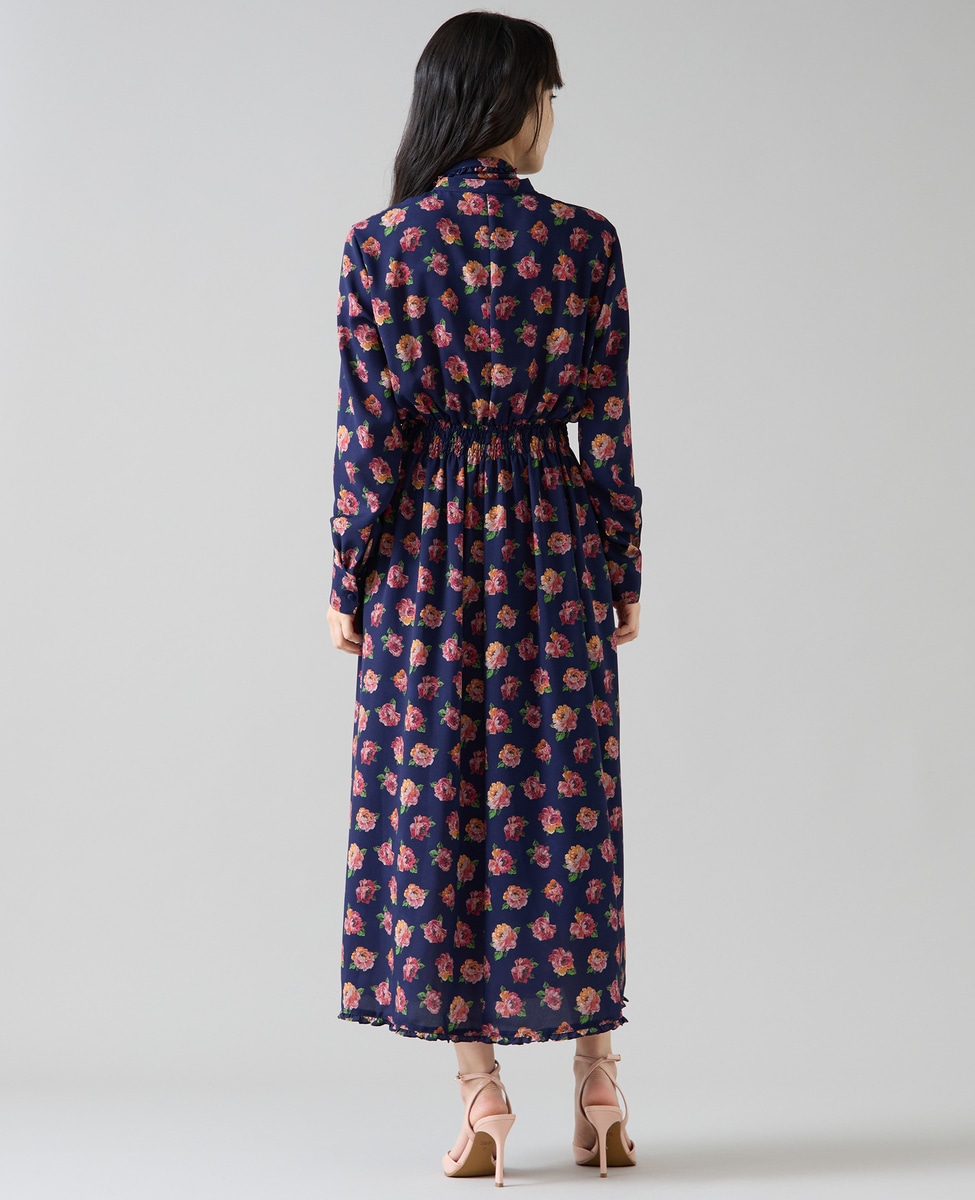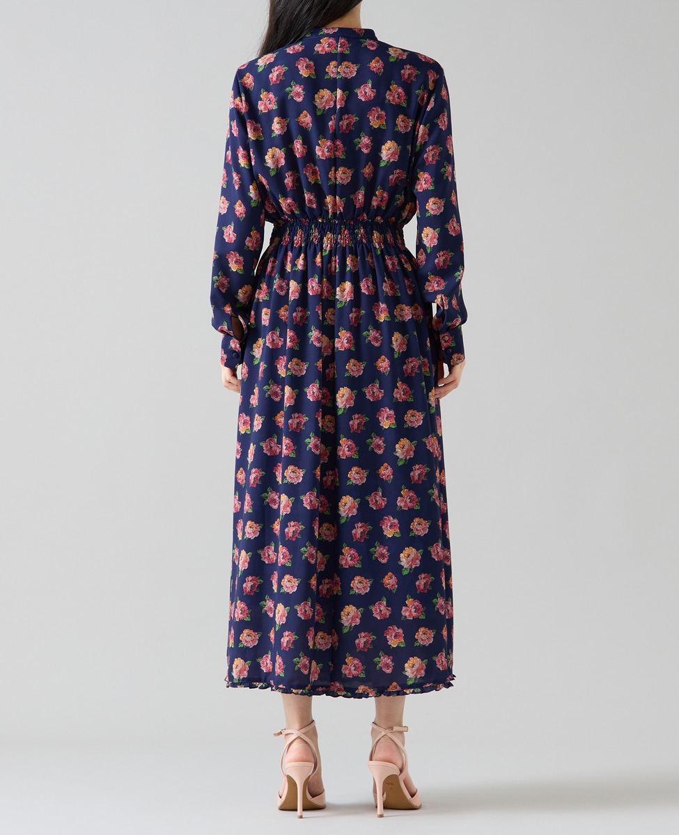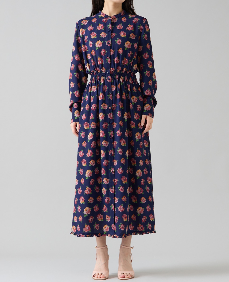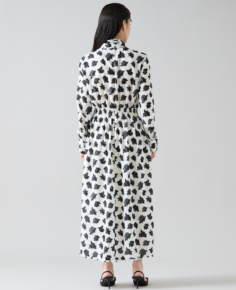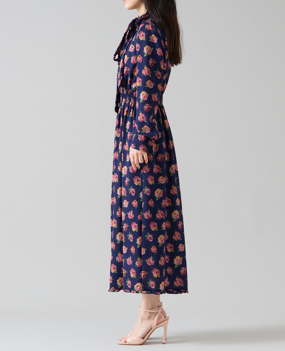 オールドローズプリントボウリボン付きワンピース