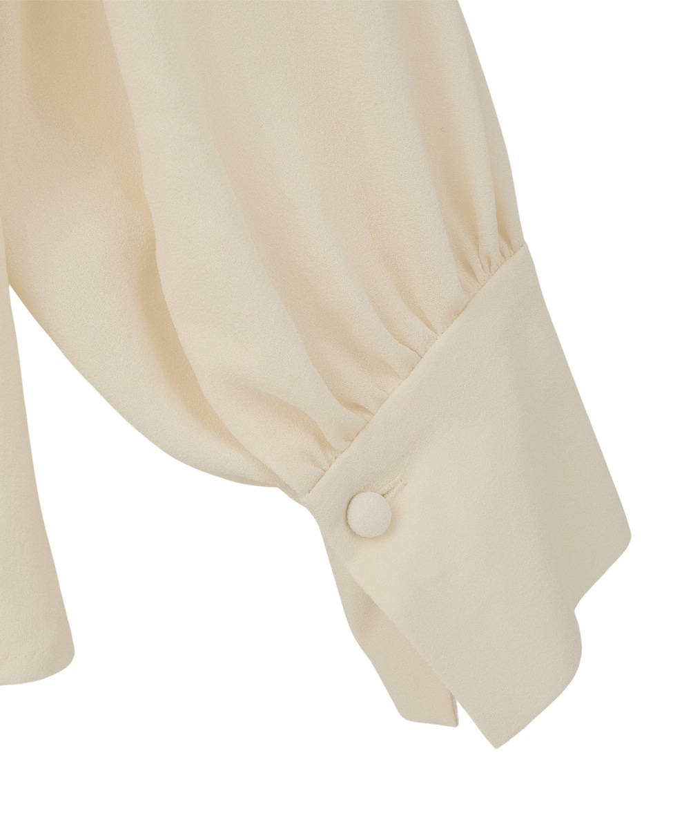 小さなクルミ釦がたくさん付いたクラシカルなブラウス。