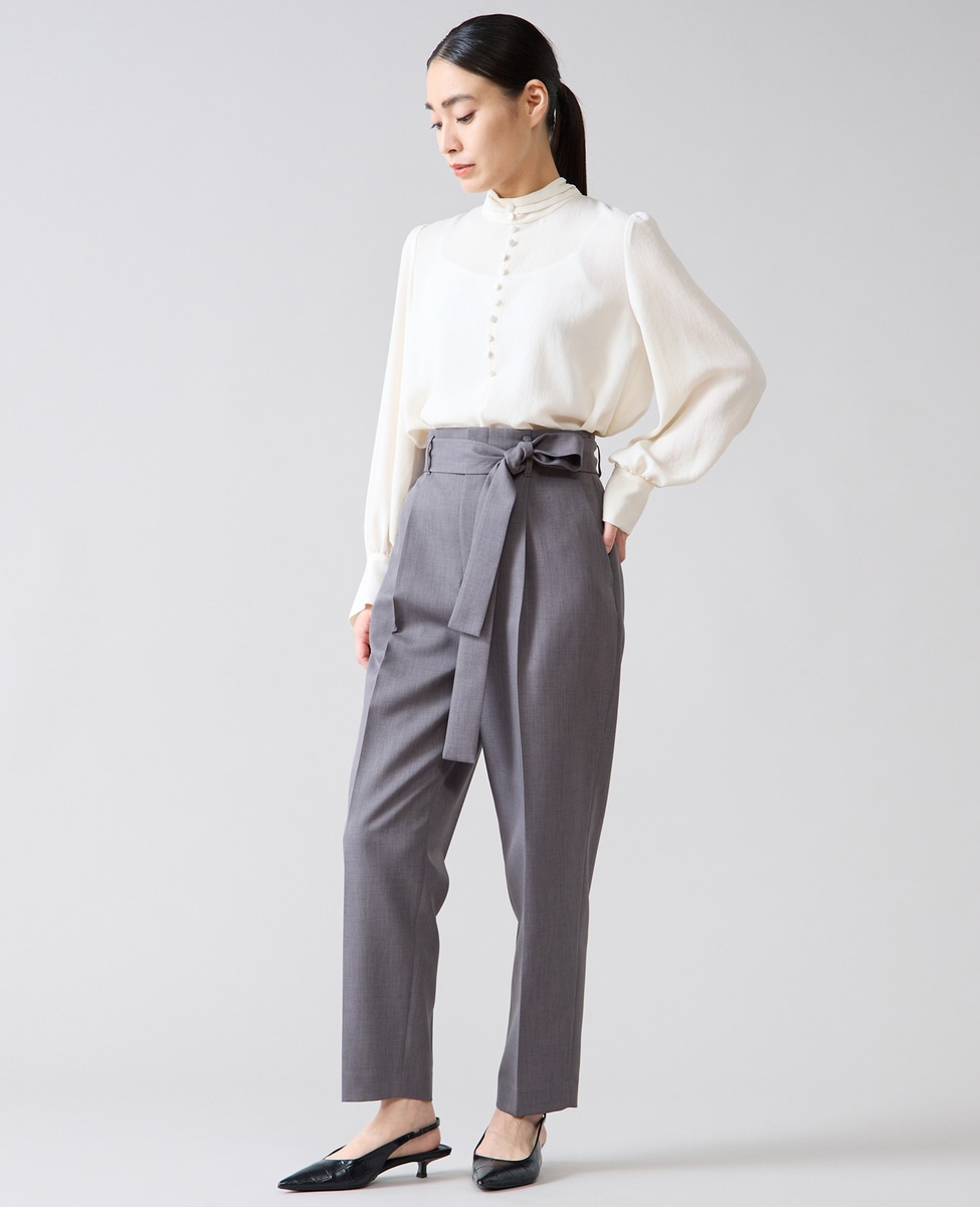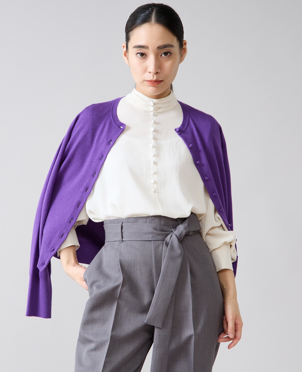 ジャケットINにしても釦と合わせてさりげない存在感のあるブラウスです。