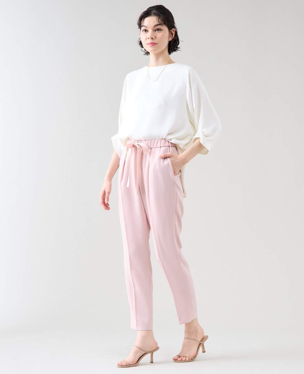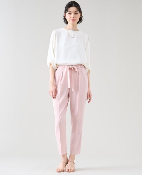 ウエストぐるりゴムギャザーのイージーテーパードパンツです。