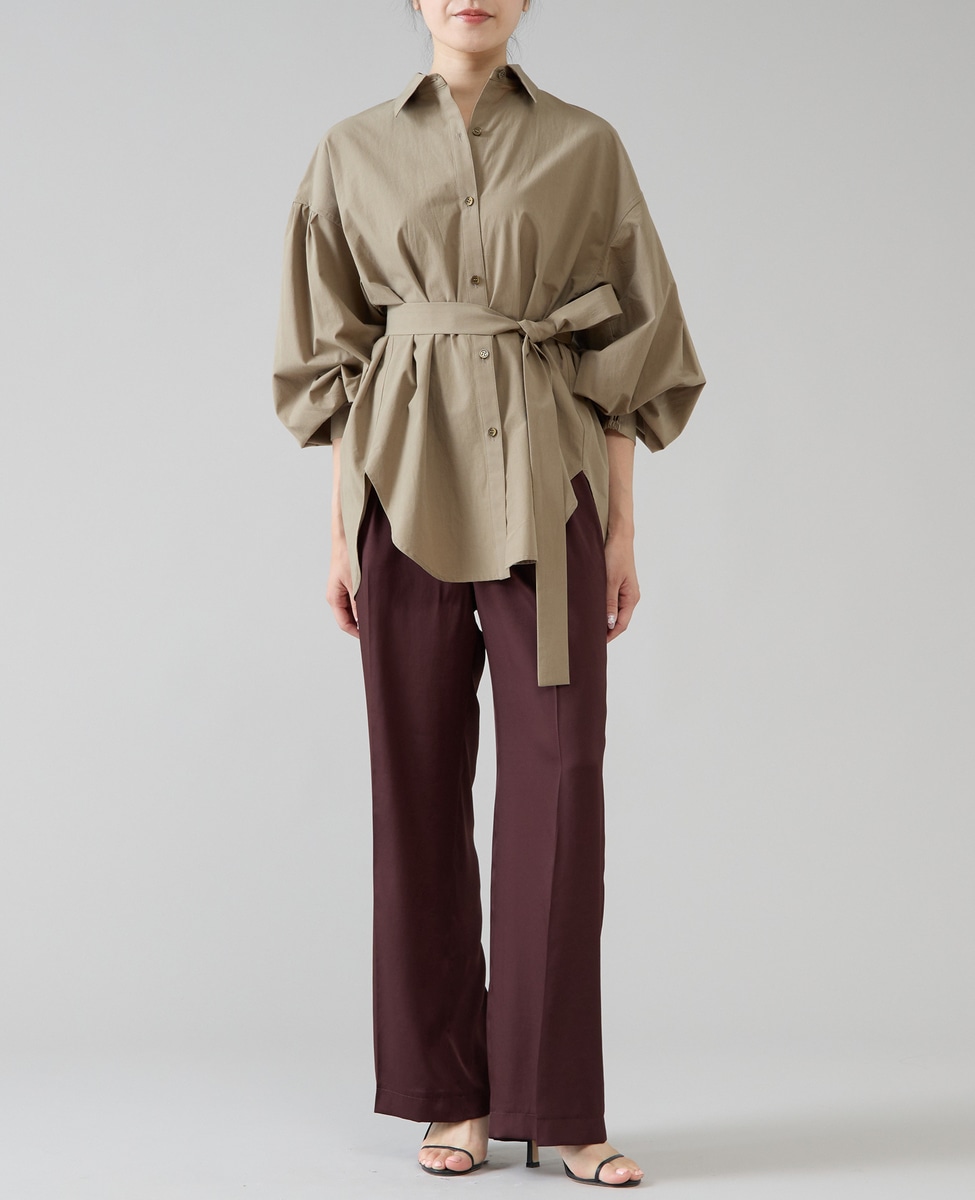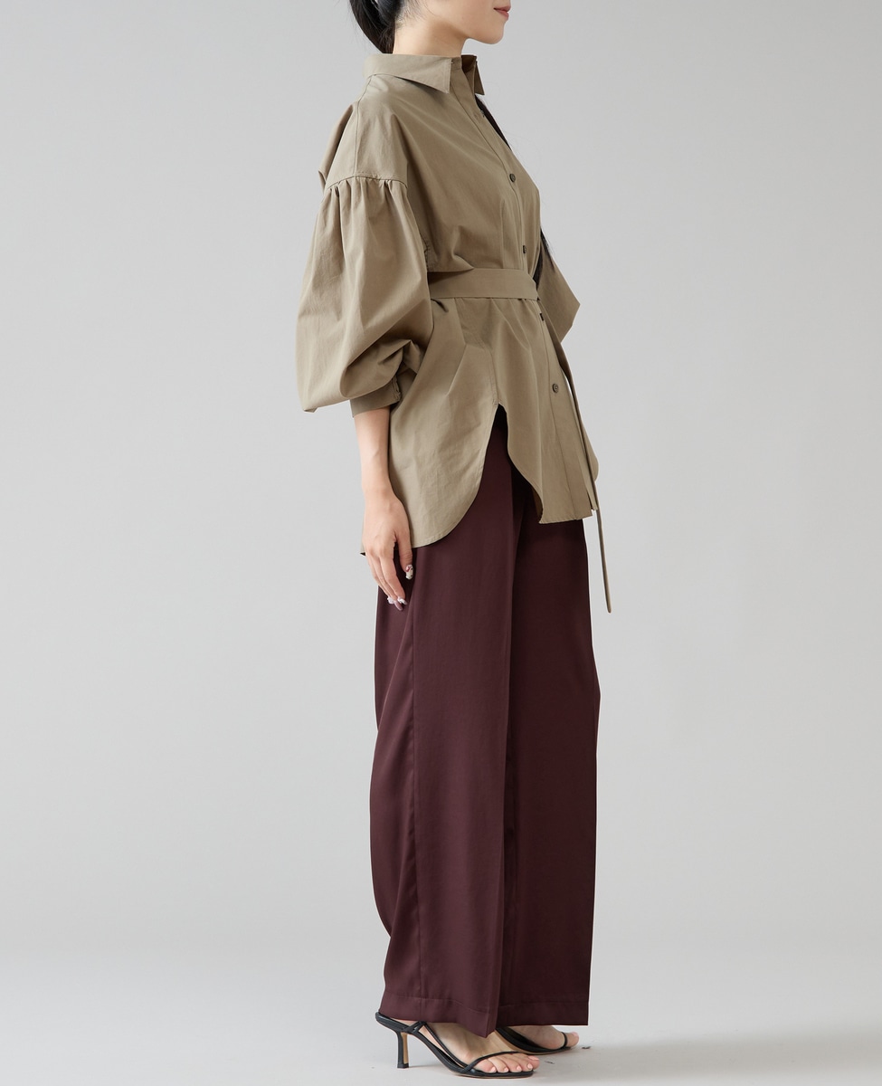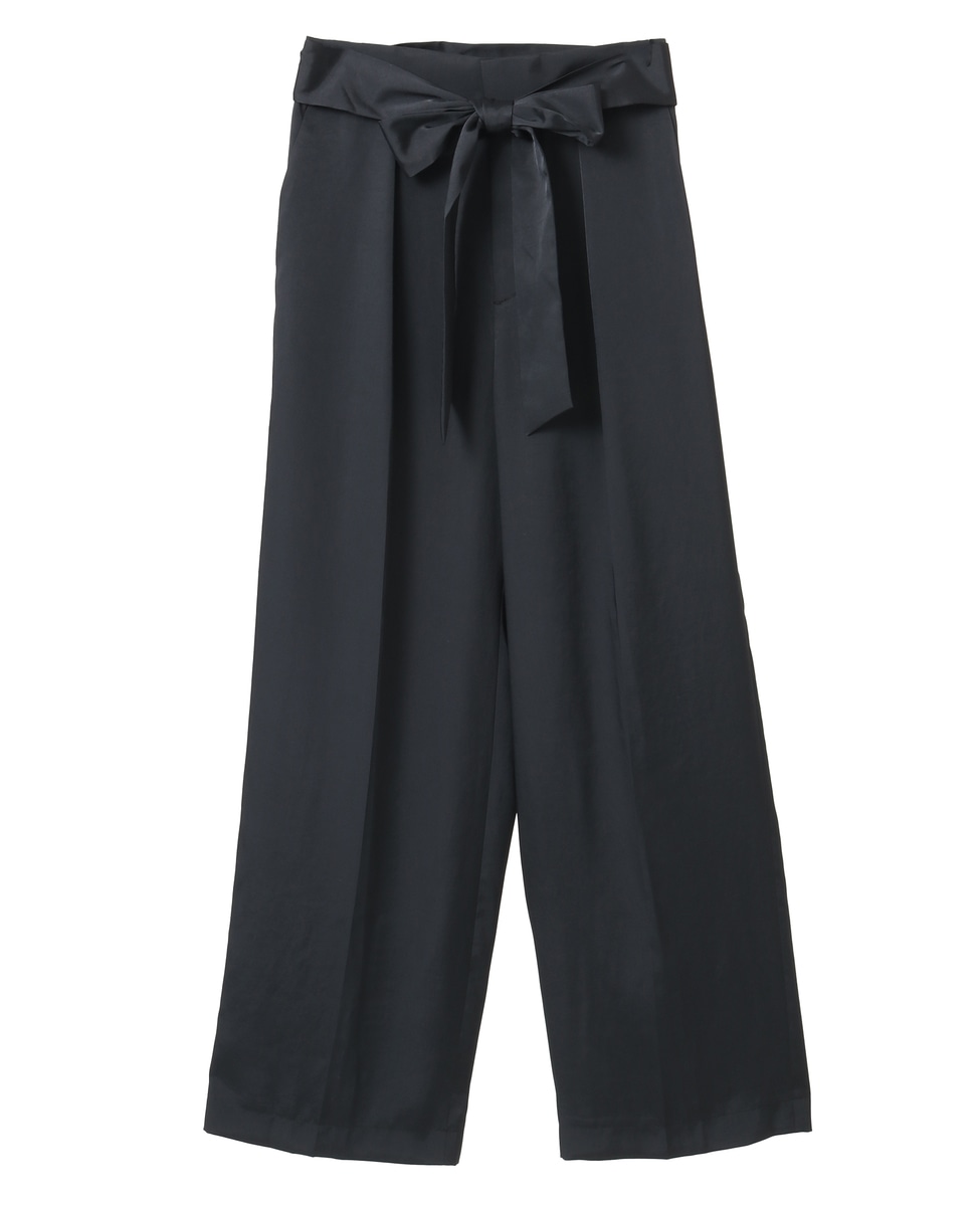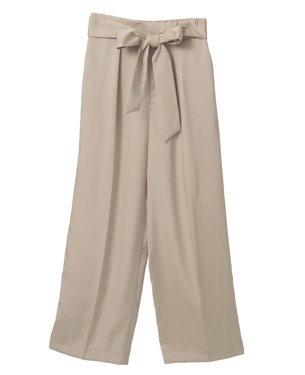 リボンベルトタックストレートワイドパンツ