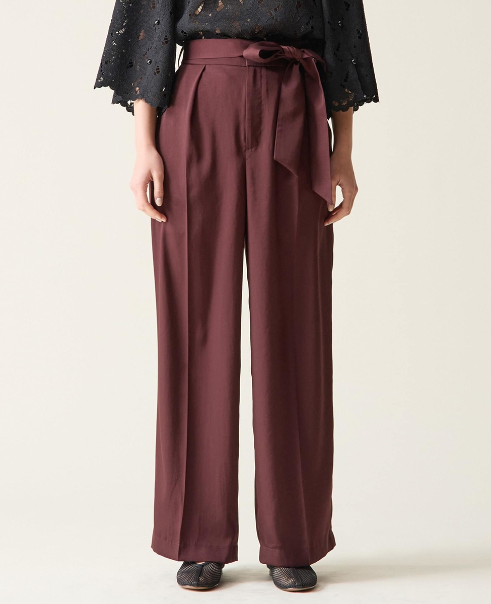 リボンベルトタックストレートワイドパンツ