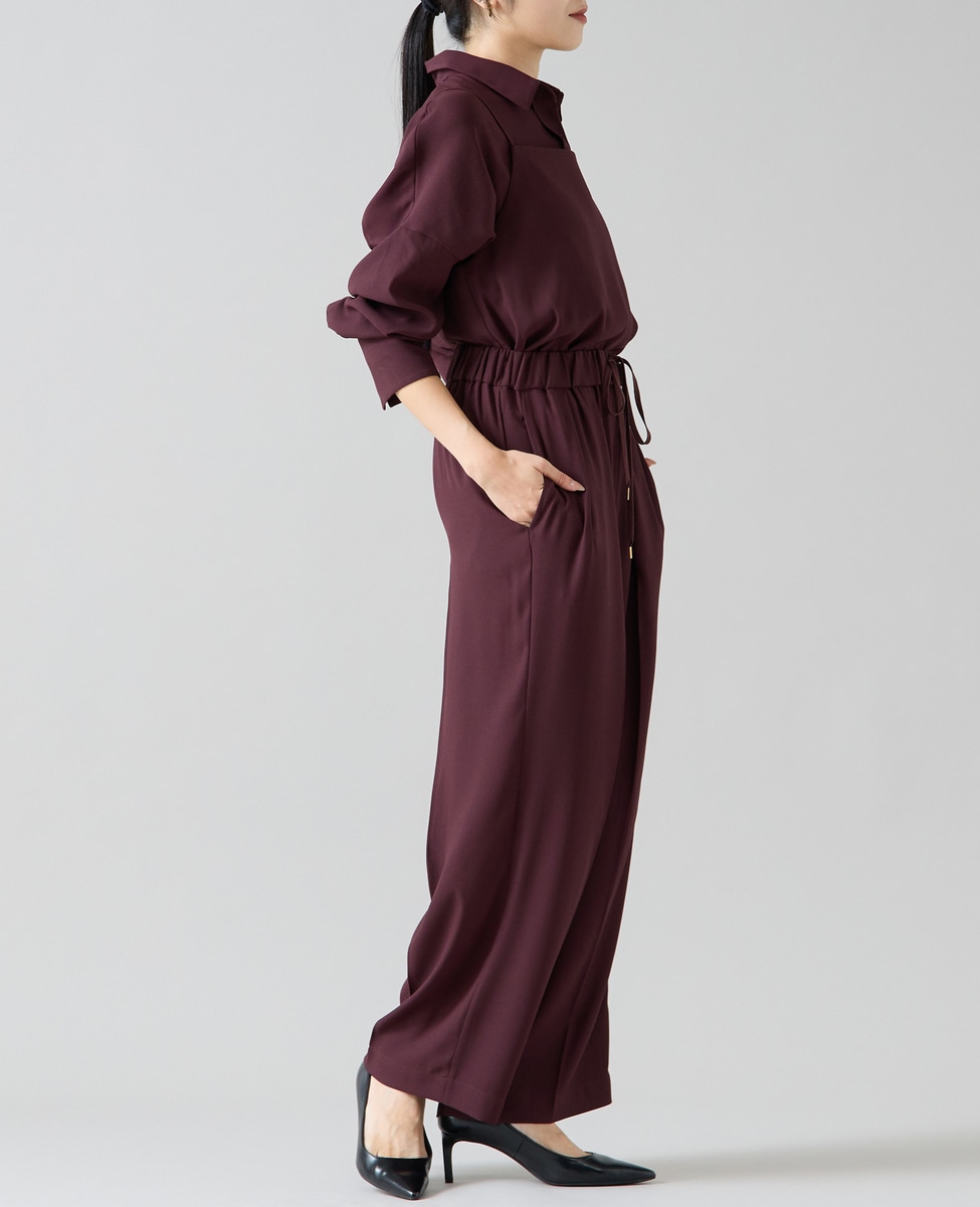 ウエストぐるりゴム、紐がついているのでストレスフリーで着用可能です。
