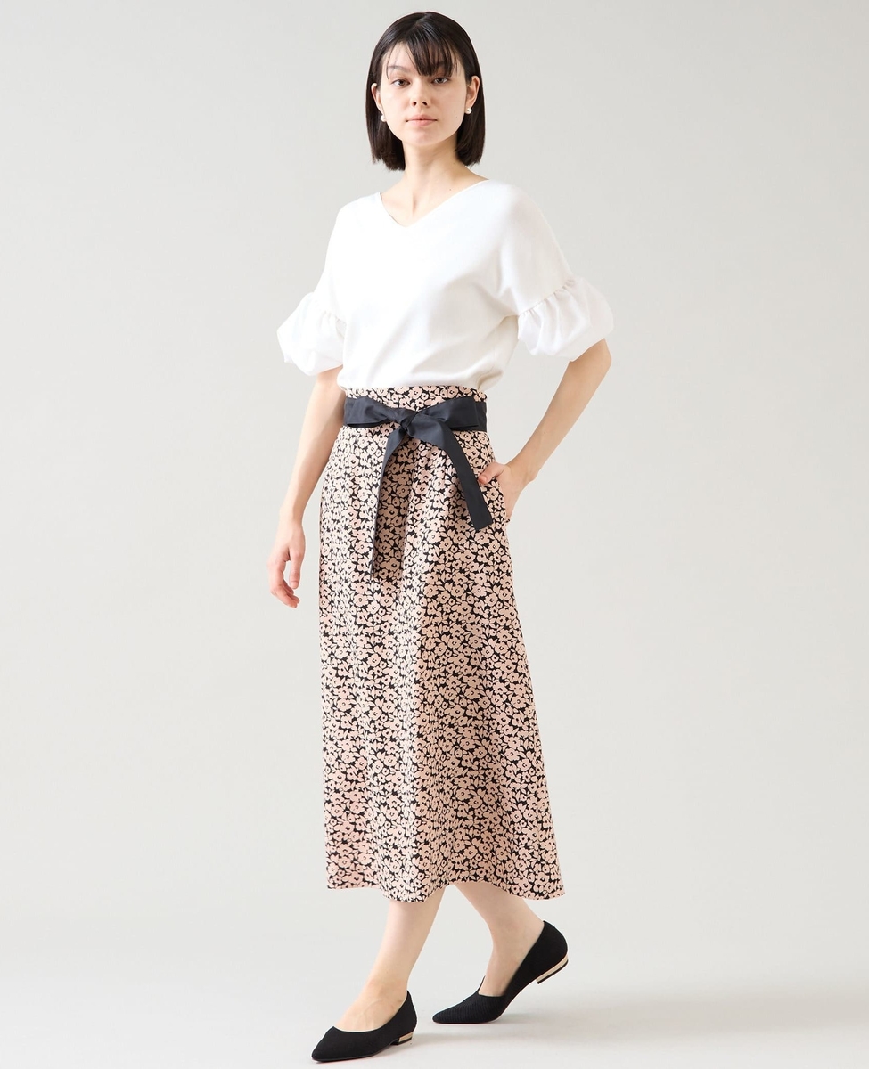 Pansyプリントリボンベルトスカート(セットアップ可)