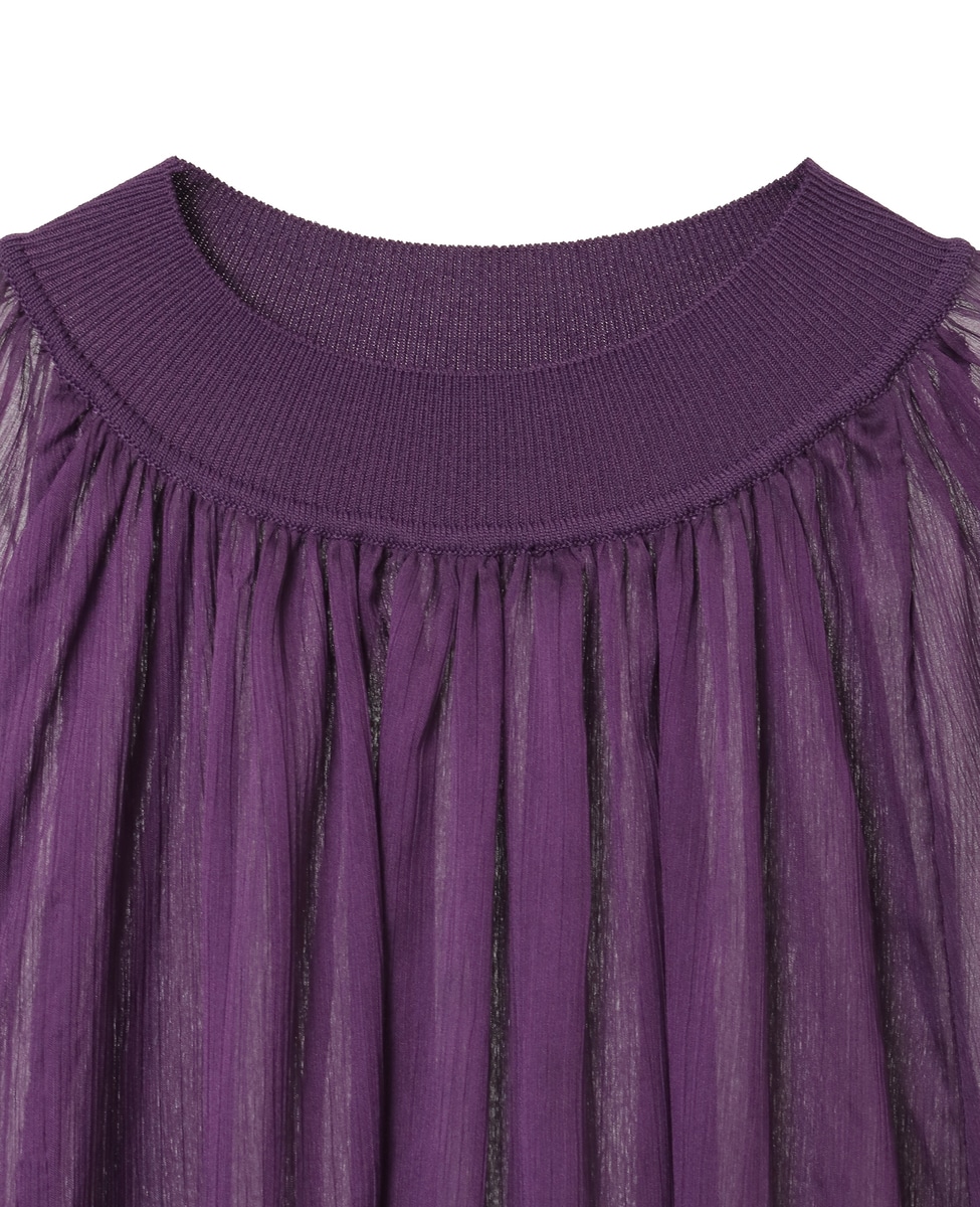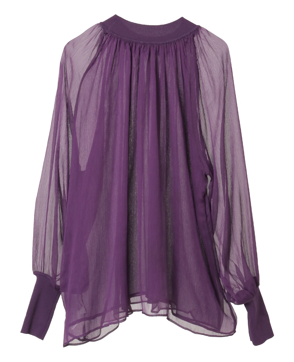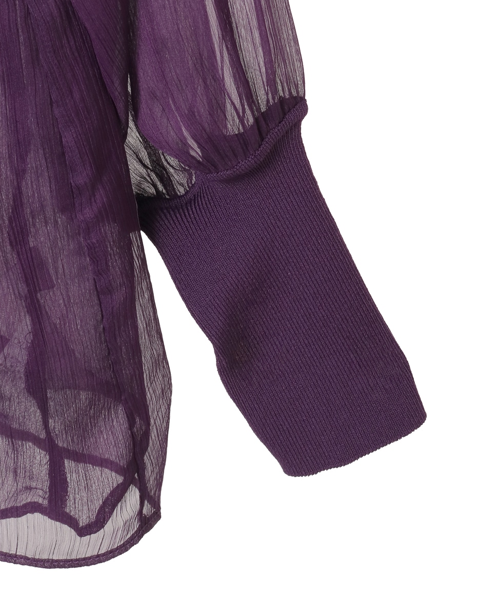 ニットリブトリミングシアーブラウス
