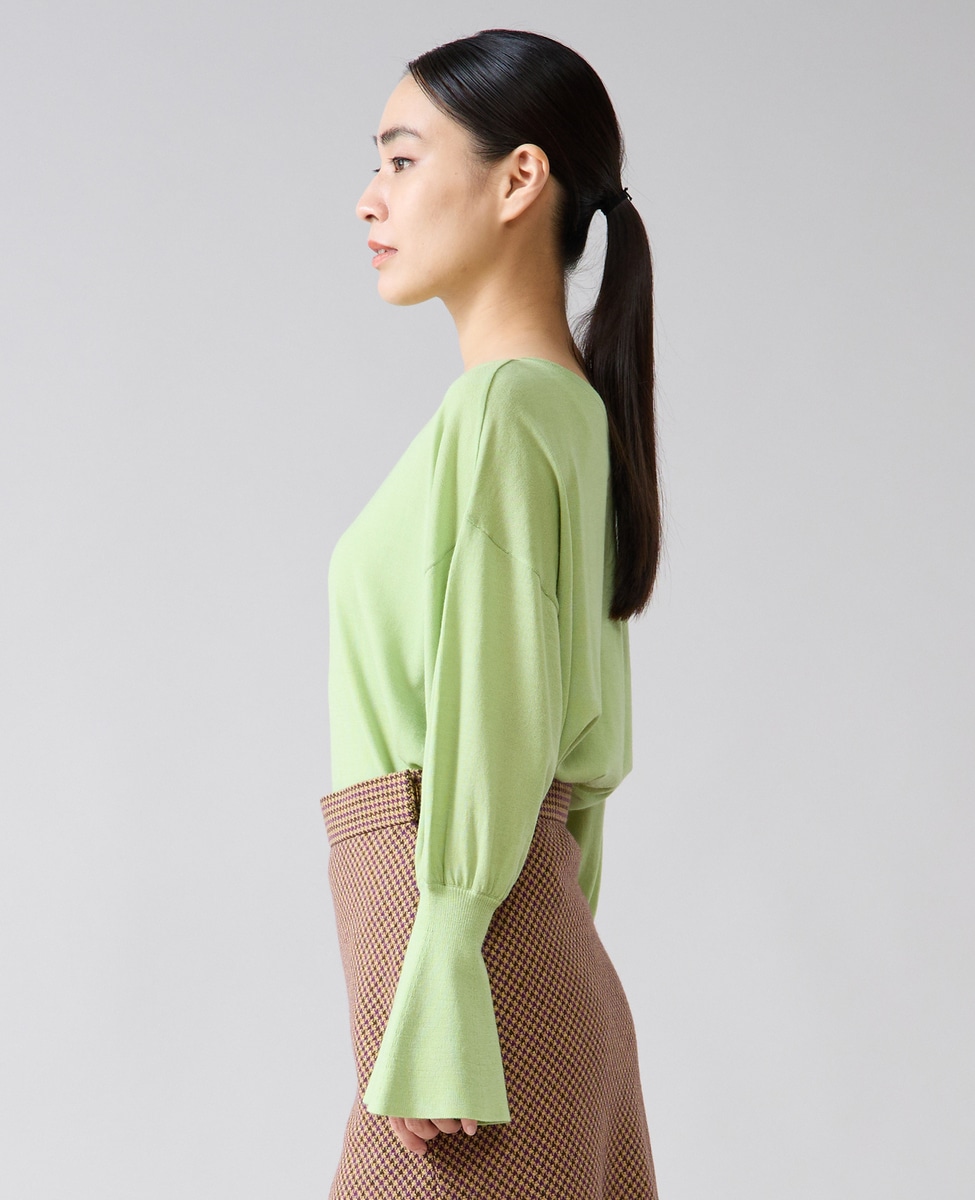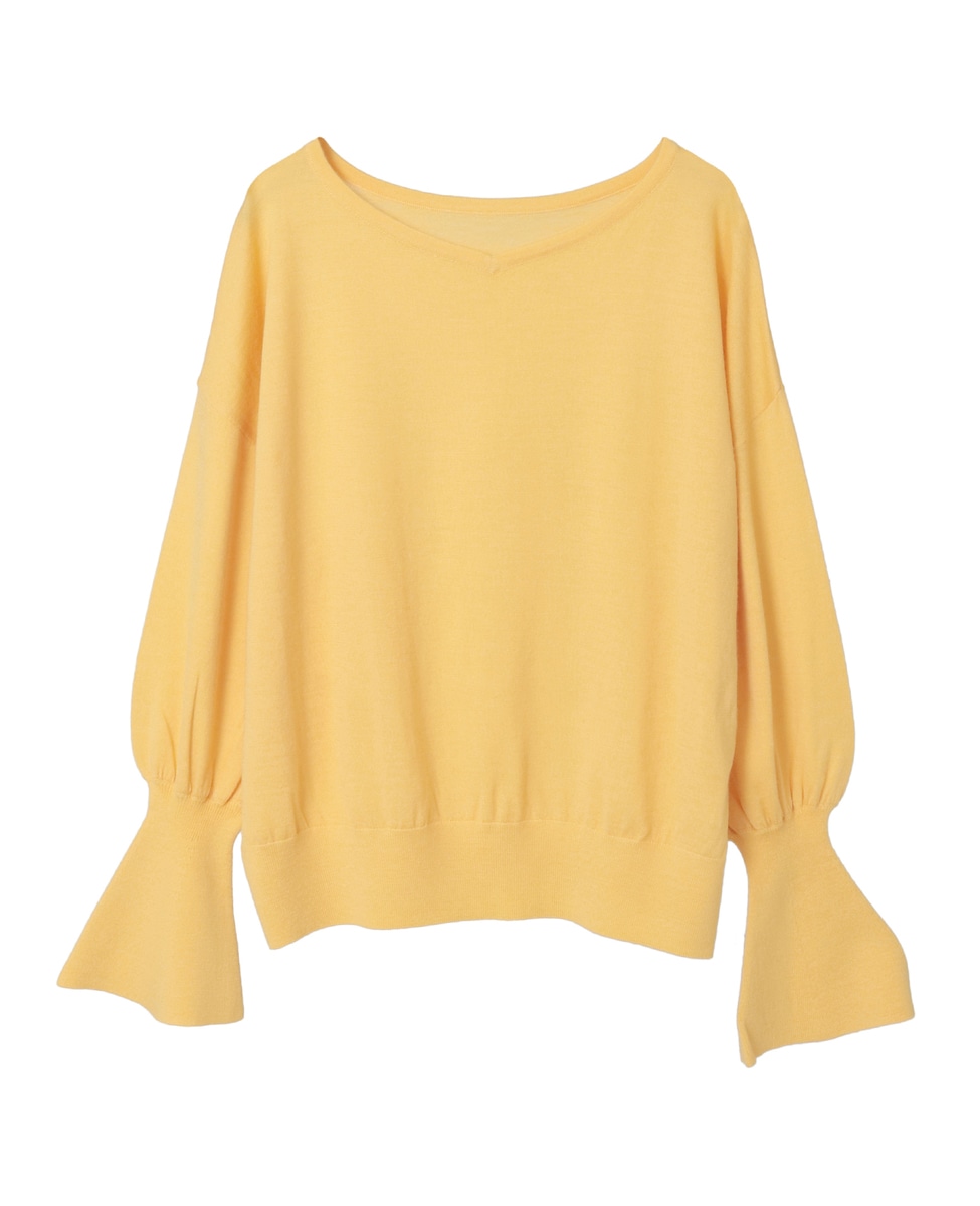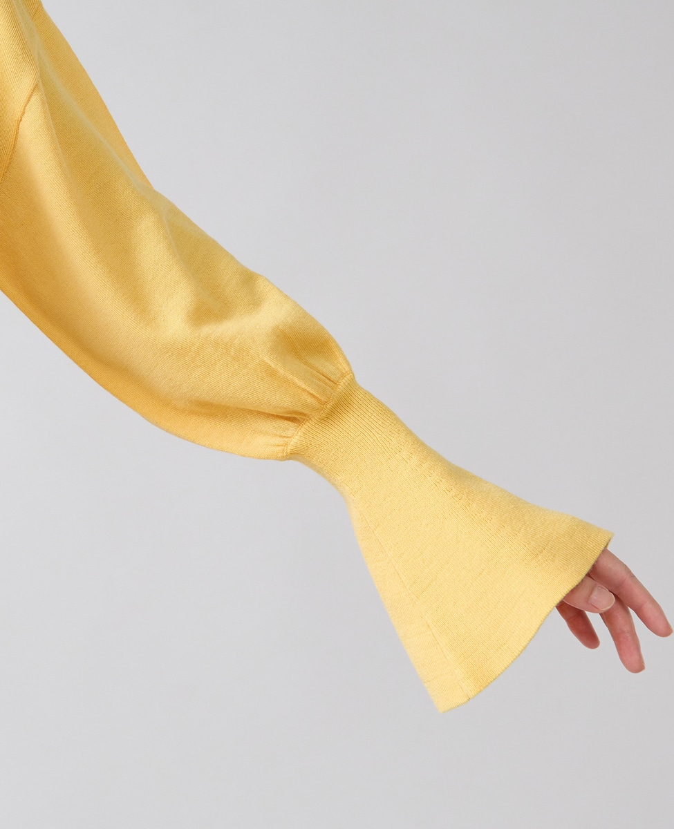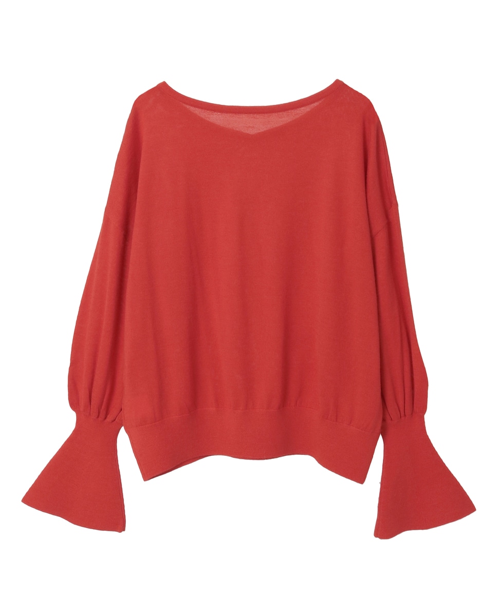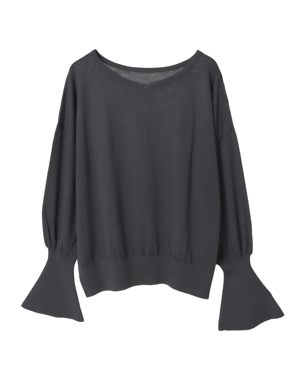 フレアの袖口が特徴的なハイゲージのニット。
