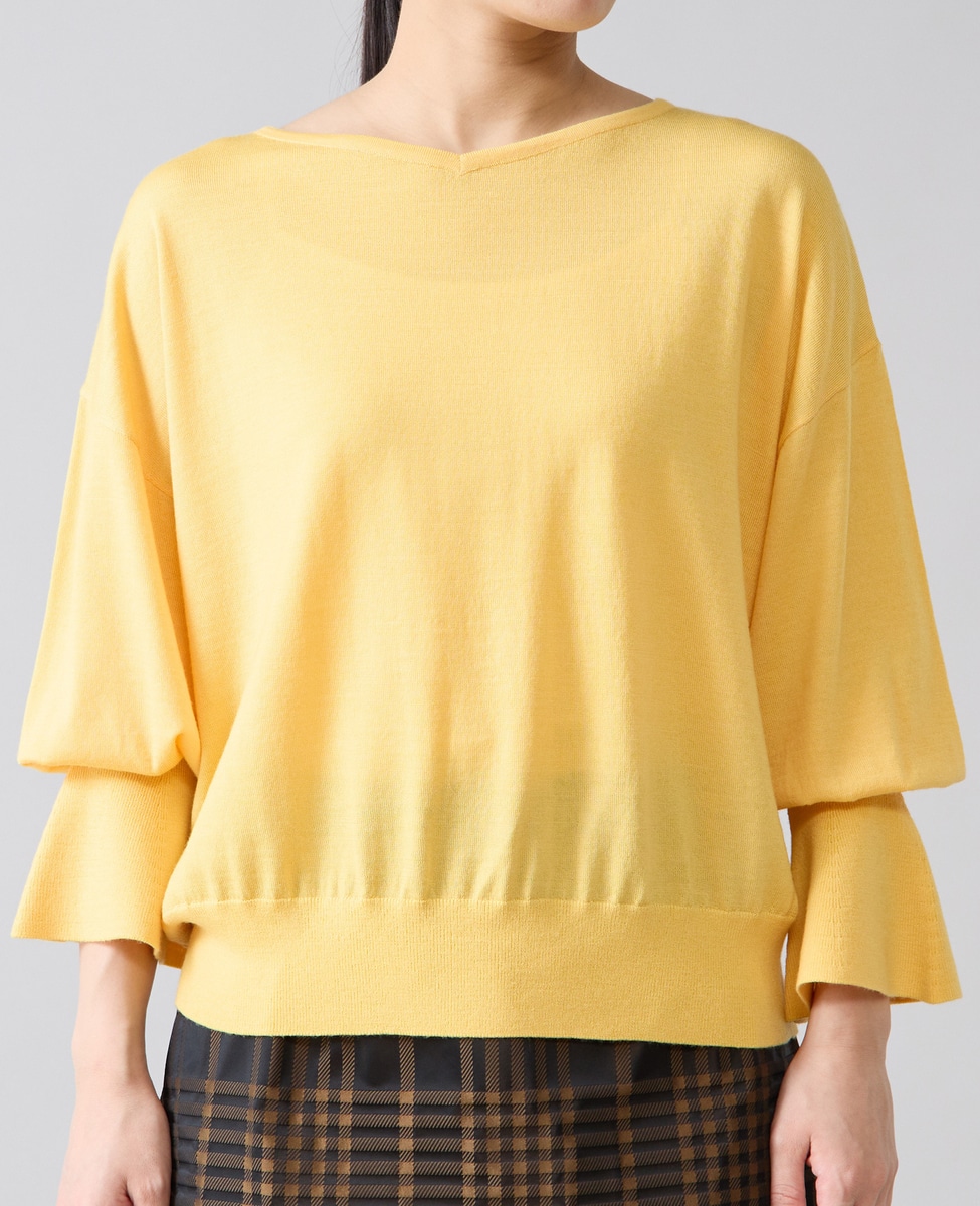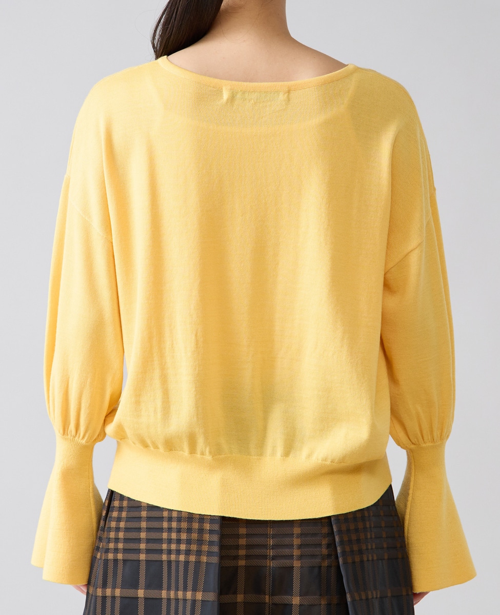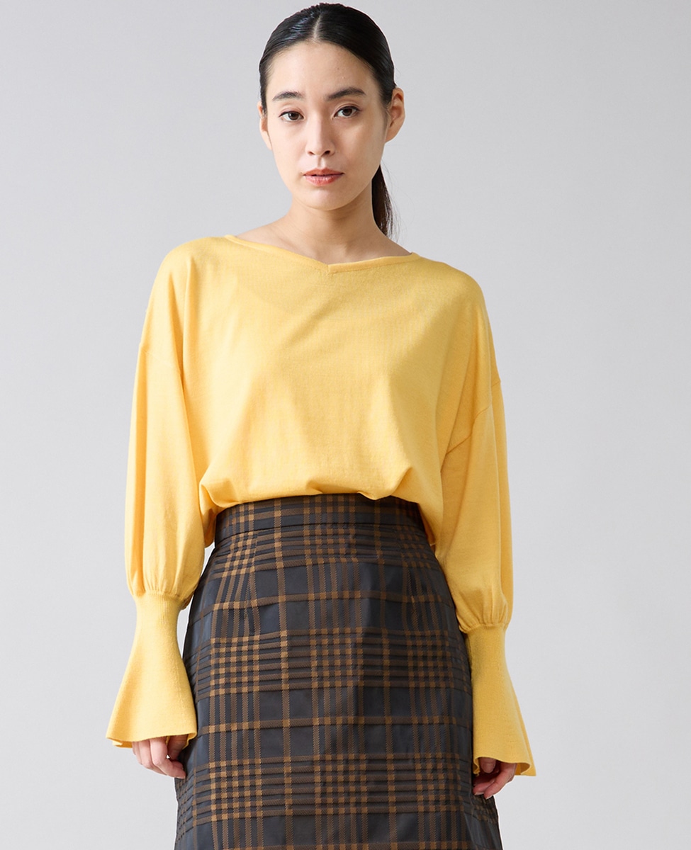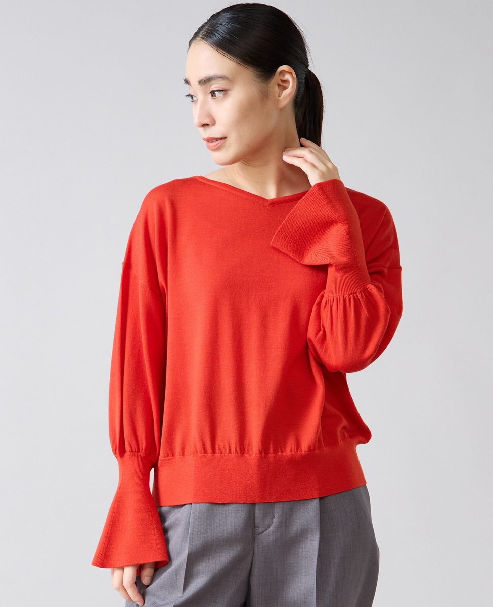 フレアの袖口が特徴的なハイゲージのニット。