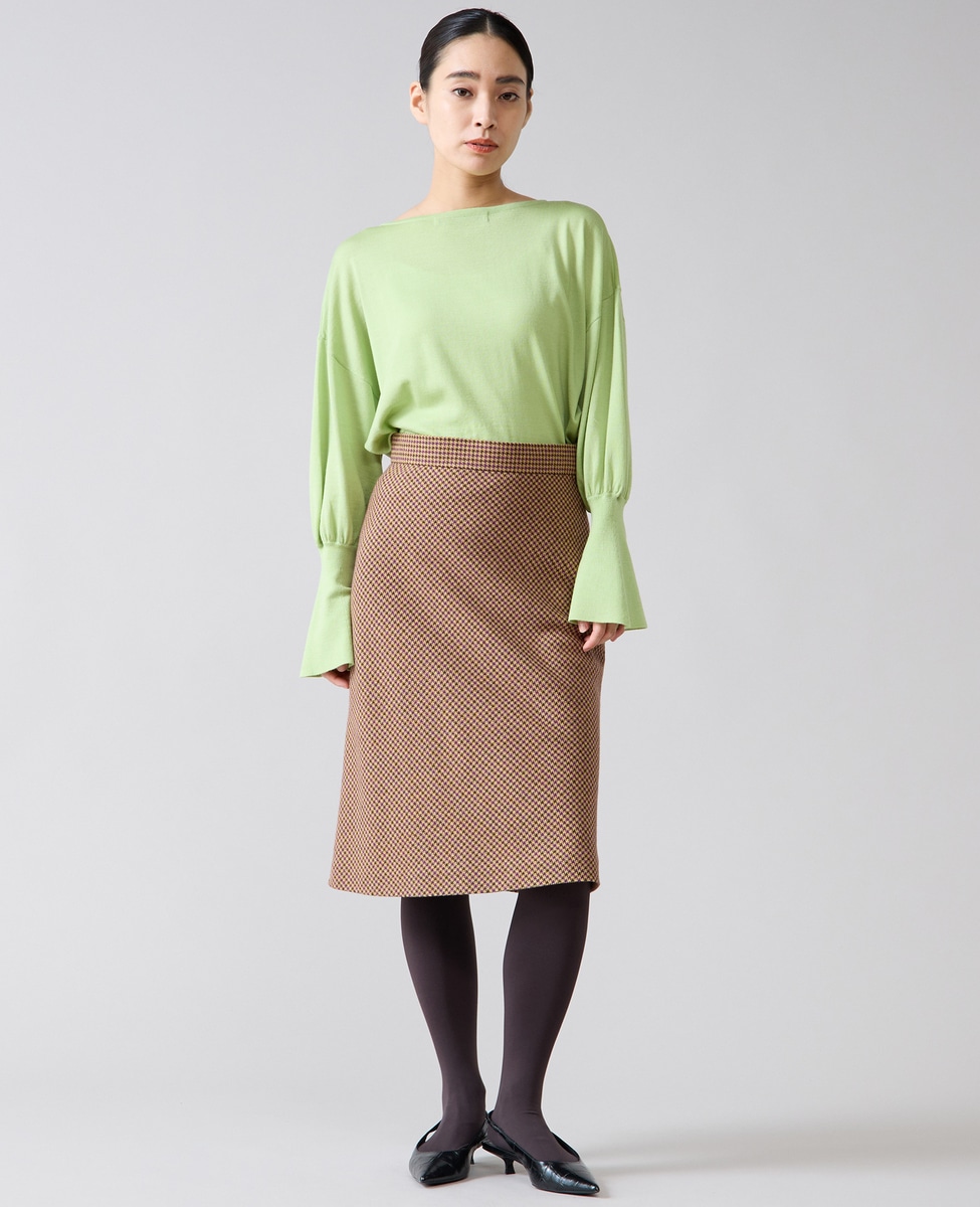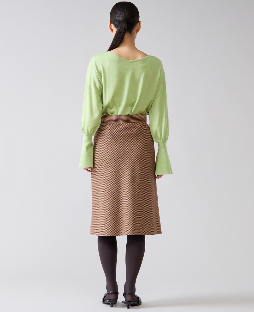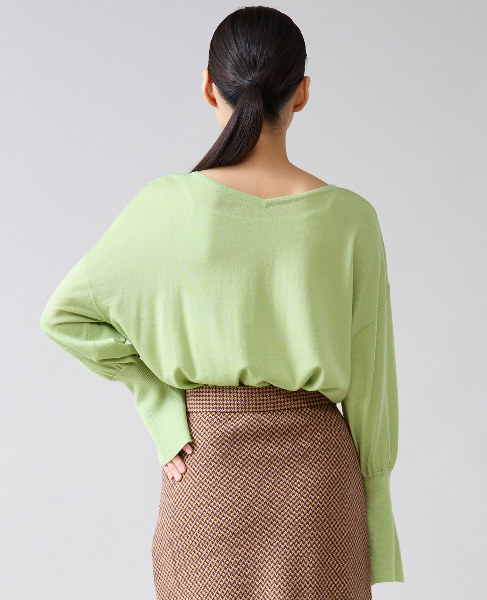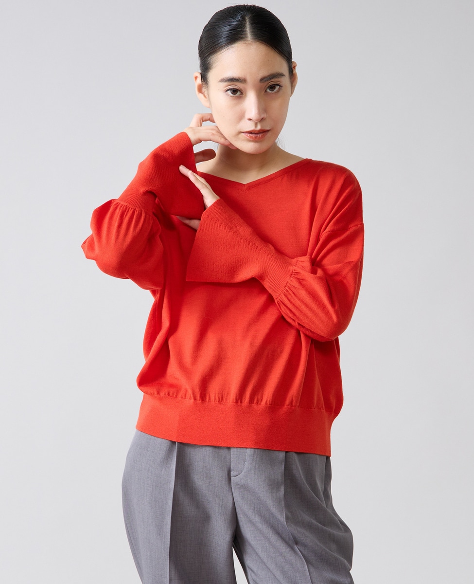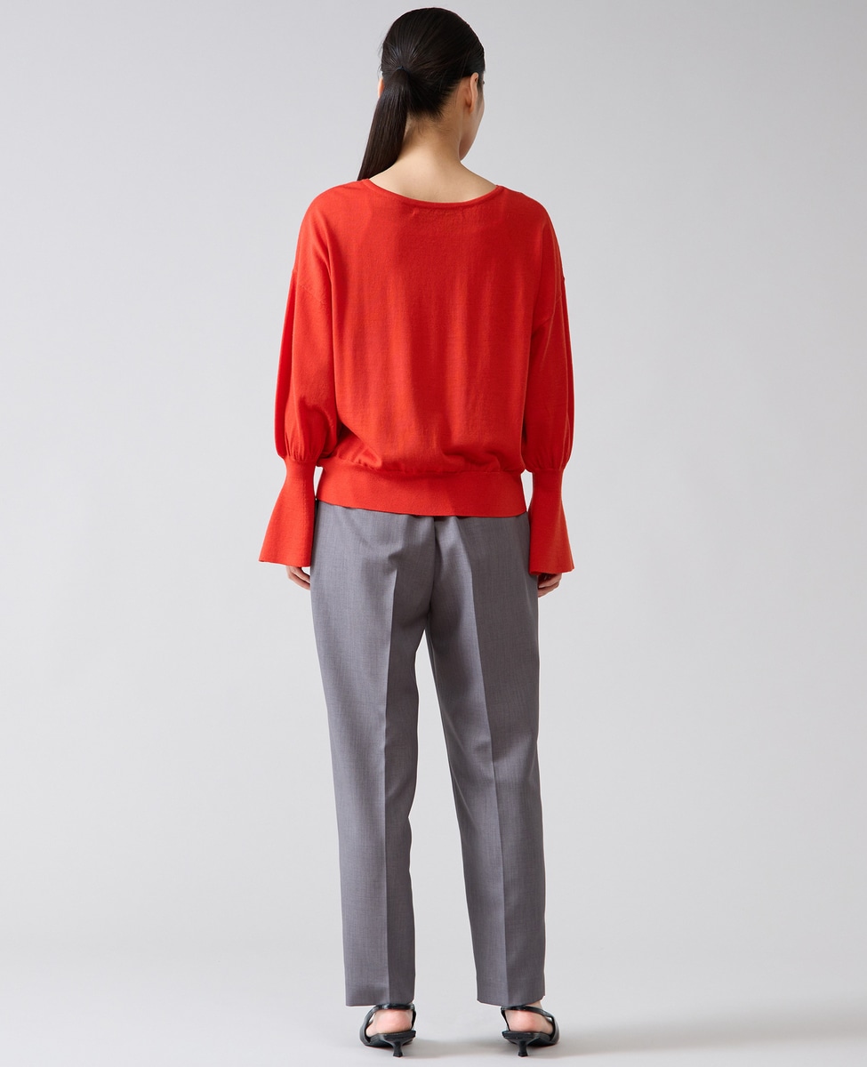フレアの袖口が特徴的なハイゲージのニット。