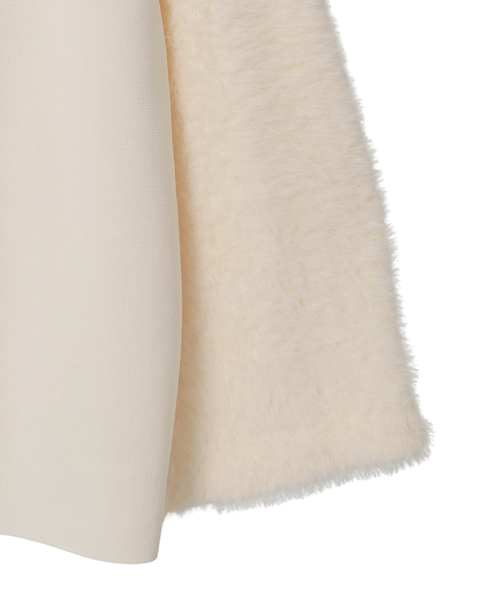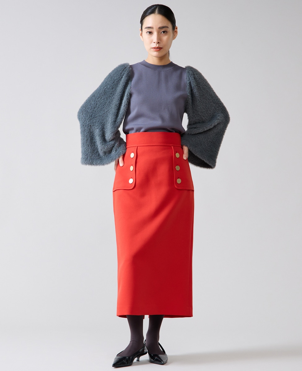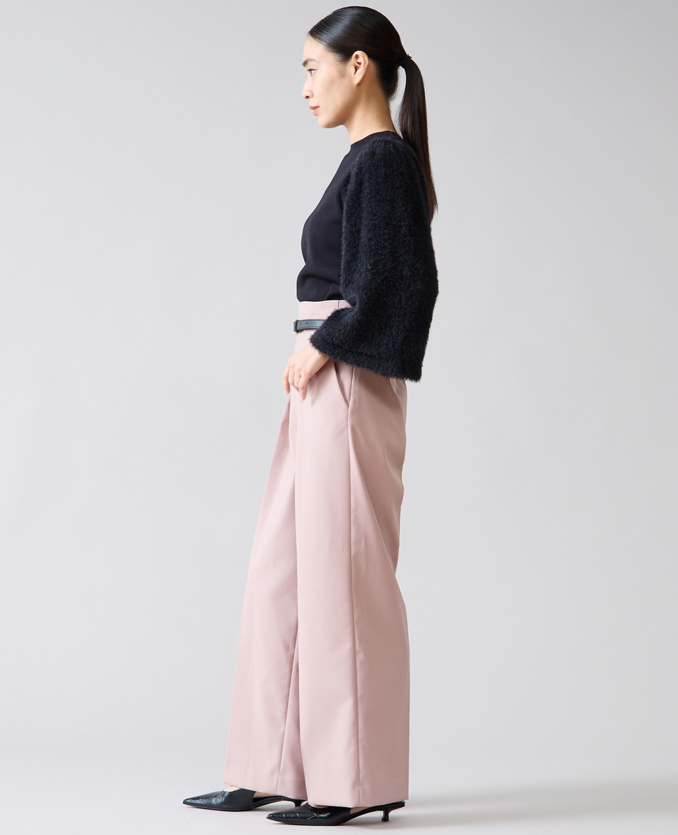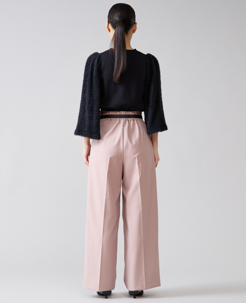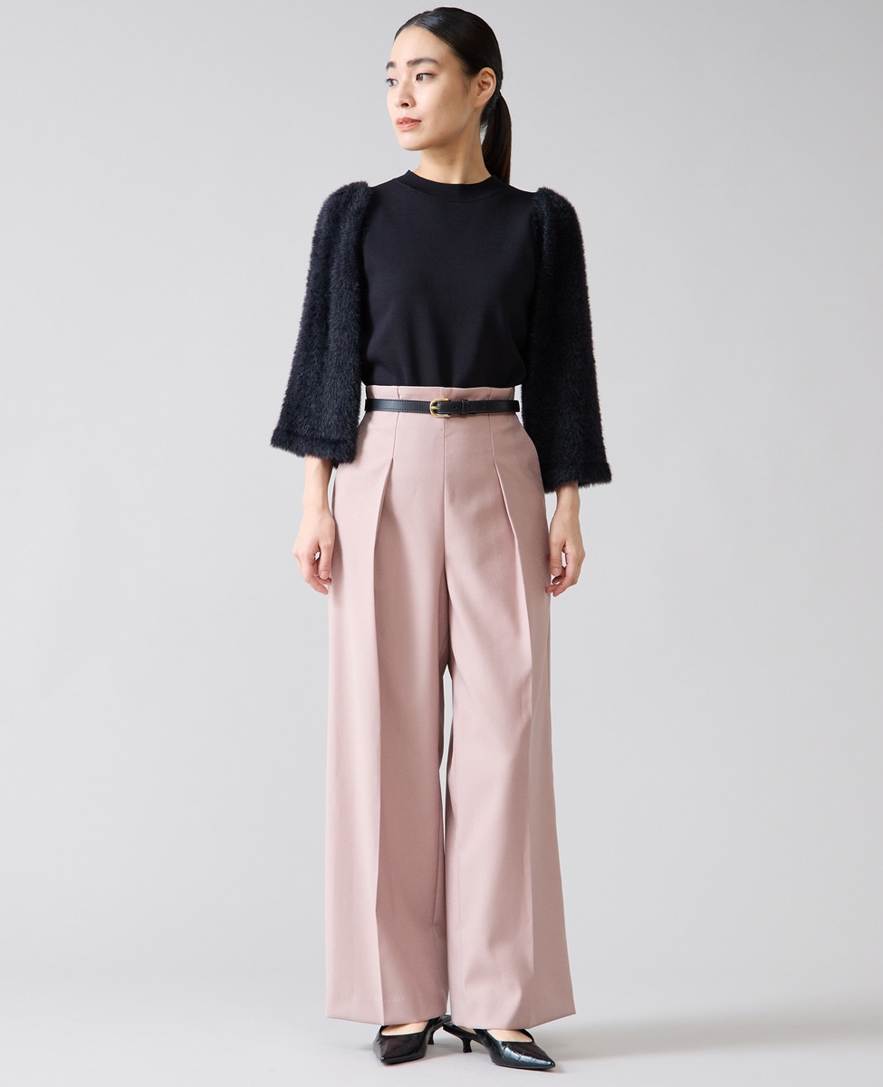袖に毛足の長いフェザーを施したスリーブコンシャストップス。