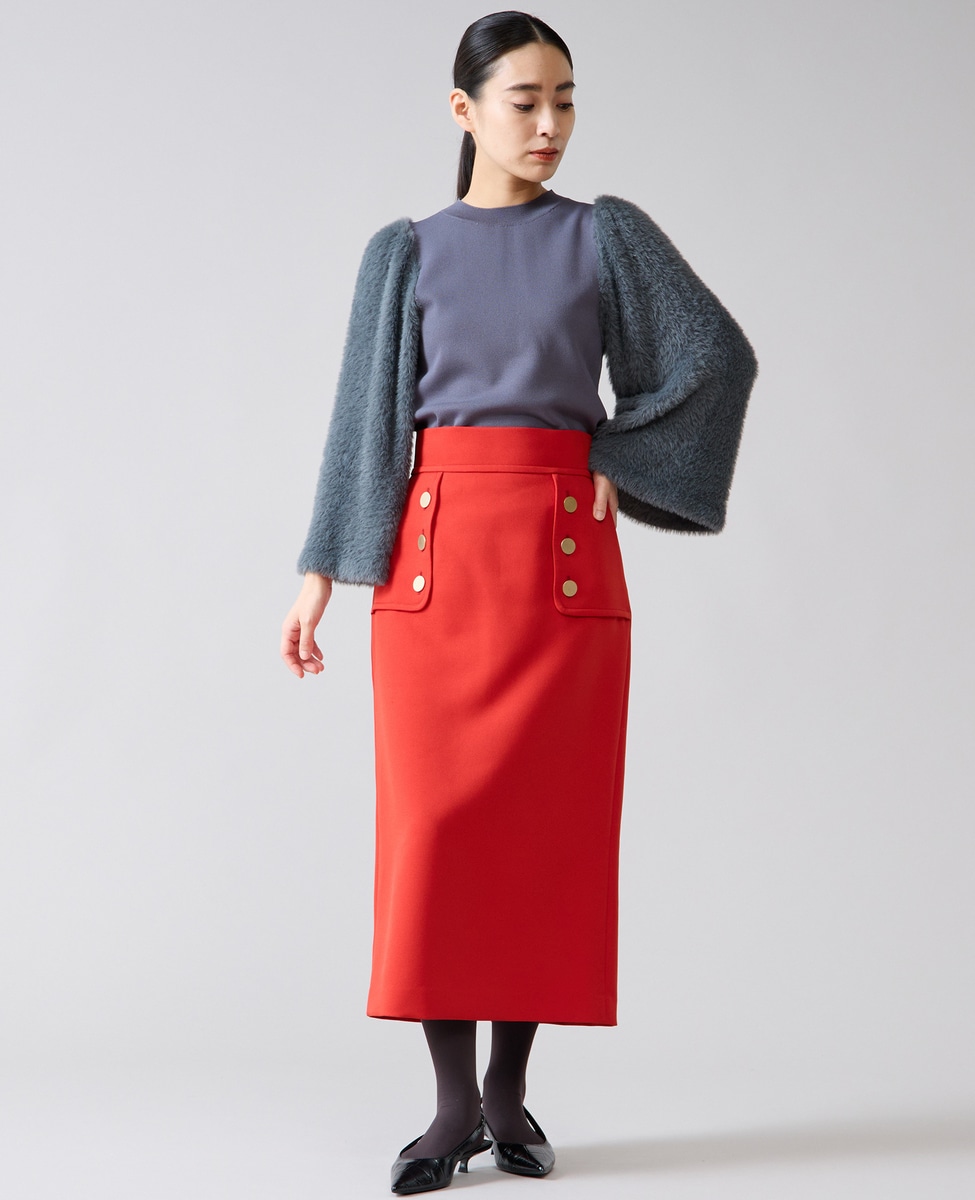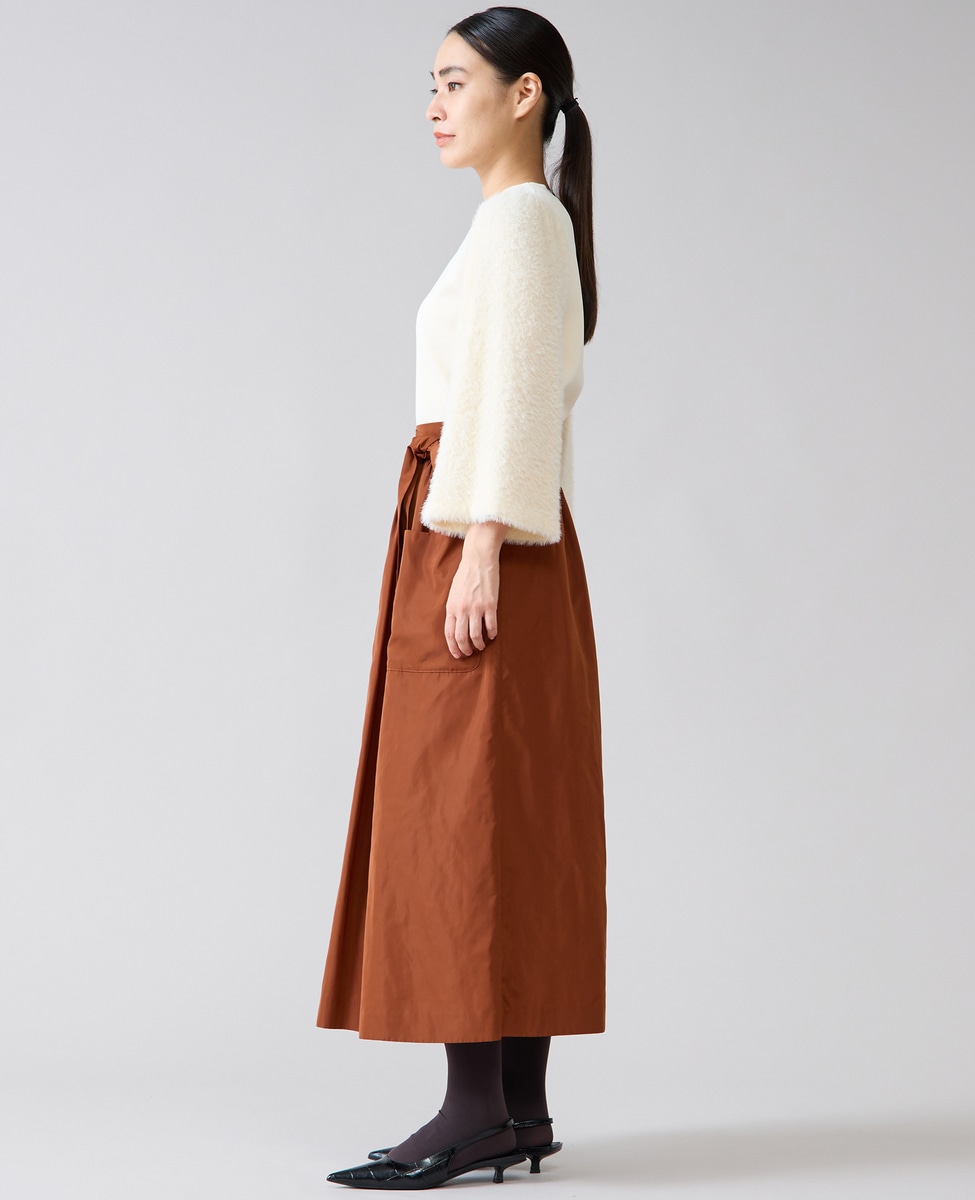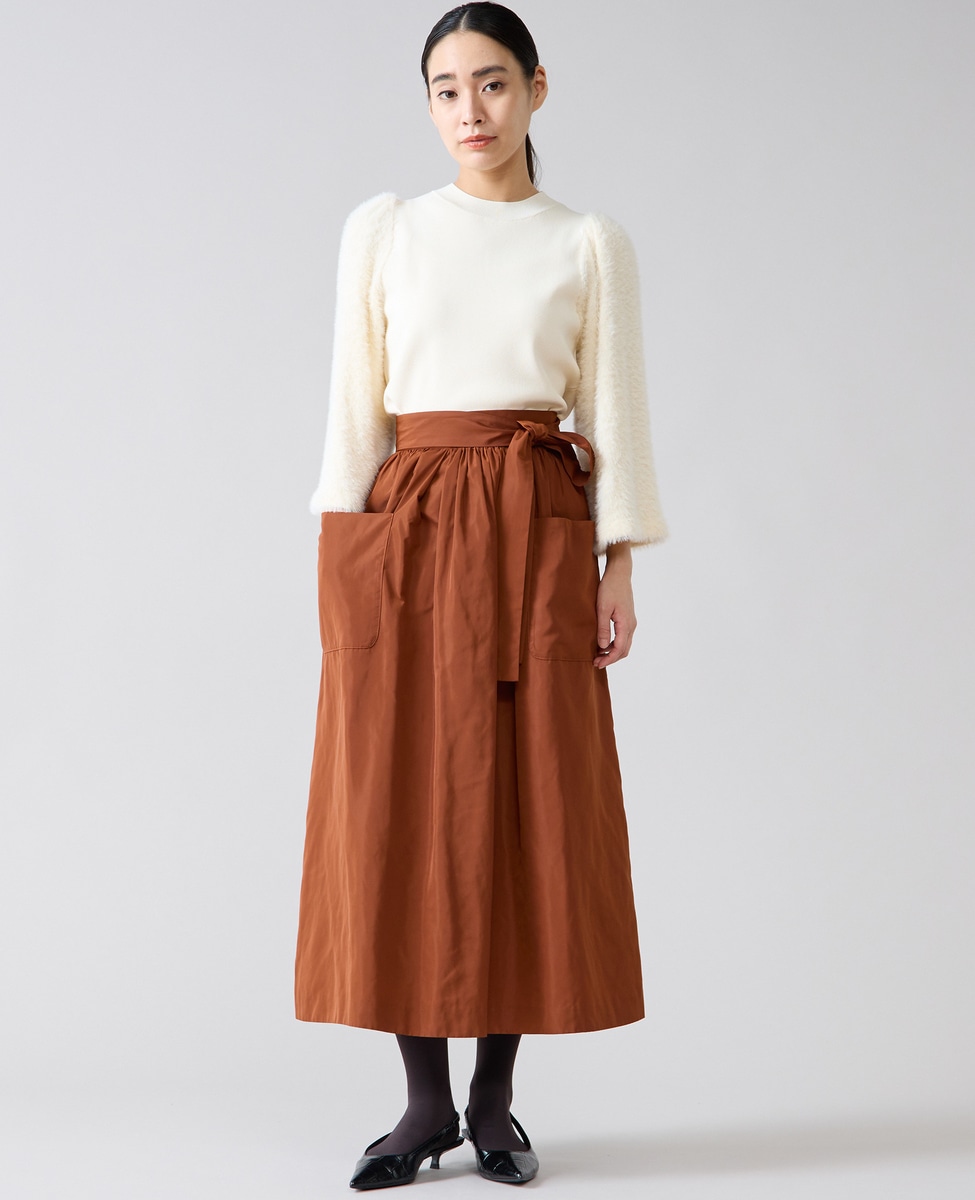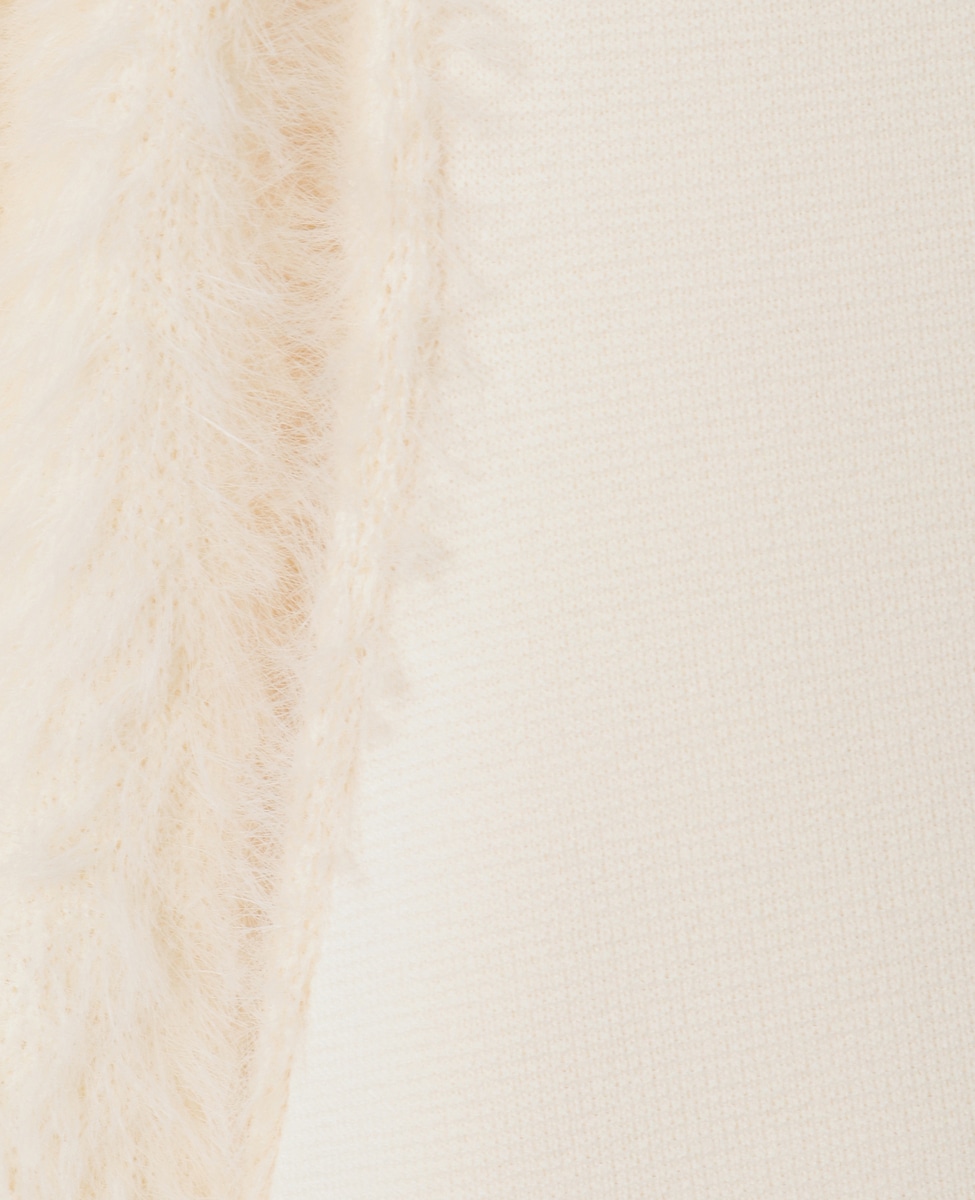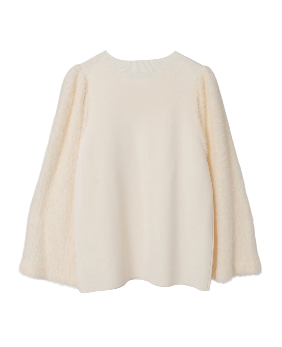 袖はふわふわとした毛足の長いフェザーヤーンを使用。