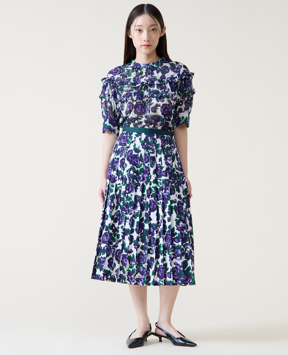 オールドローズプリントプリーツスカート