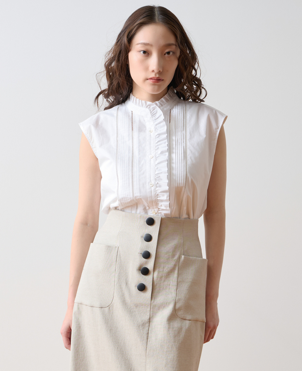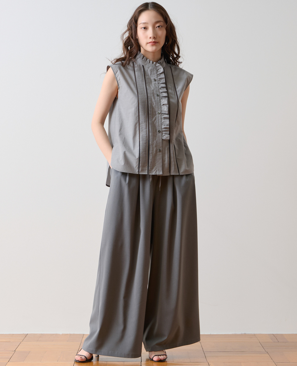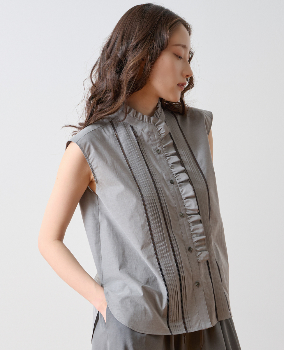 ピンタックレースフリルブラウス