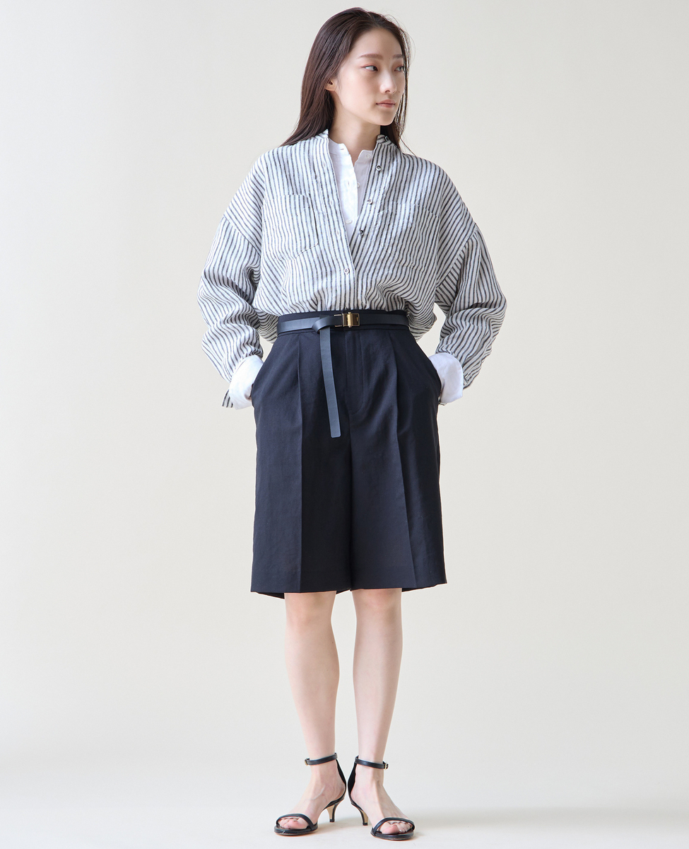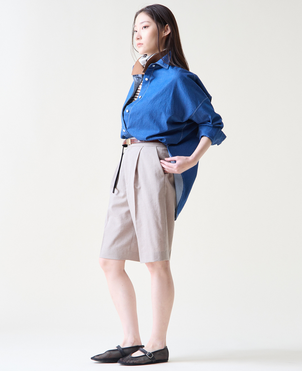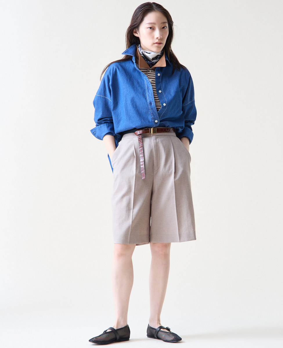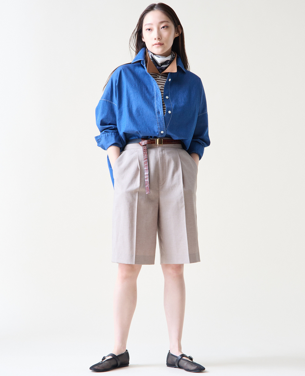 麻混のバミューダパンツ。