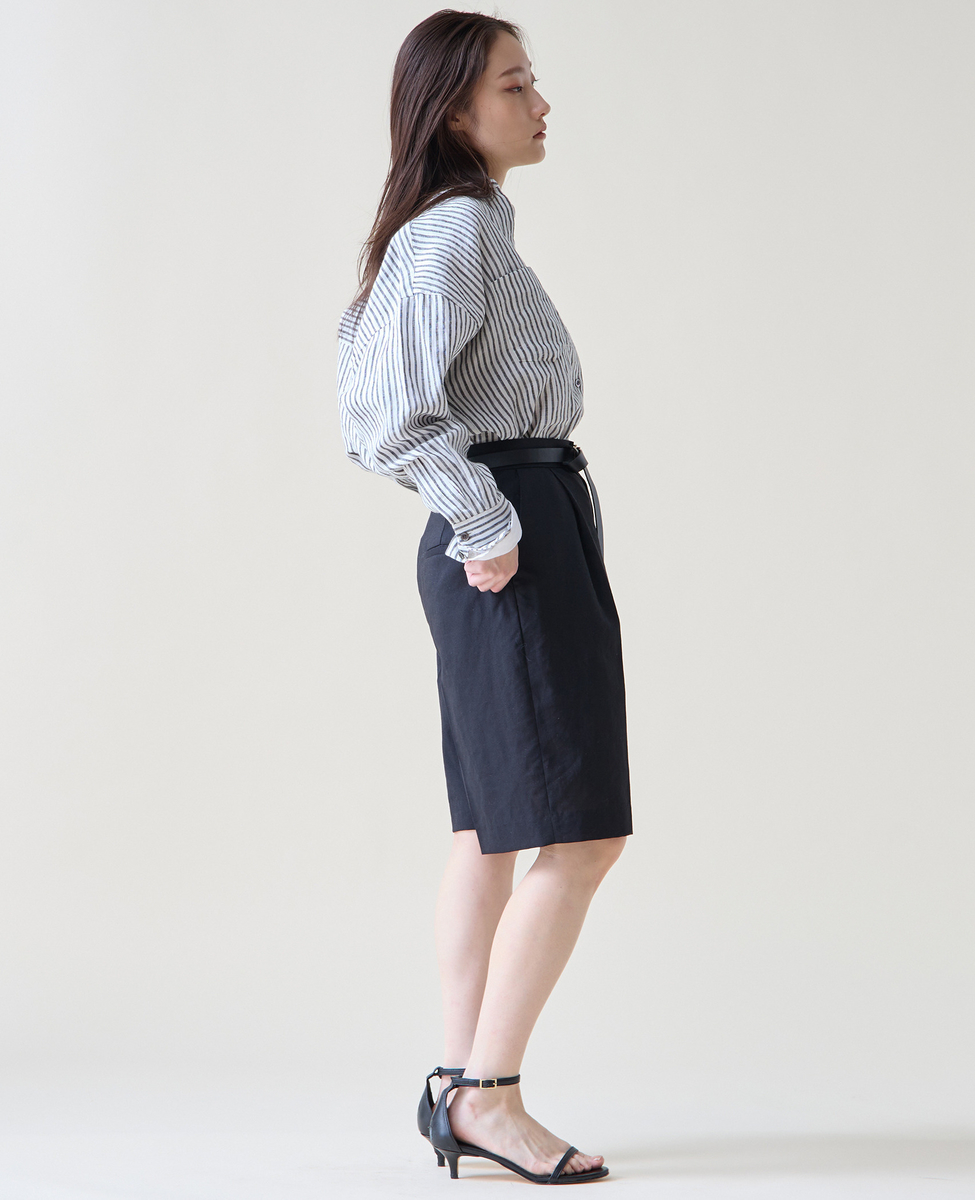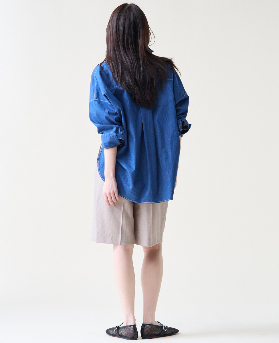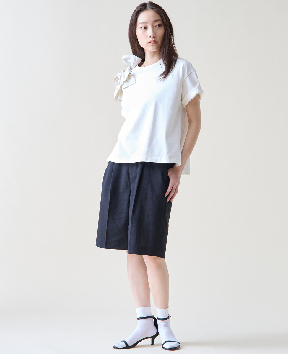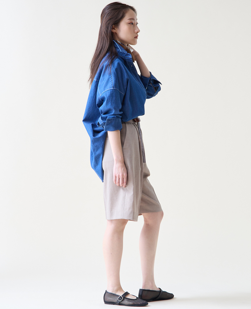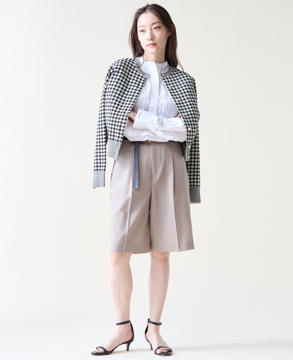 麻混のバミューダパンツ。