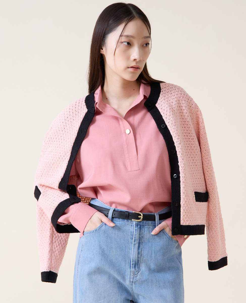 • ジオモチーフニットジャケット 詳細画像 ピンク 1