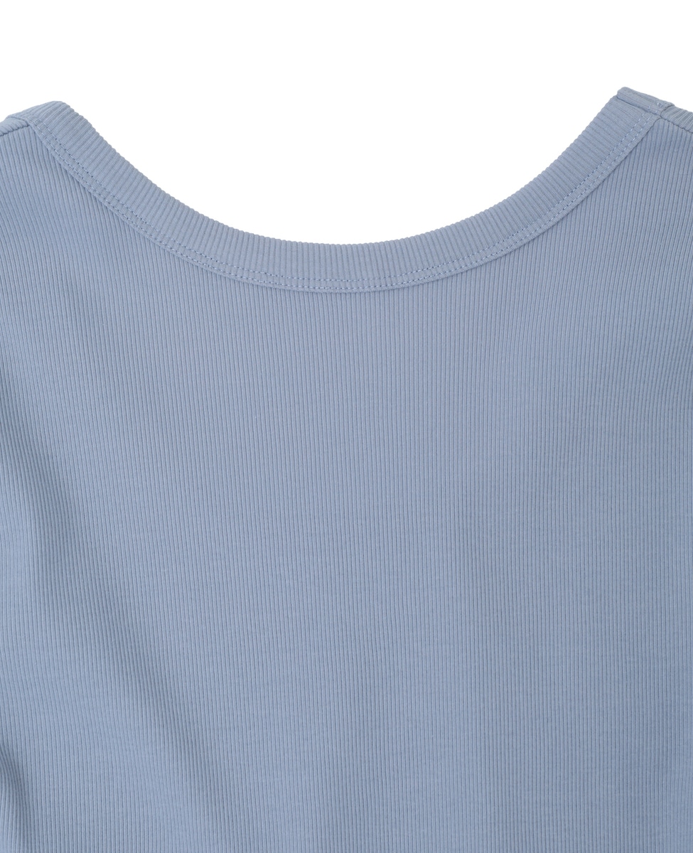 バックオープンリブTシャツ