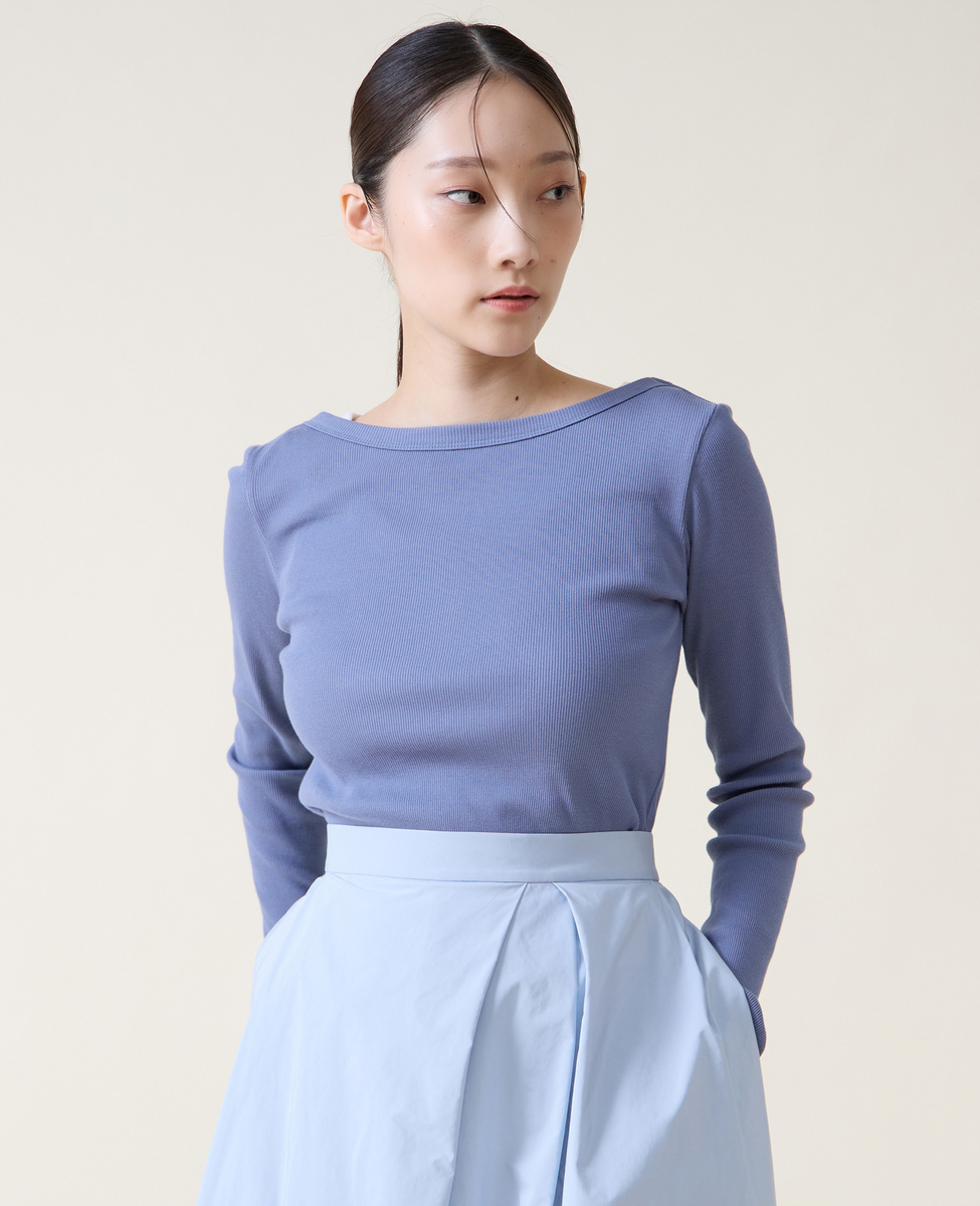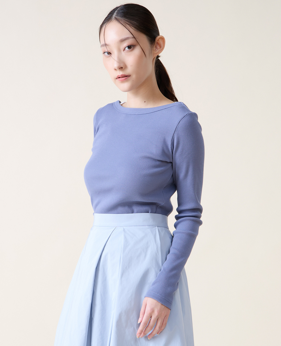 バックオープンリブTシャツ