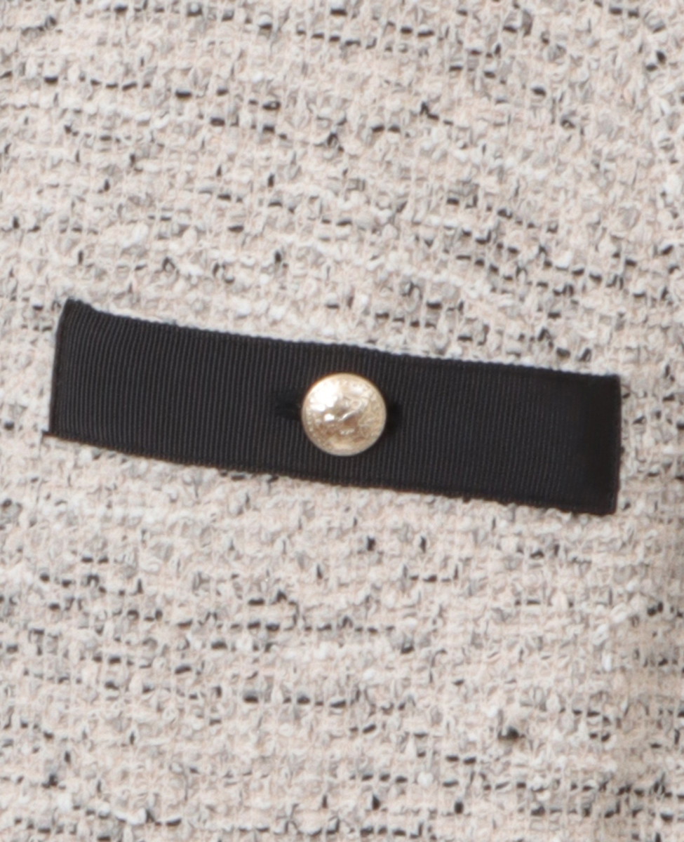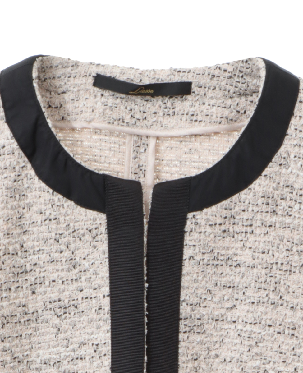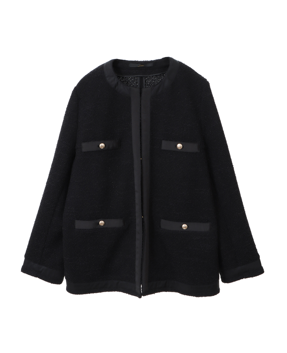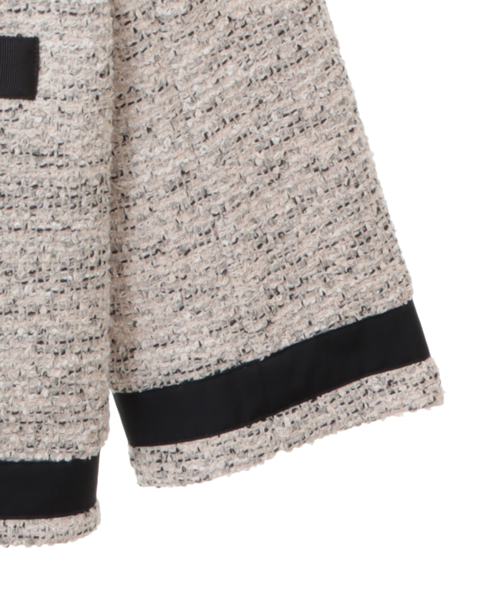 リングヤーンをふんだんに使用したニットツィード。ミックス感と表面感が合わさった新しいツィードでニットの伸縮性もある素材です。いつもと異なるミックスツィードを使うことにより上品感のある、アイテムとなっております。デニムやきれめのボトム合わせがおすすめです。