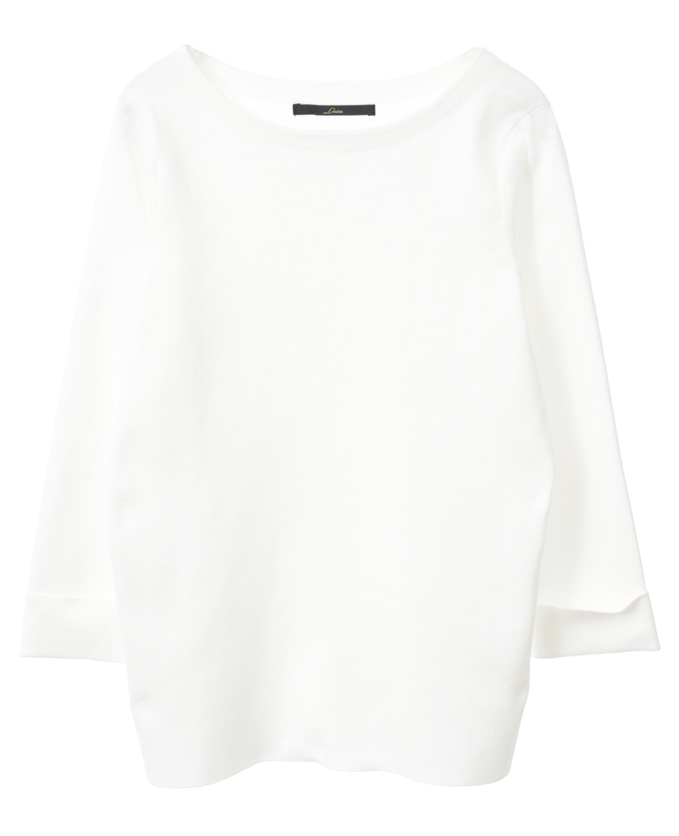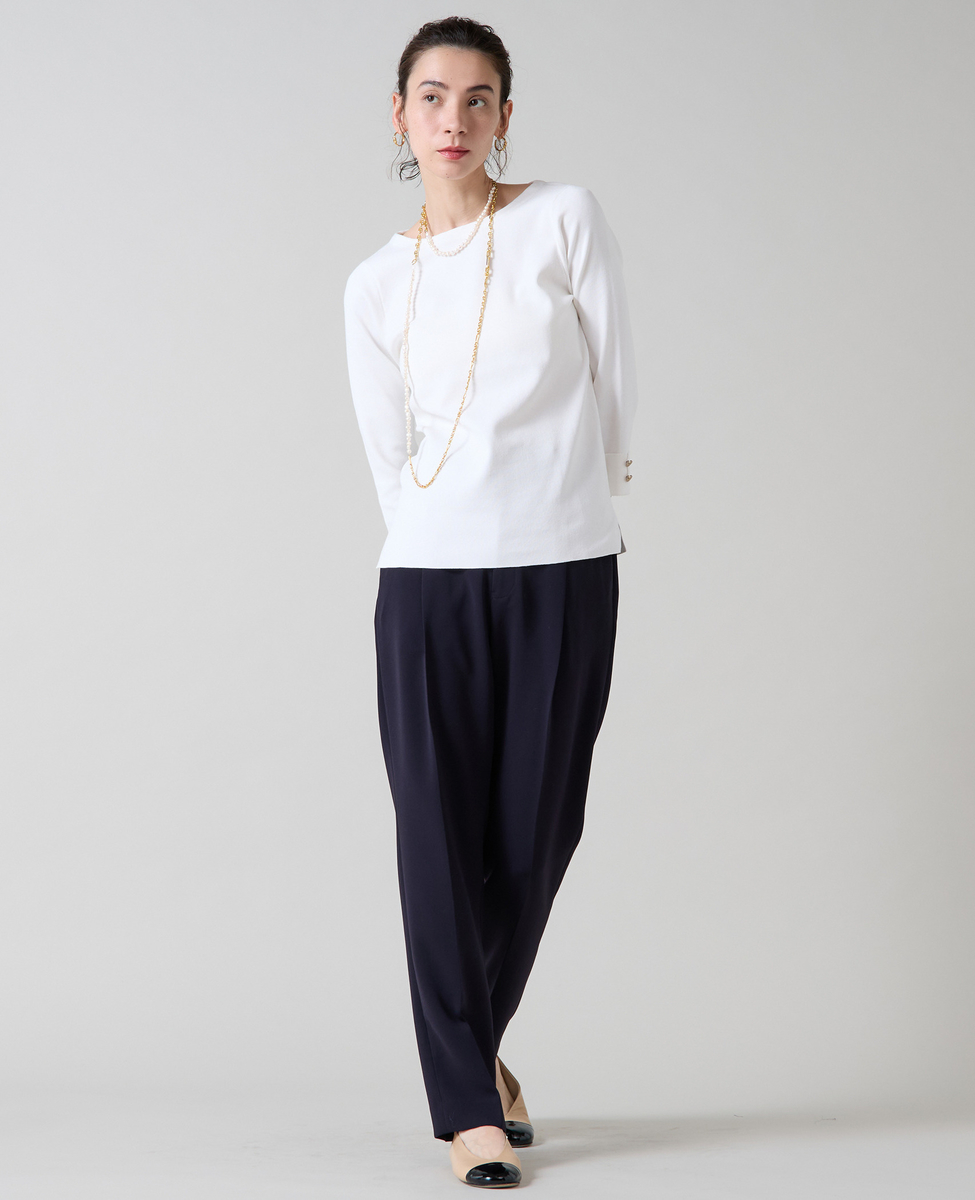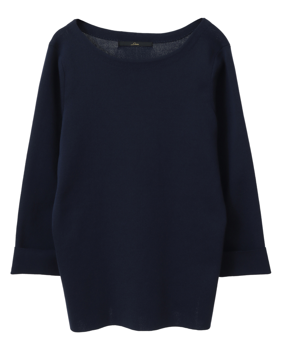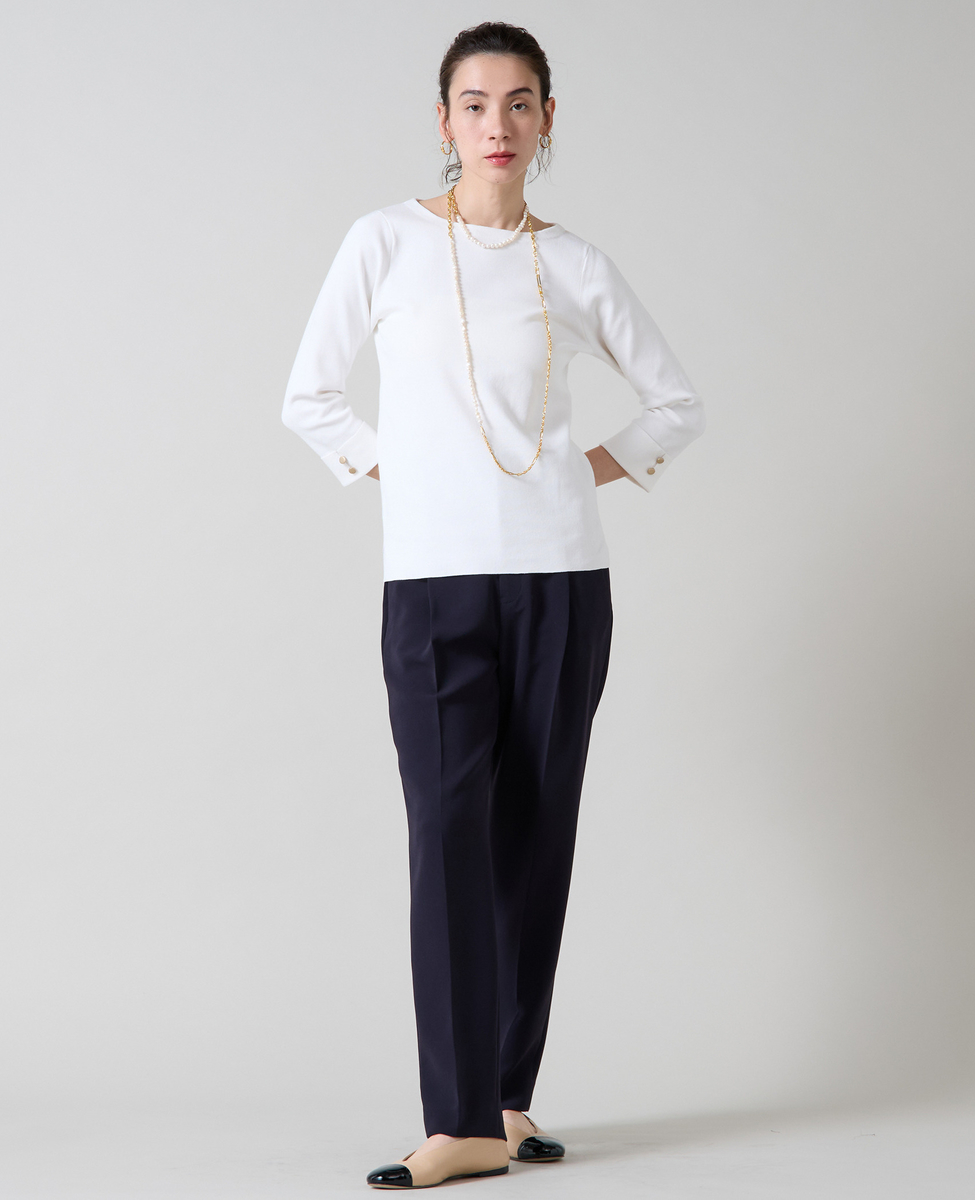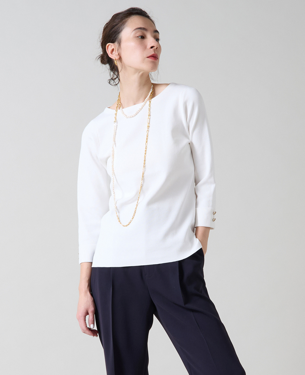 袖釦ボートネックニット