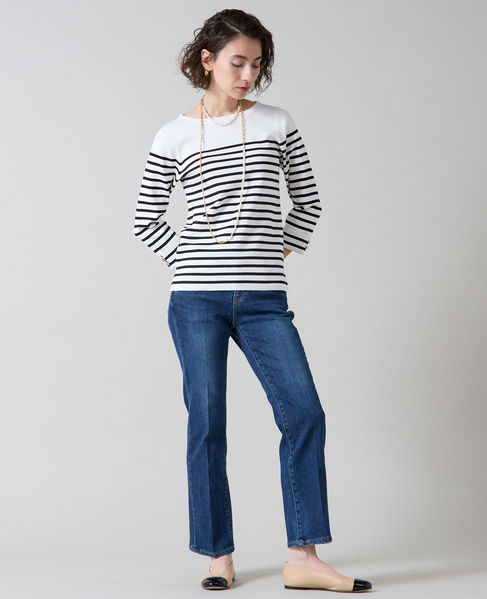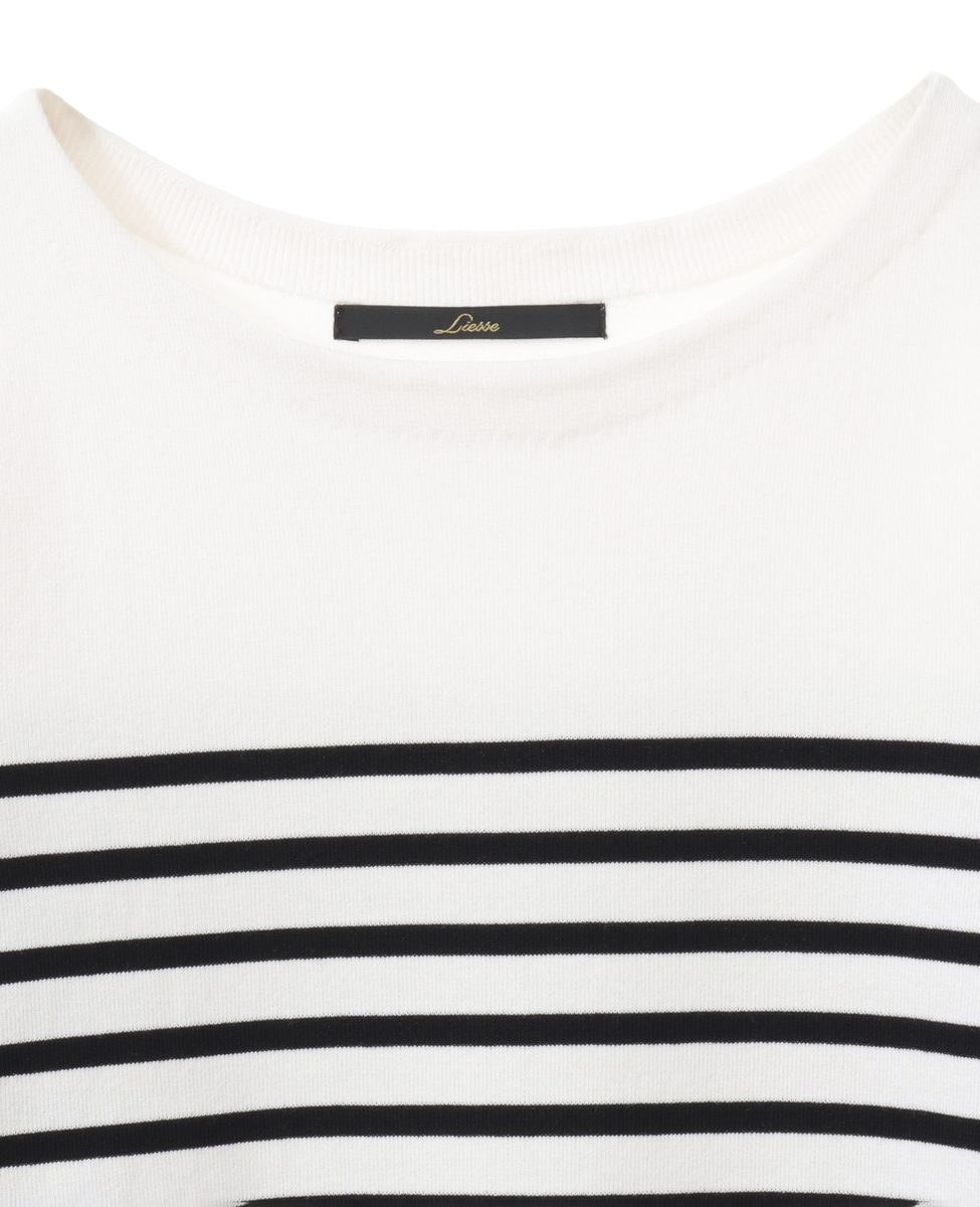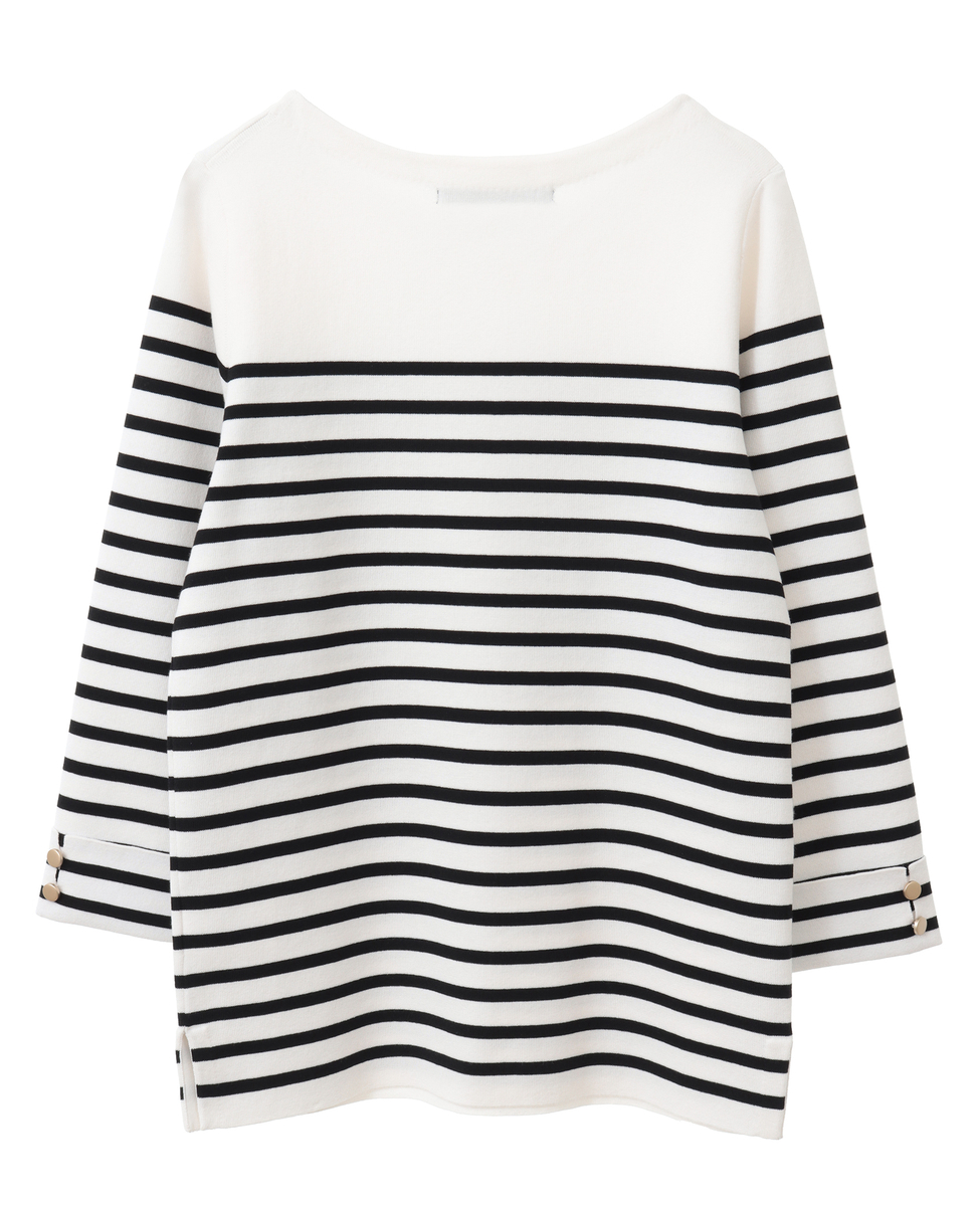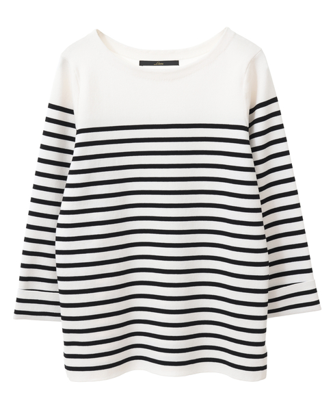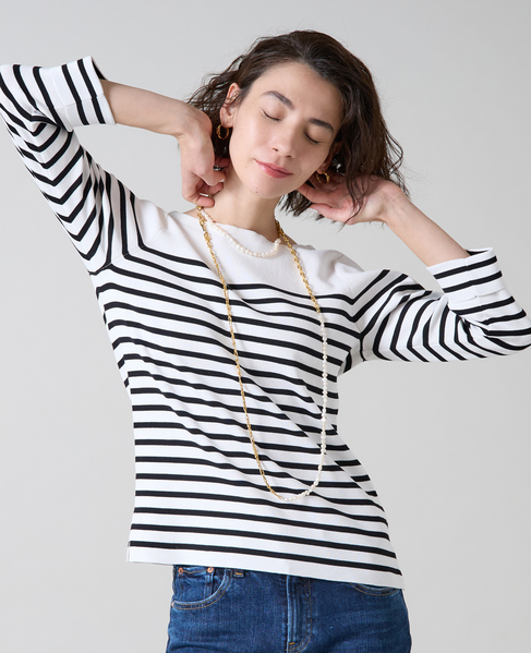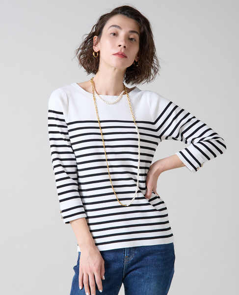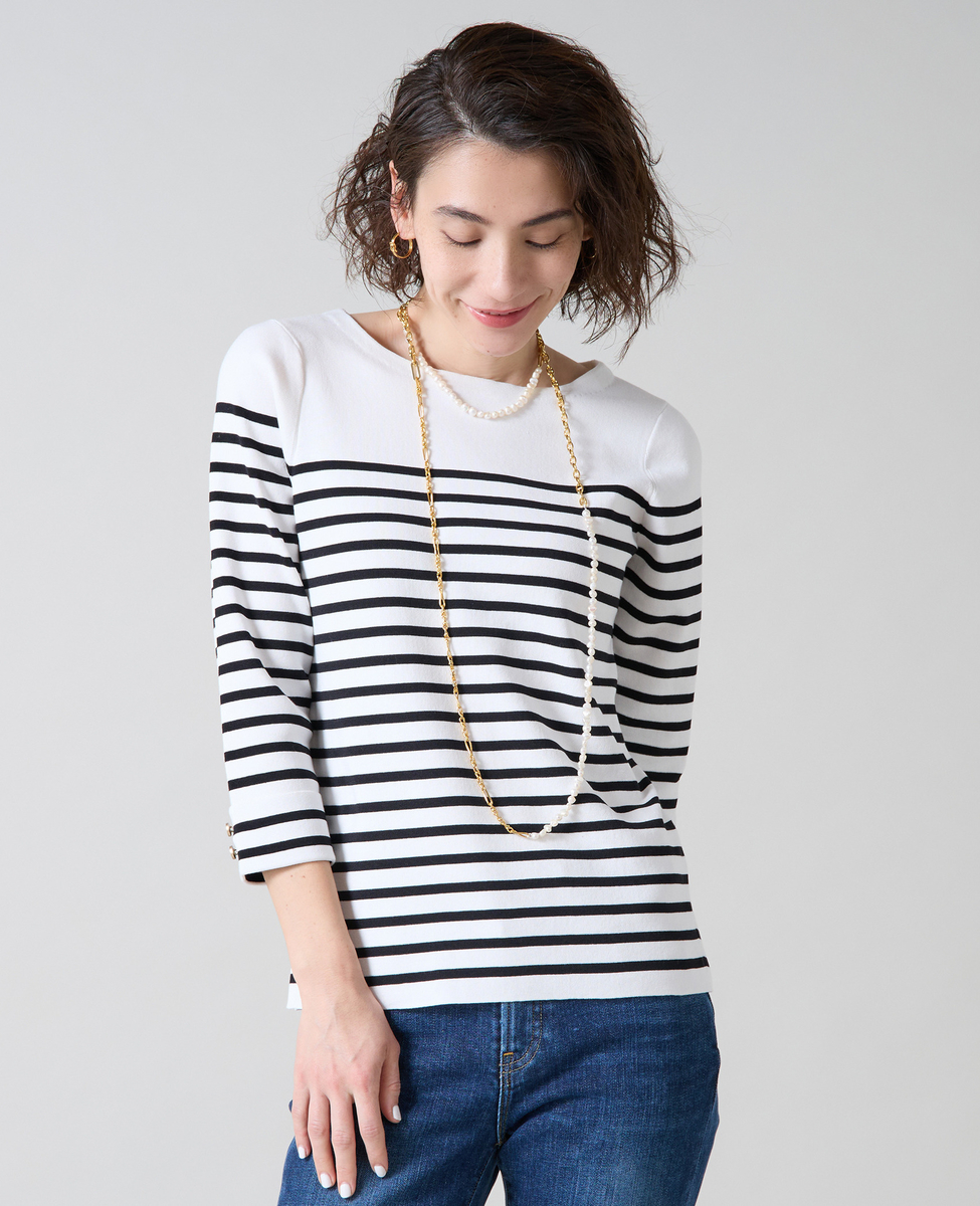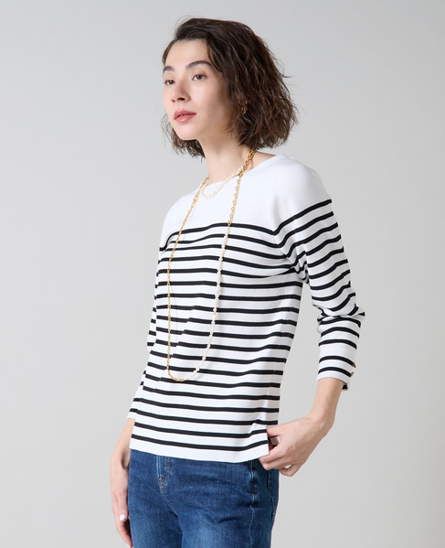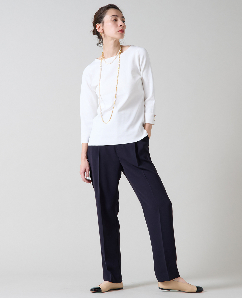 袖釦ボートネックニット