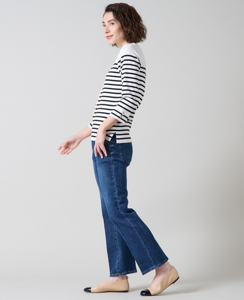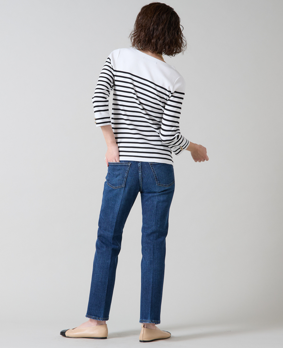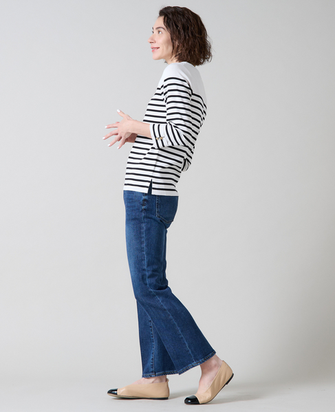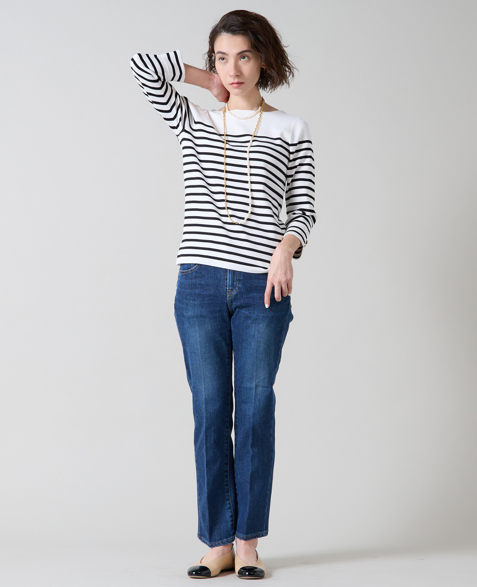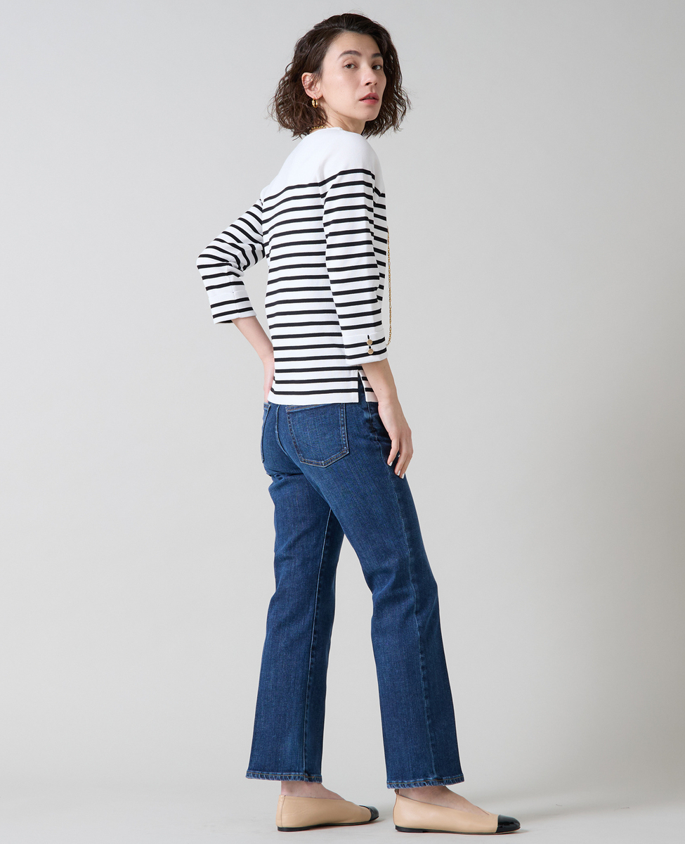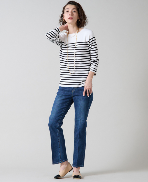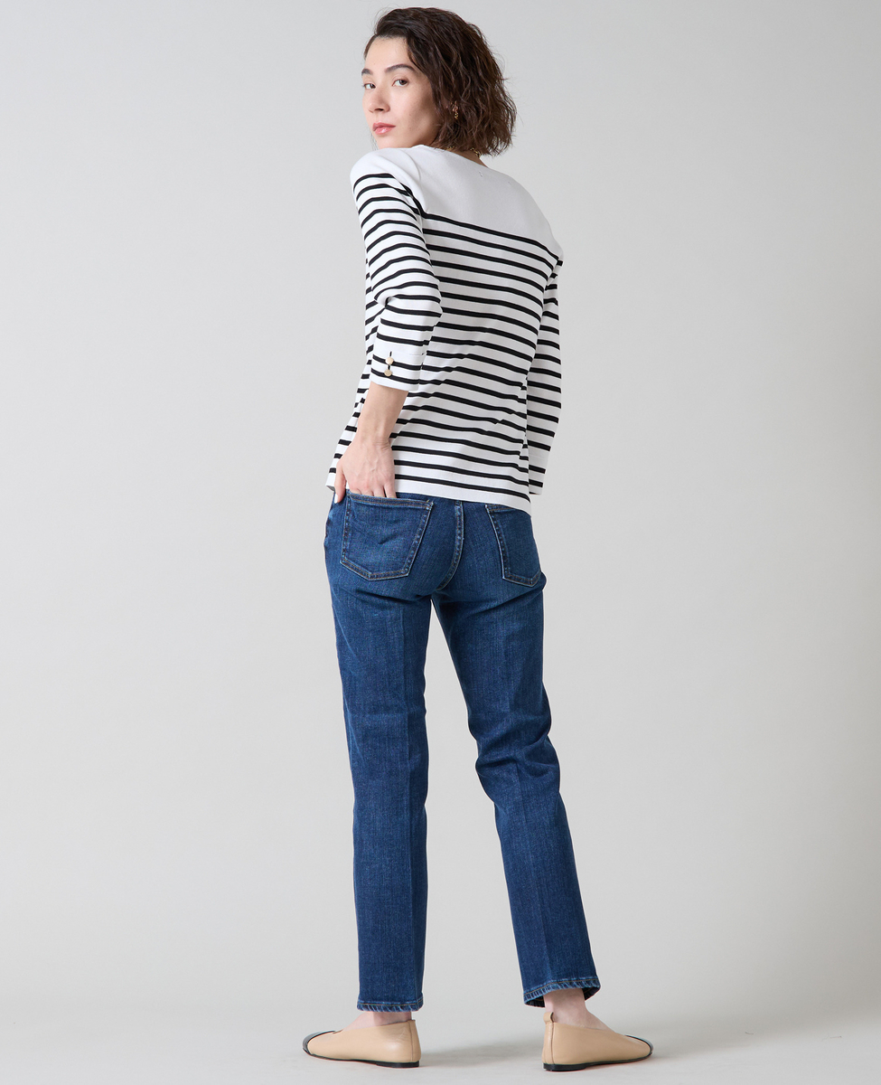 袖釦ボートネックニット