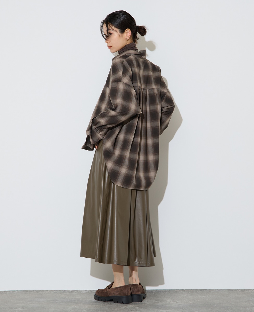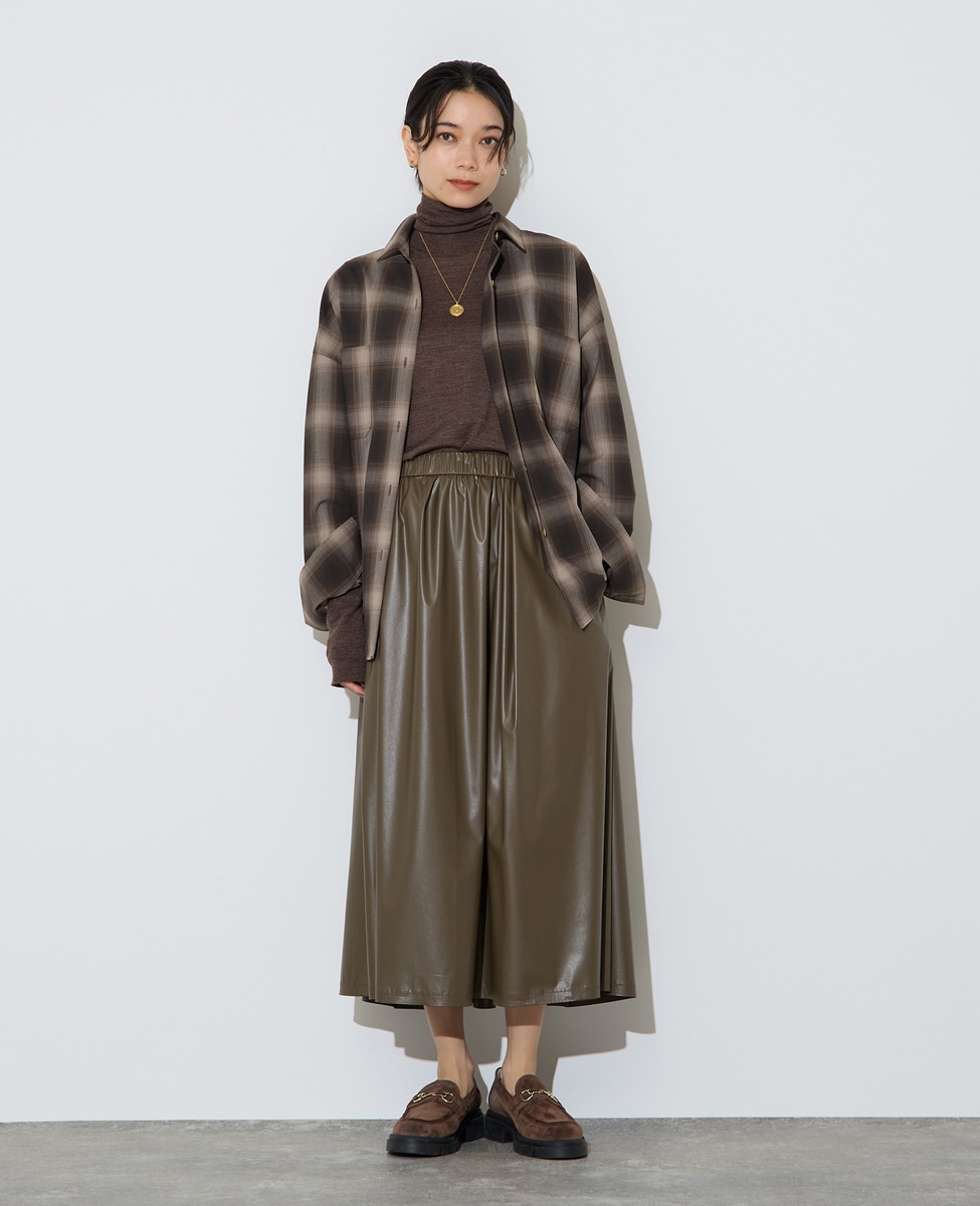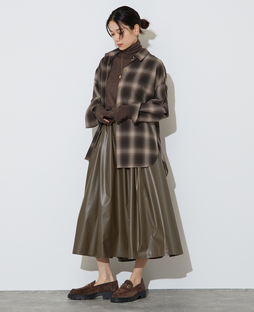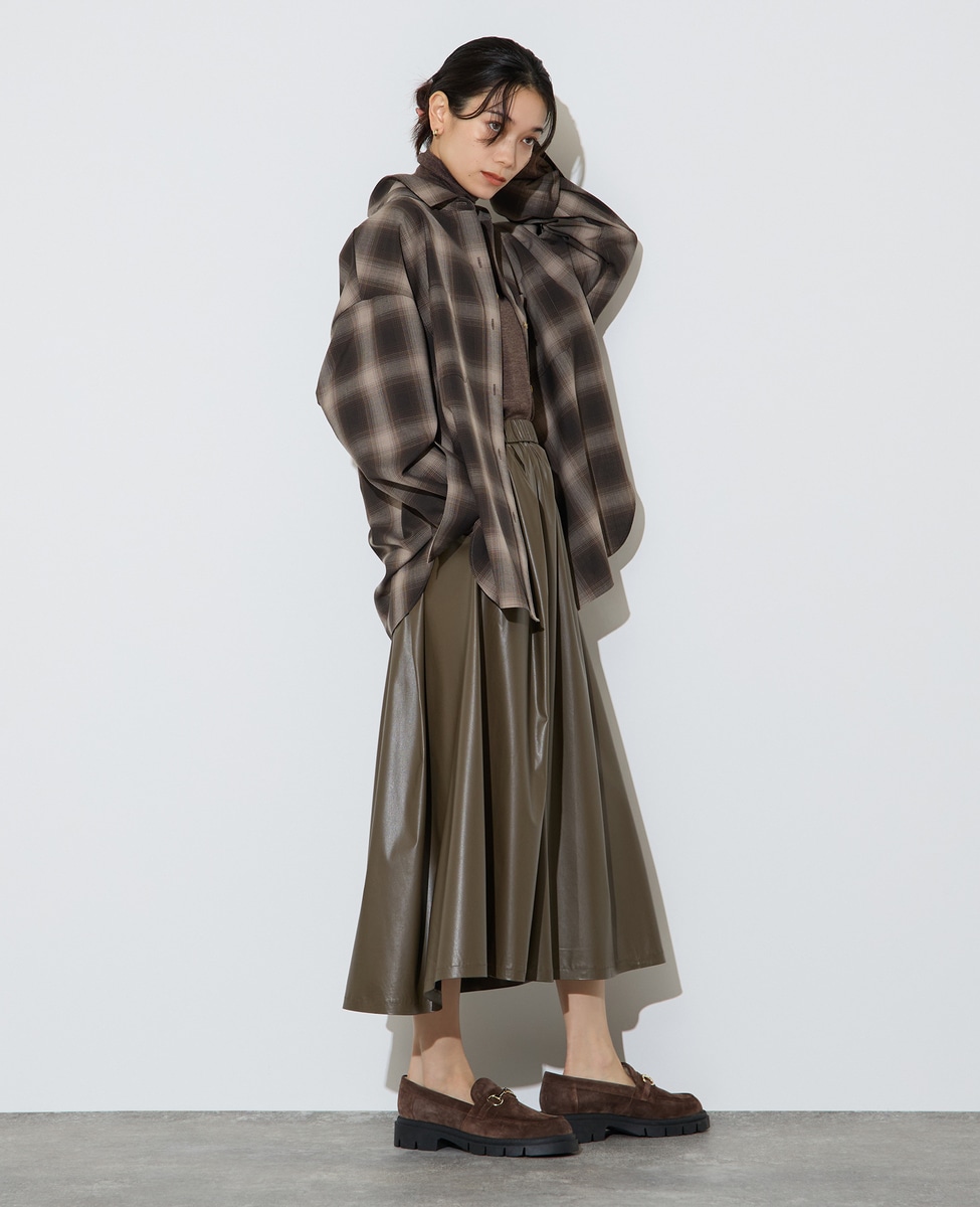 レザー調タックフレアスカート