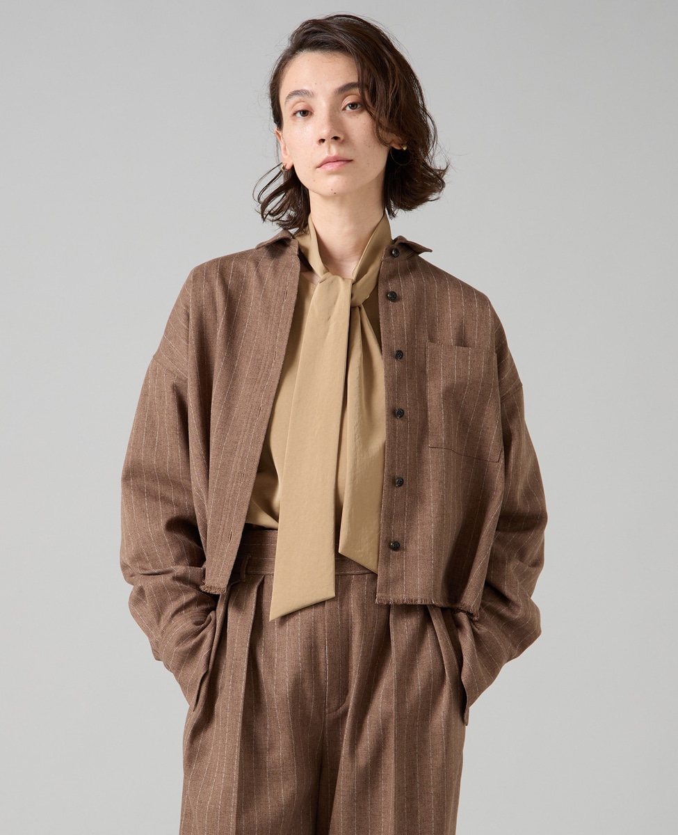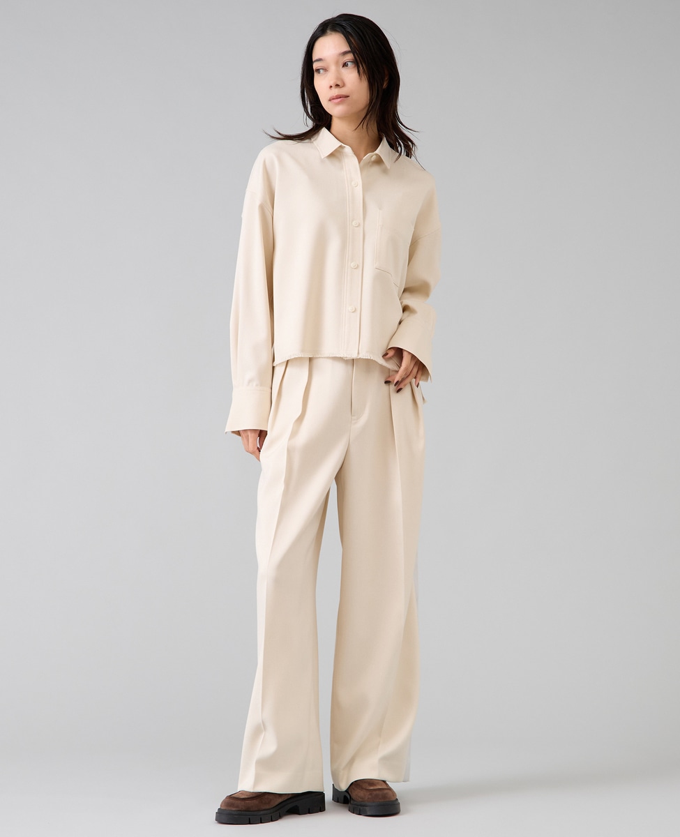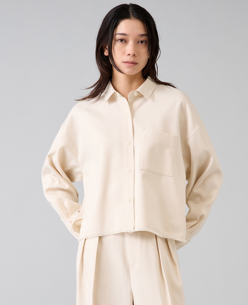 ショート丈でトレンドライクに仕上げたオーバーシャツ。