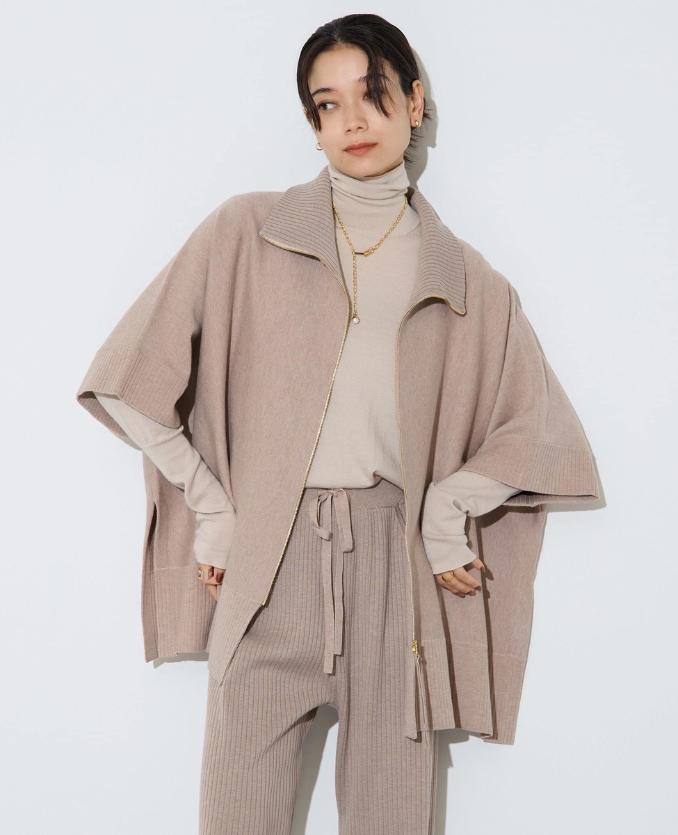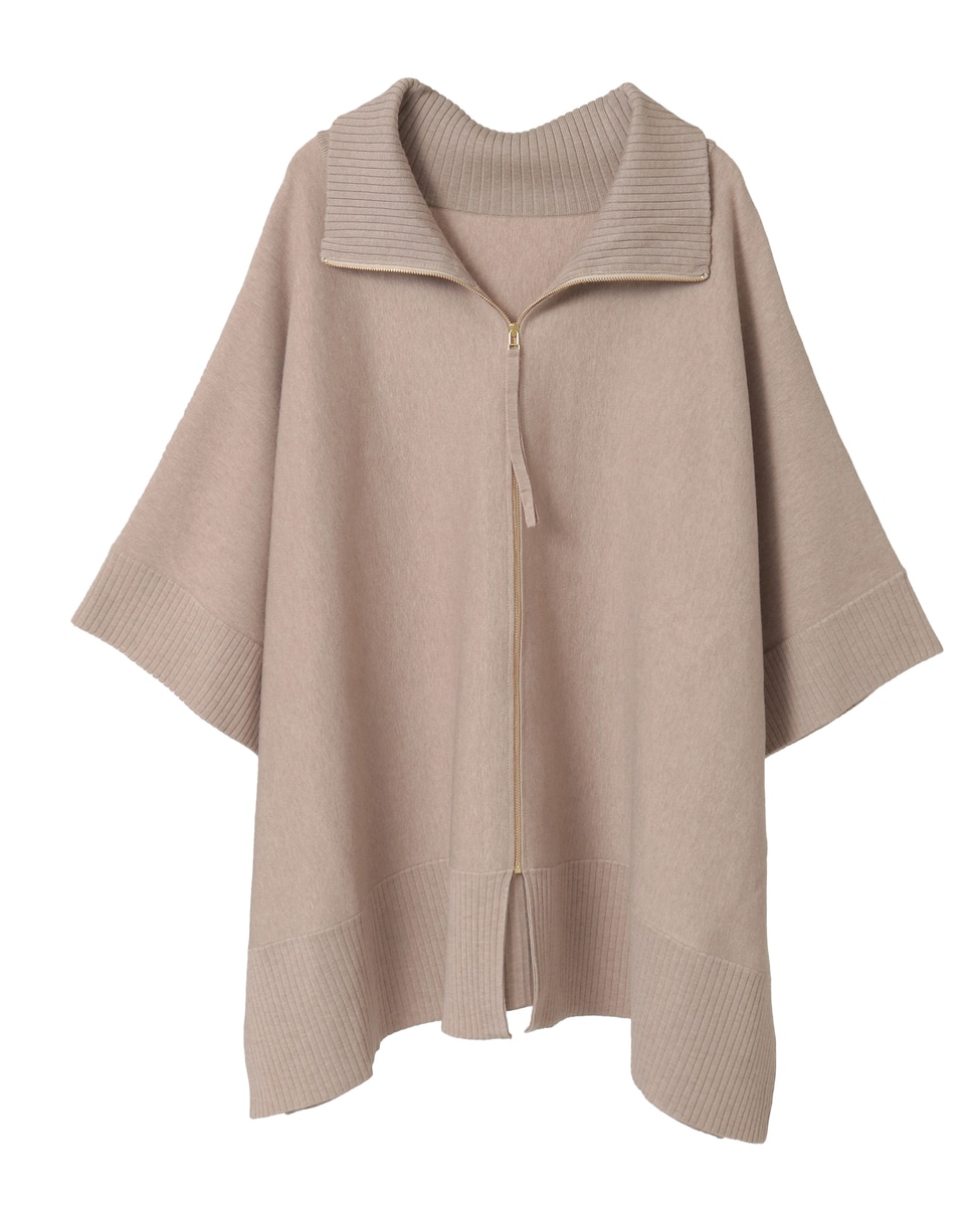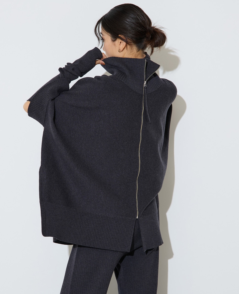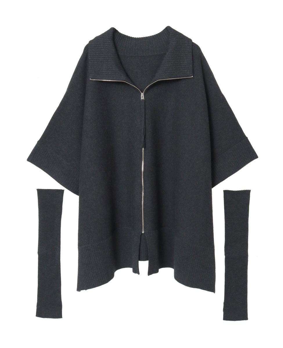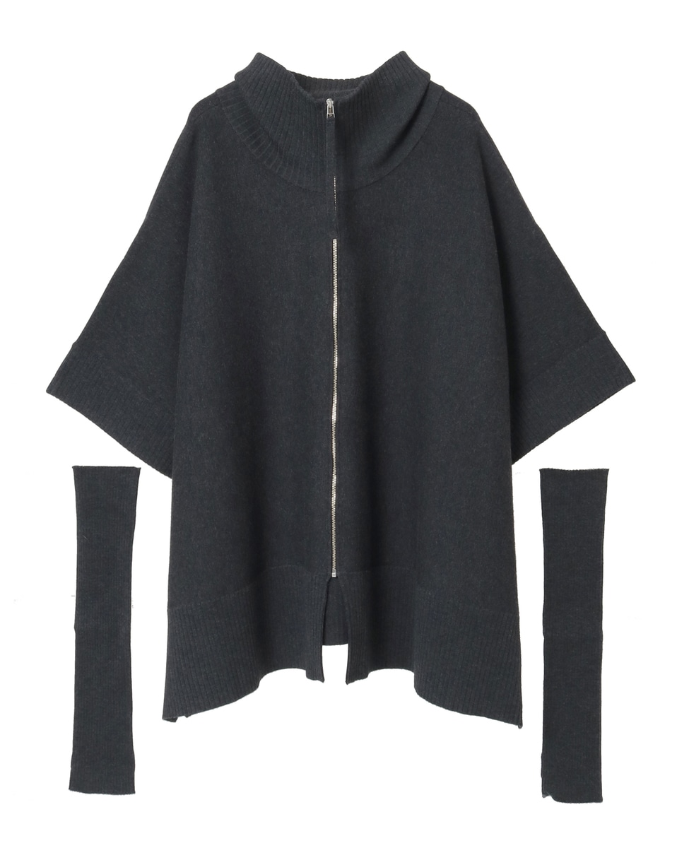 ケープのようなワイドシルエットのオープンファスナープルオーバー。