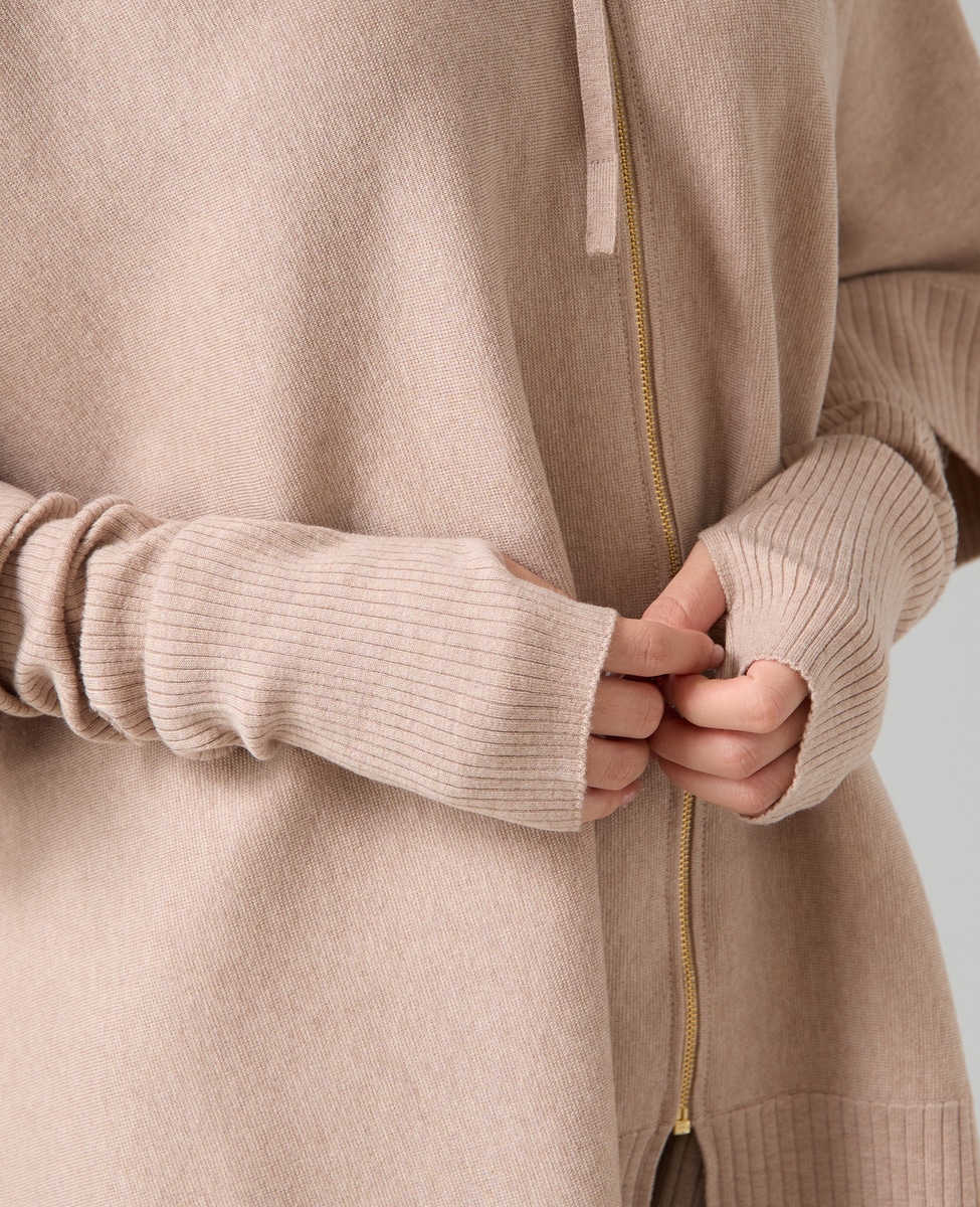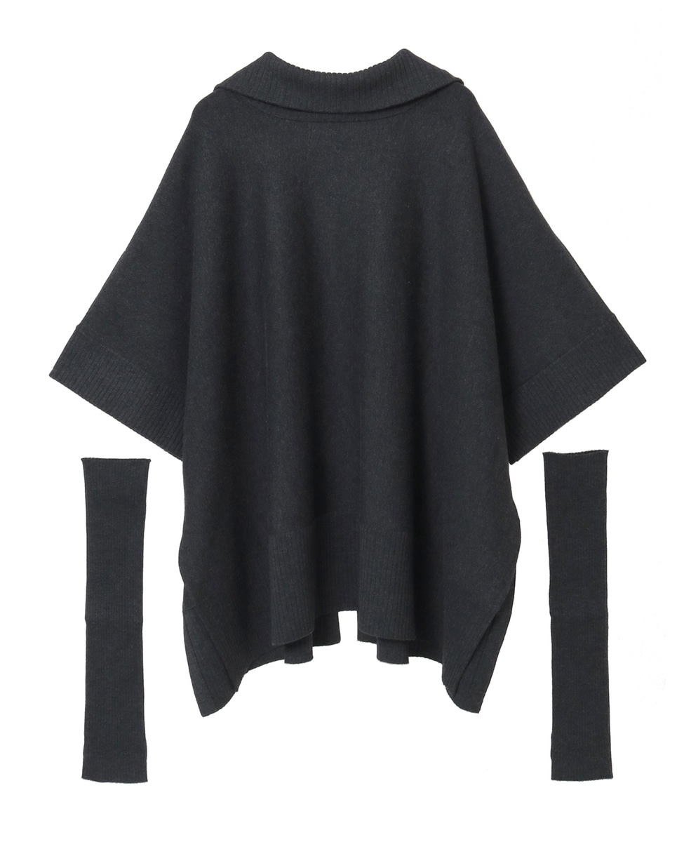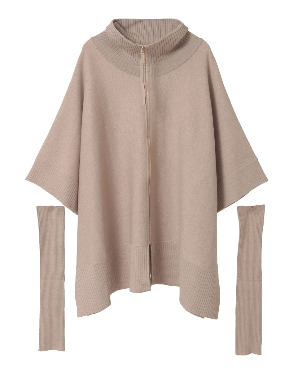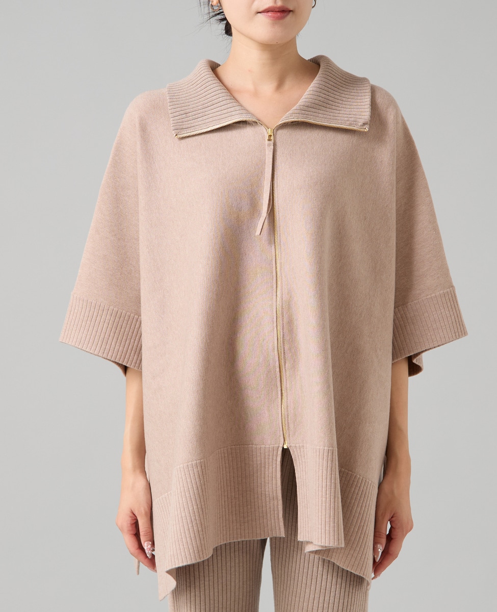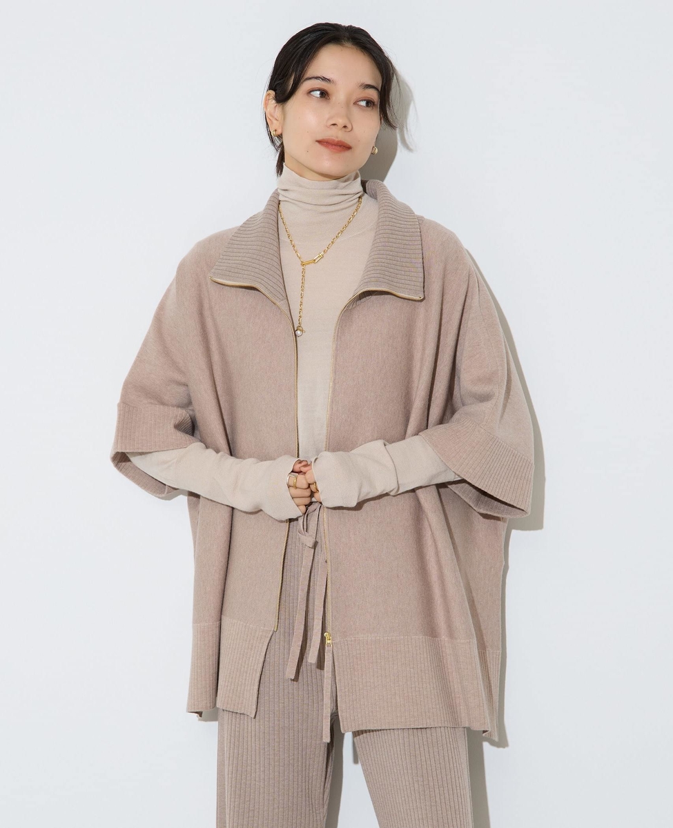 ケープのようなワイドシルエットのオープンファスナープルオーバー。