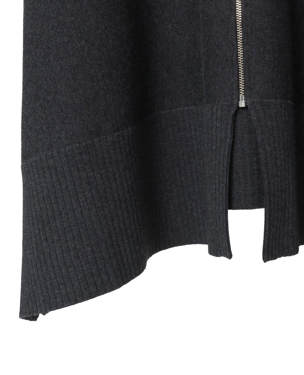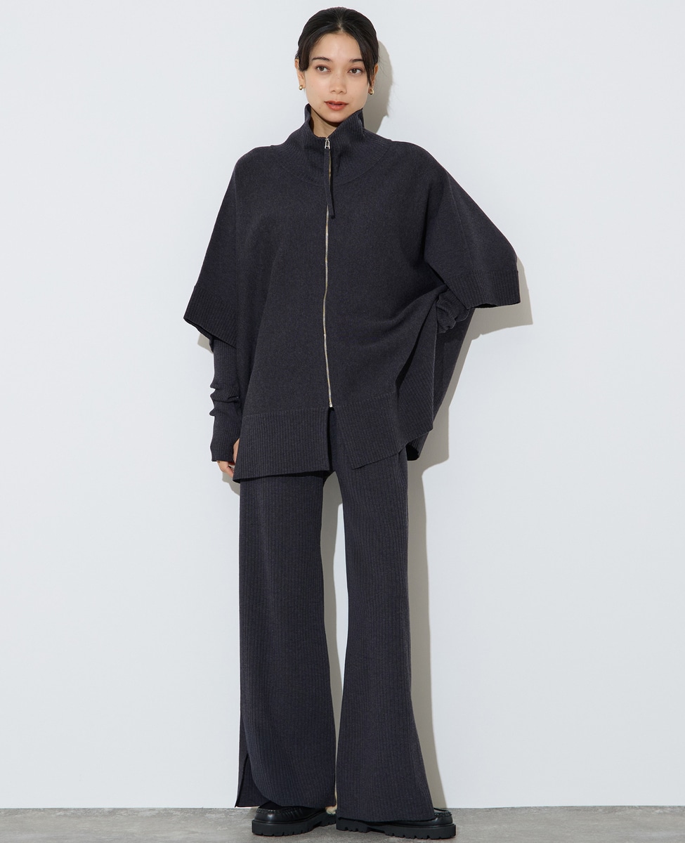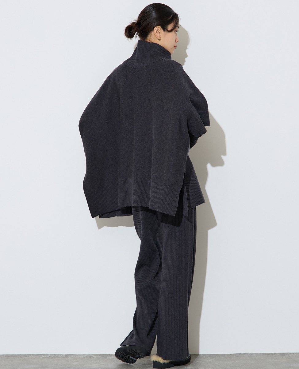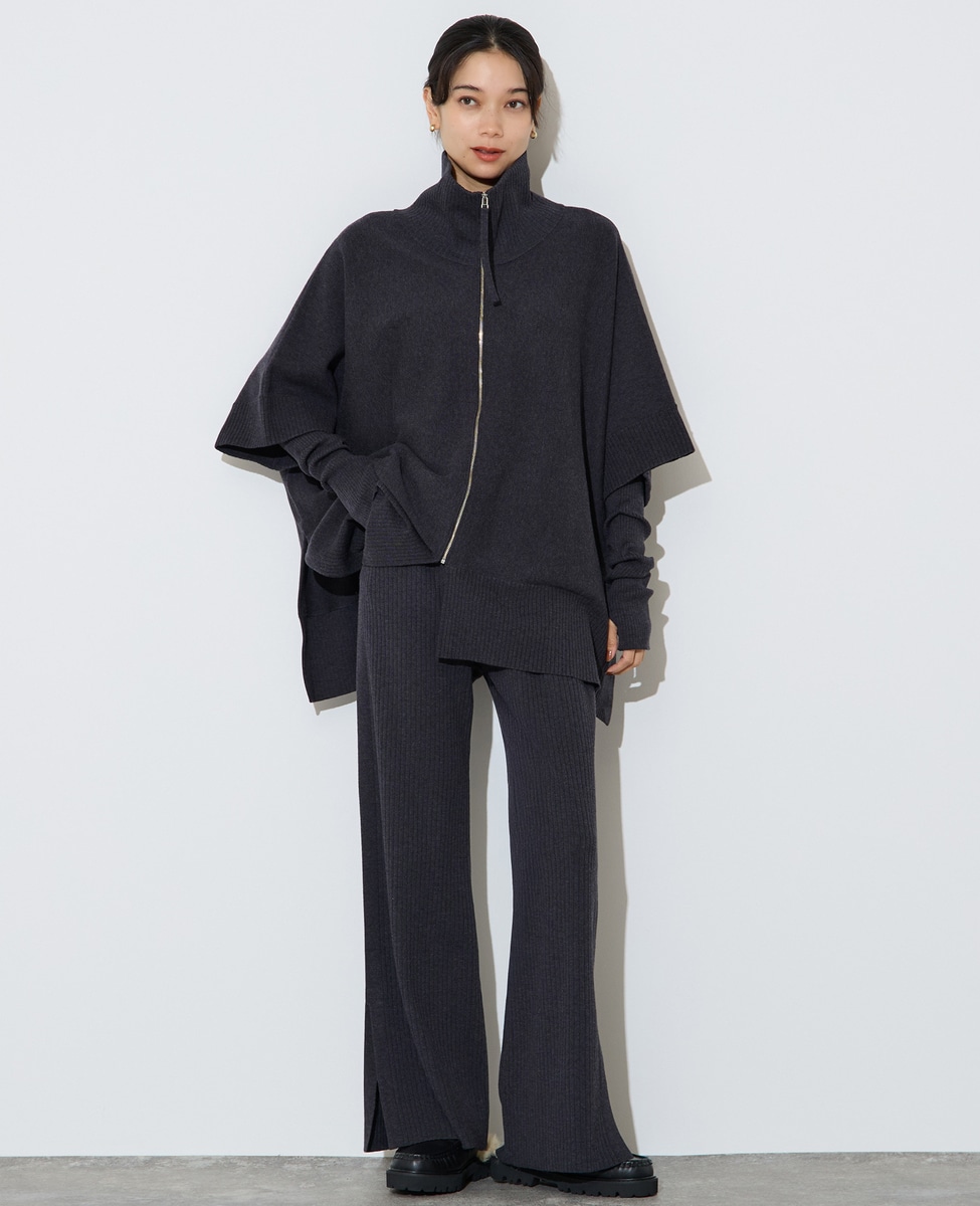 ケープのようなワイドシルエットのオープンファスナープルオーバー。