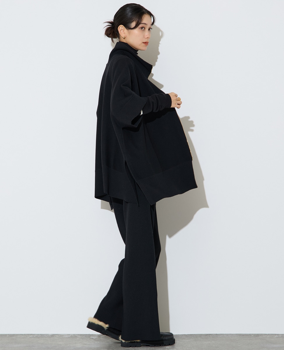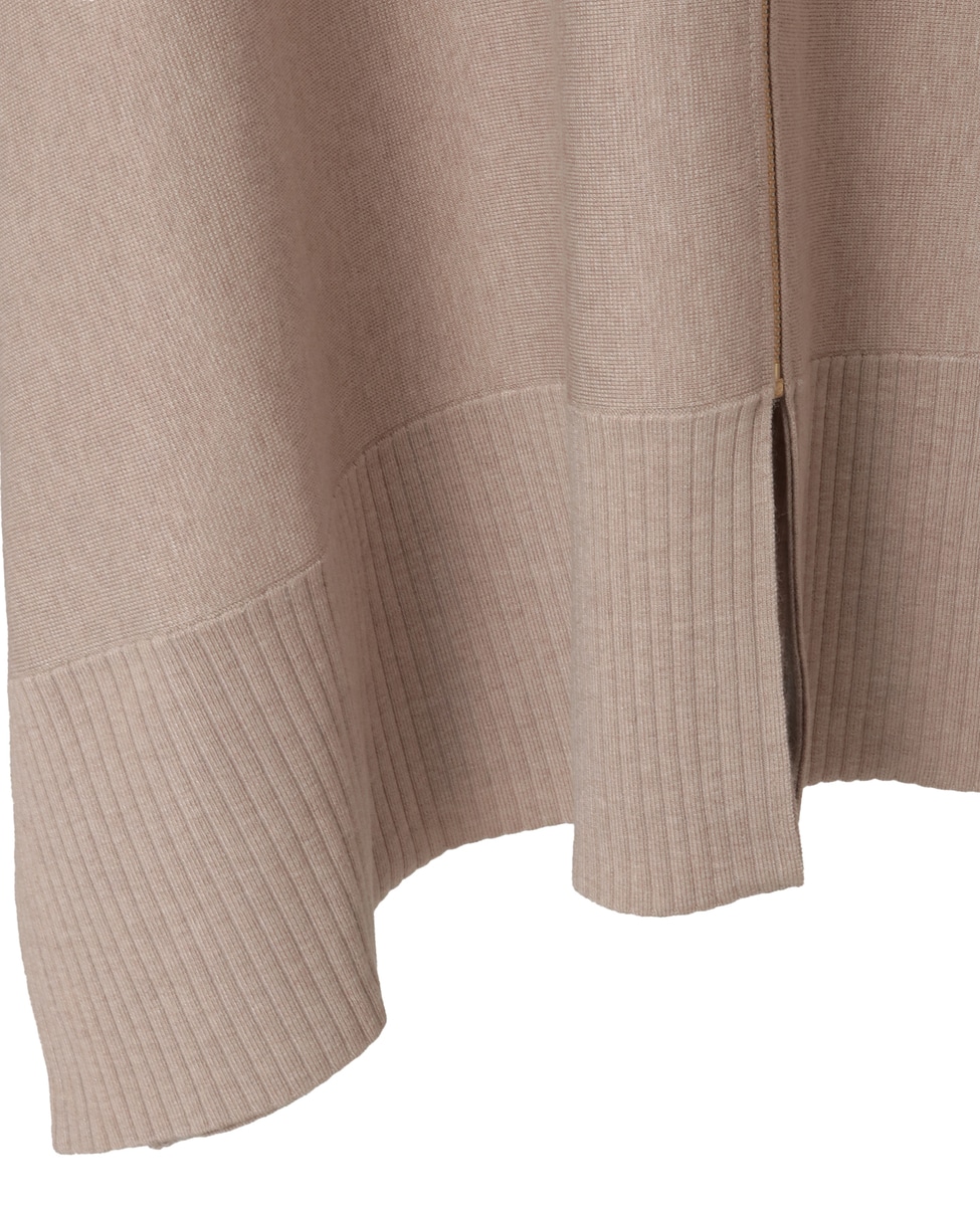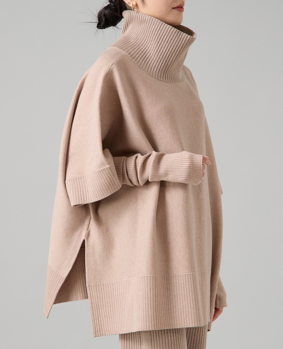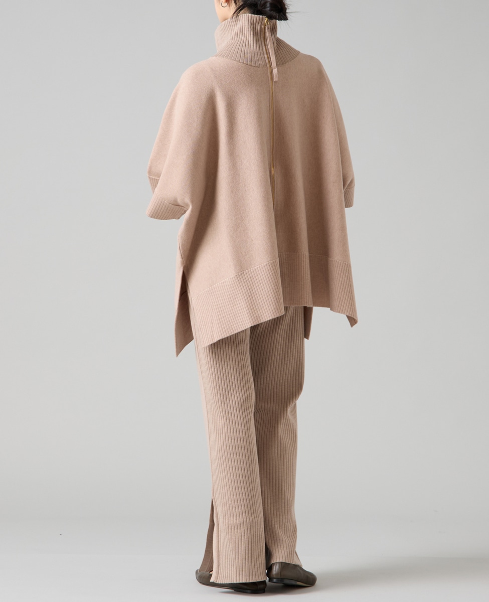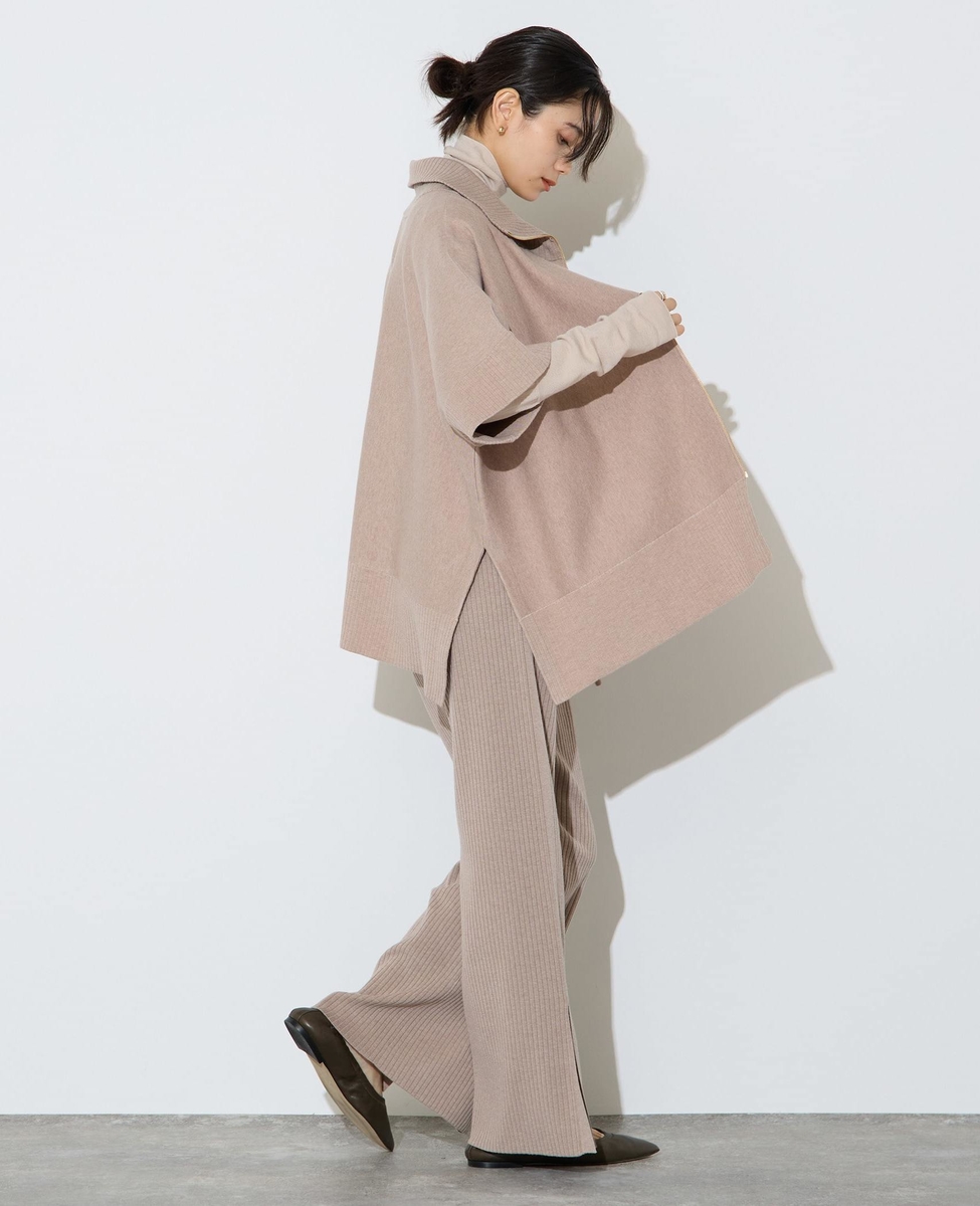 ケープのようなワイドシルエットのオープンファスナープルオーバー。