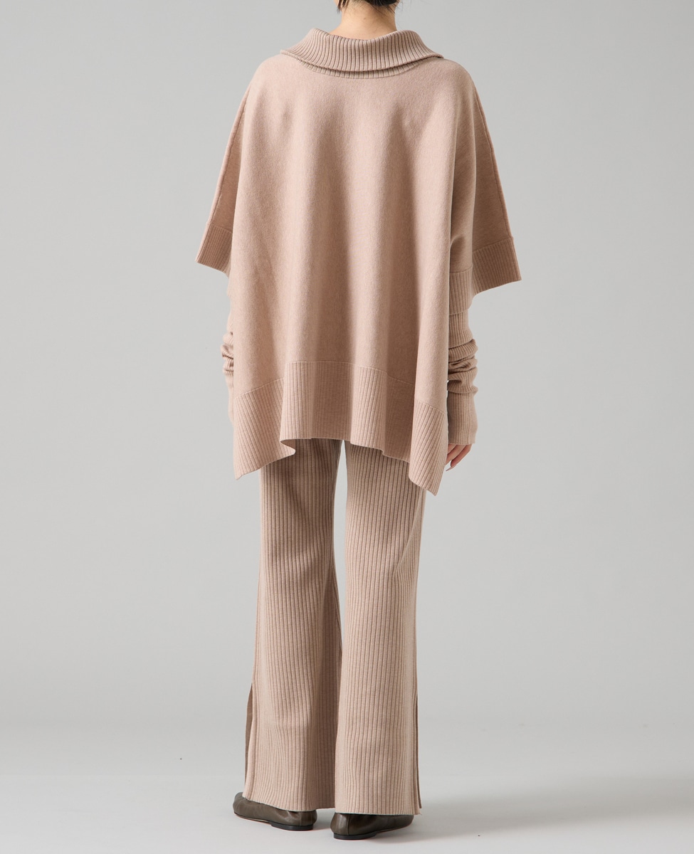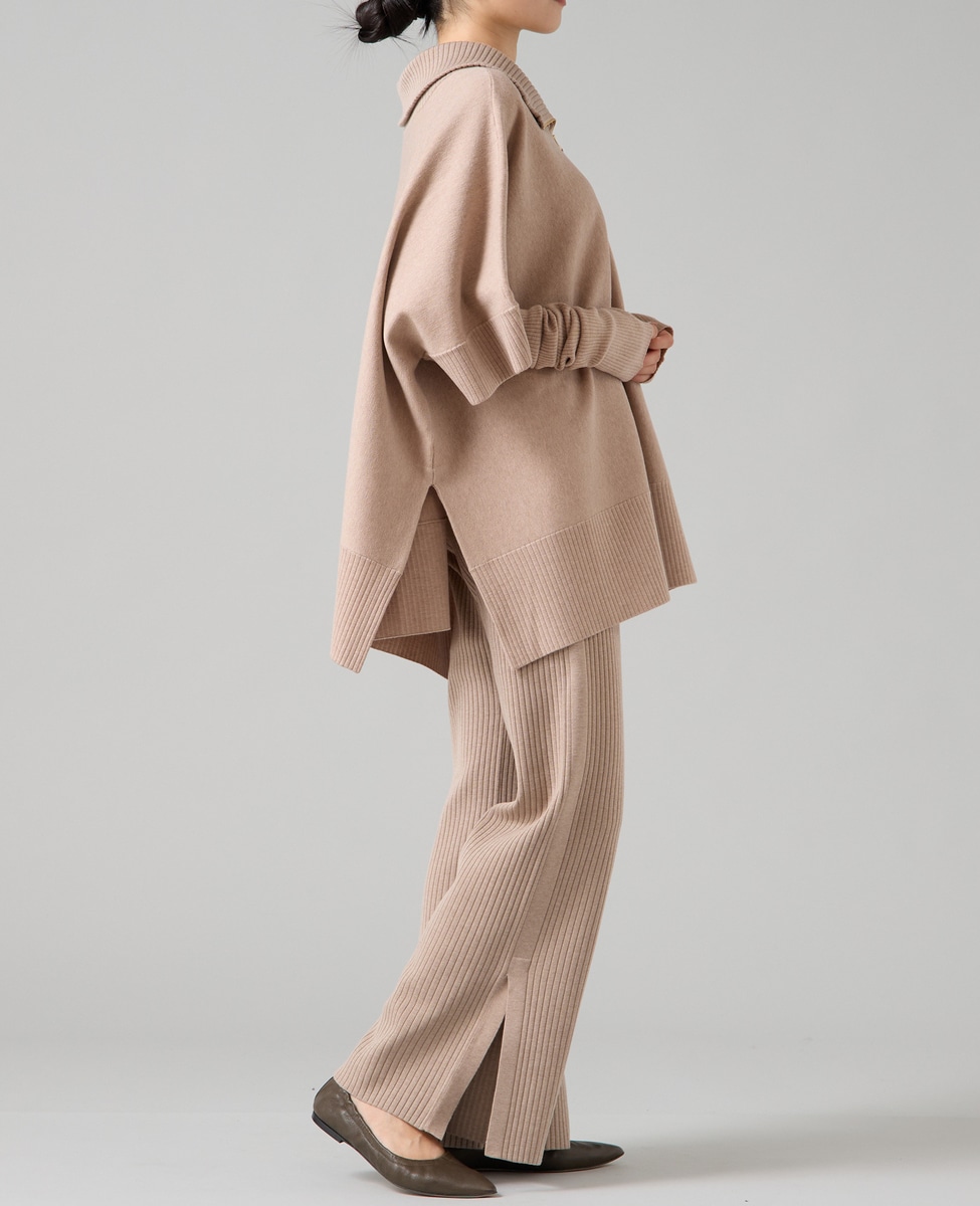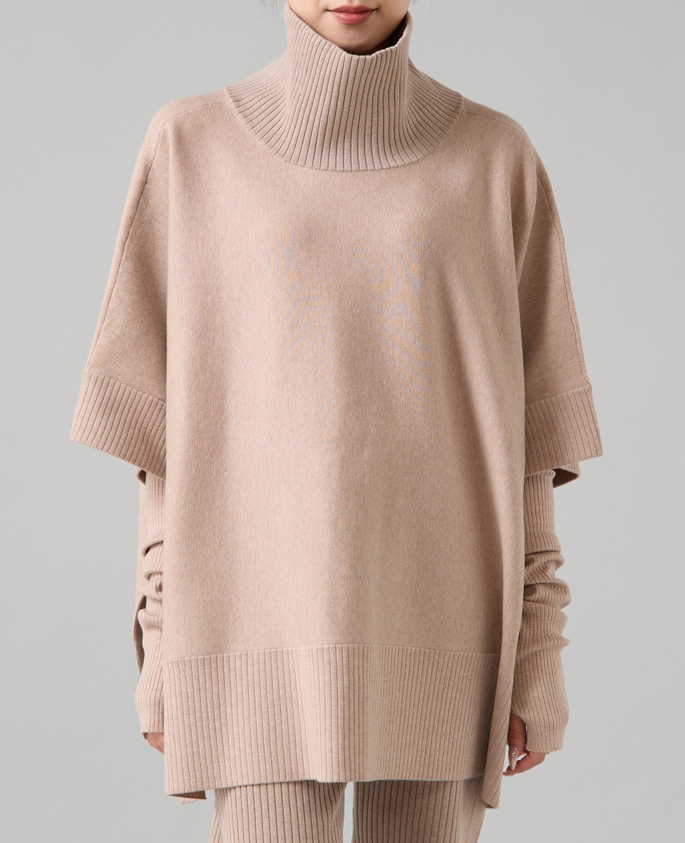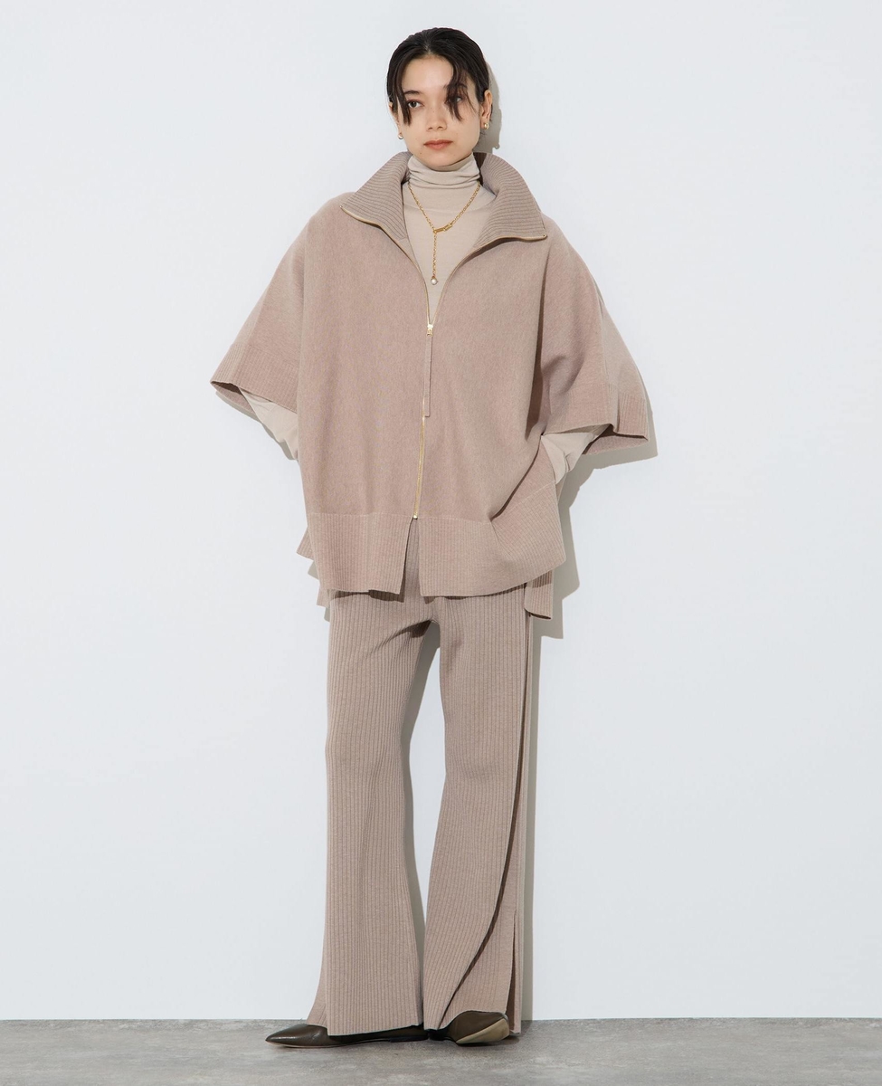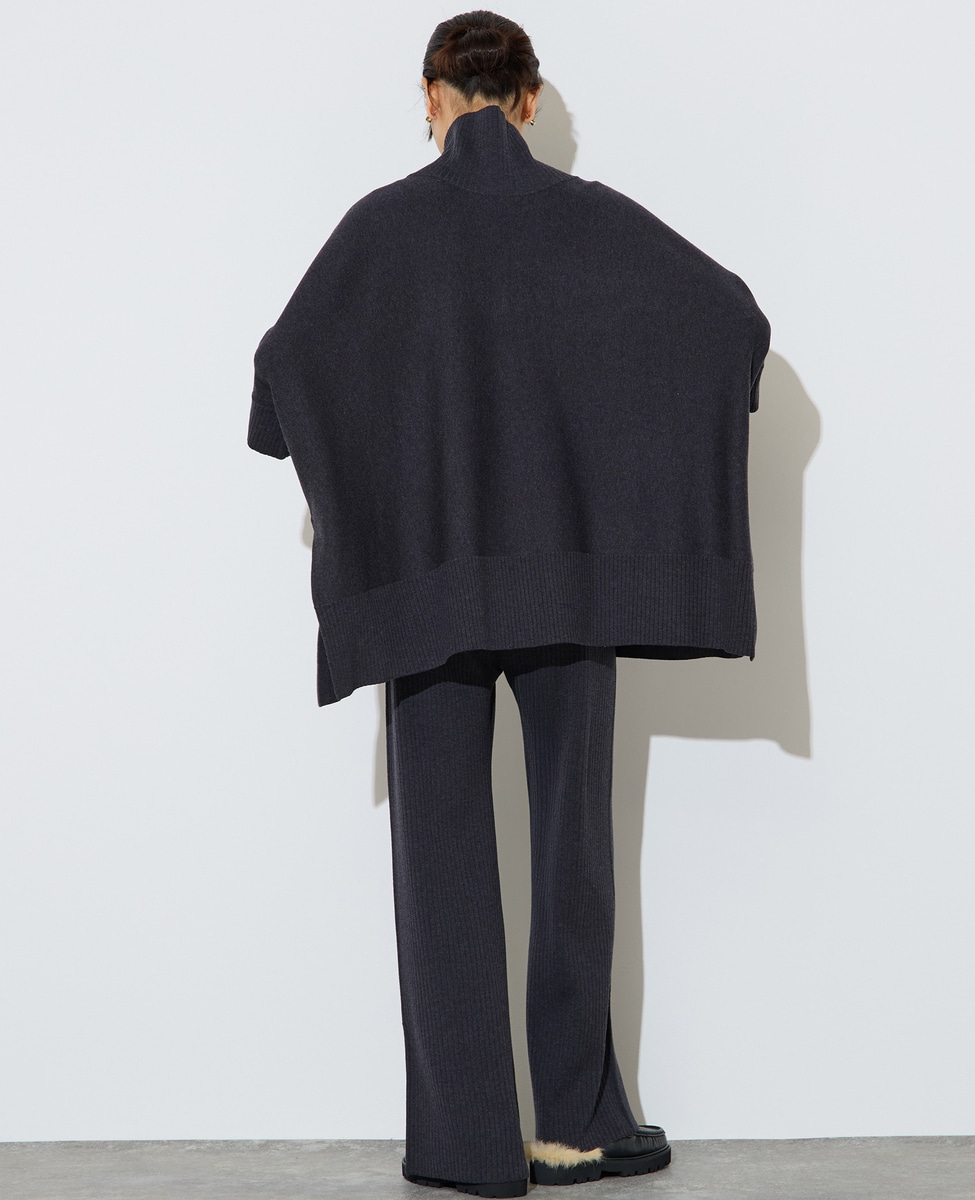 ケープのようなワイドシルエットのオープンファスナープルオーバー。