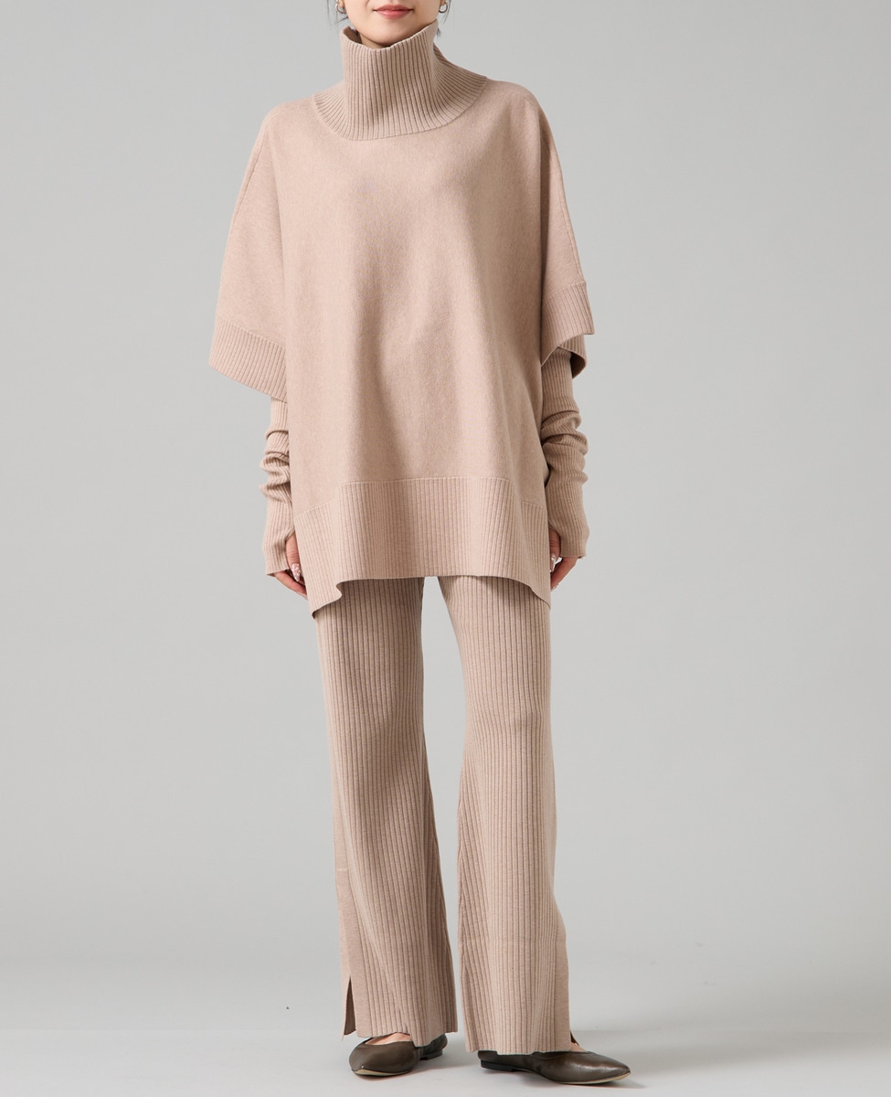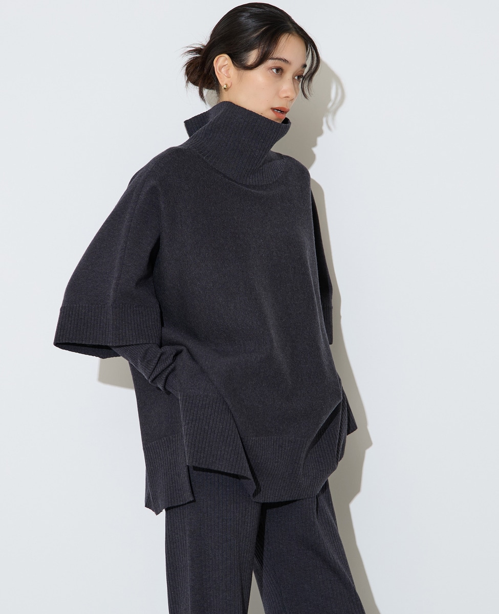 同素材のリブアームウォーマーがセットされた、7分の袖が、端境期にコーデ幅が広がります。