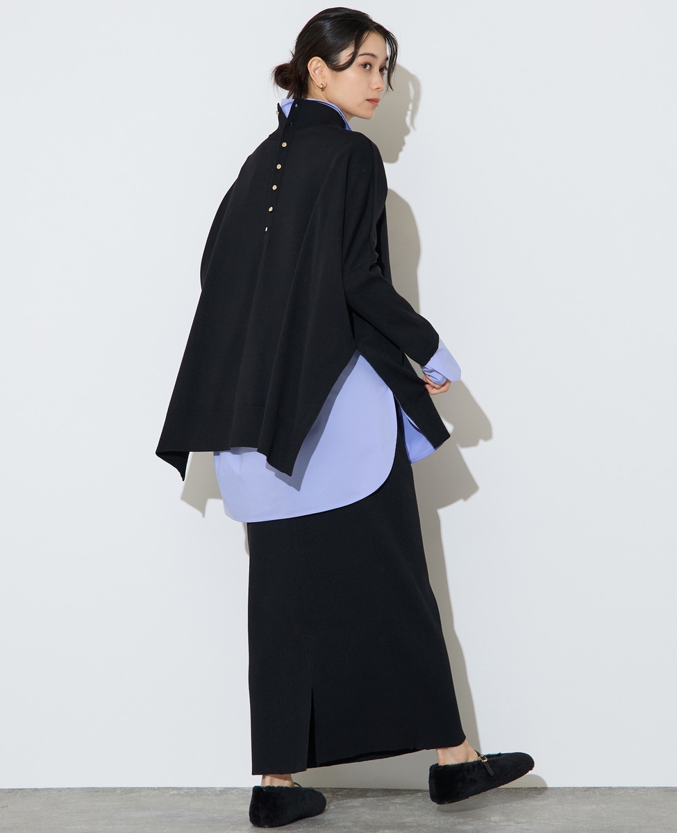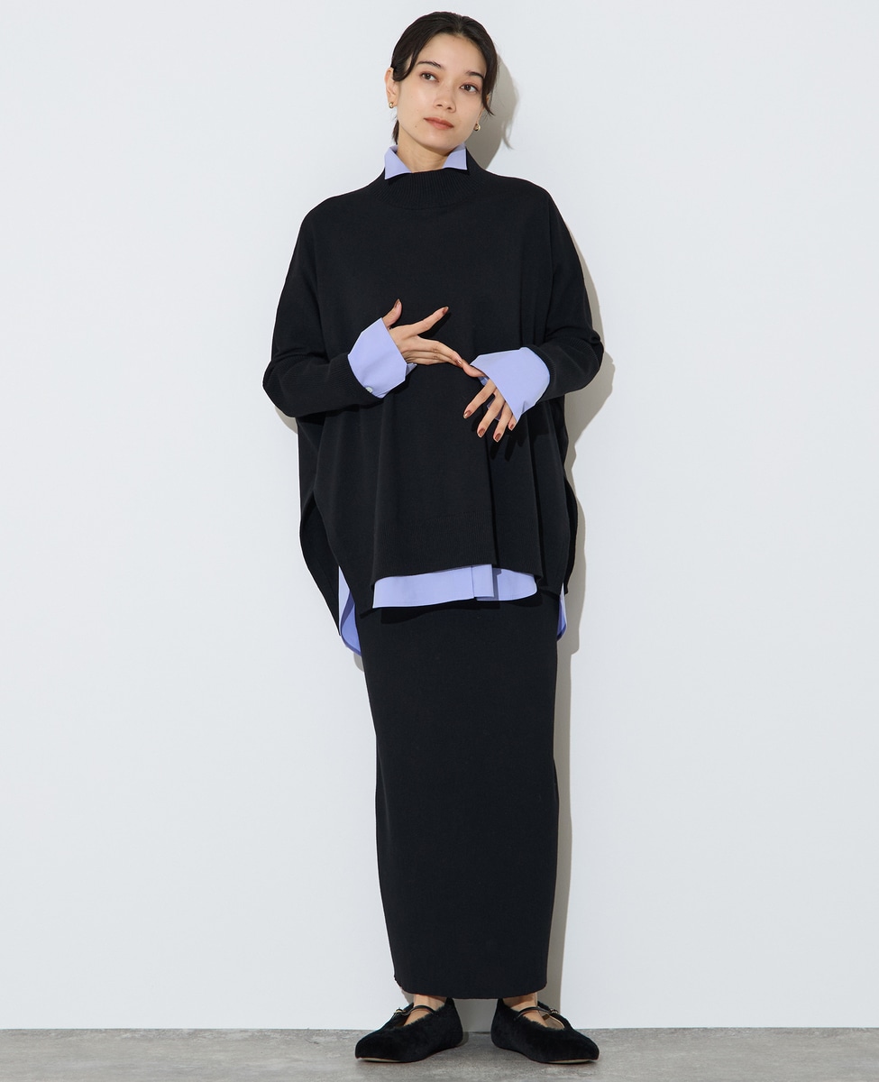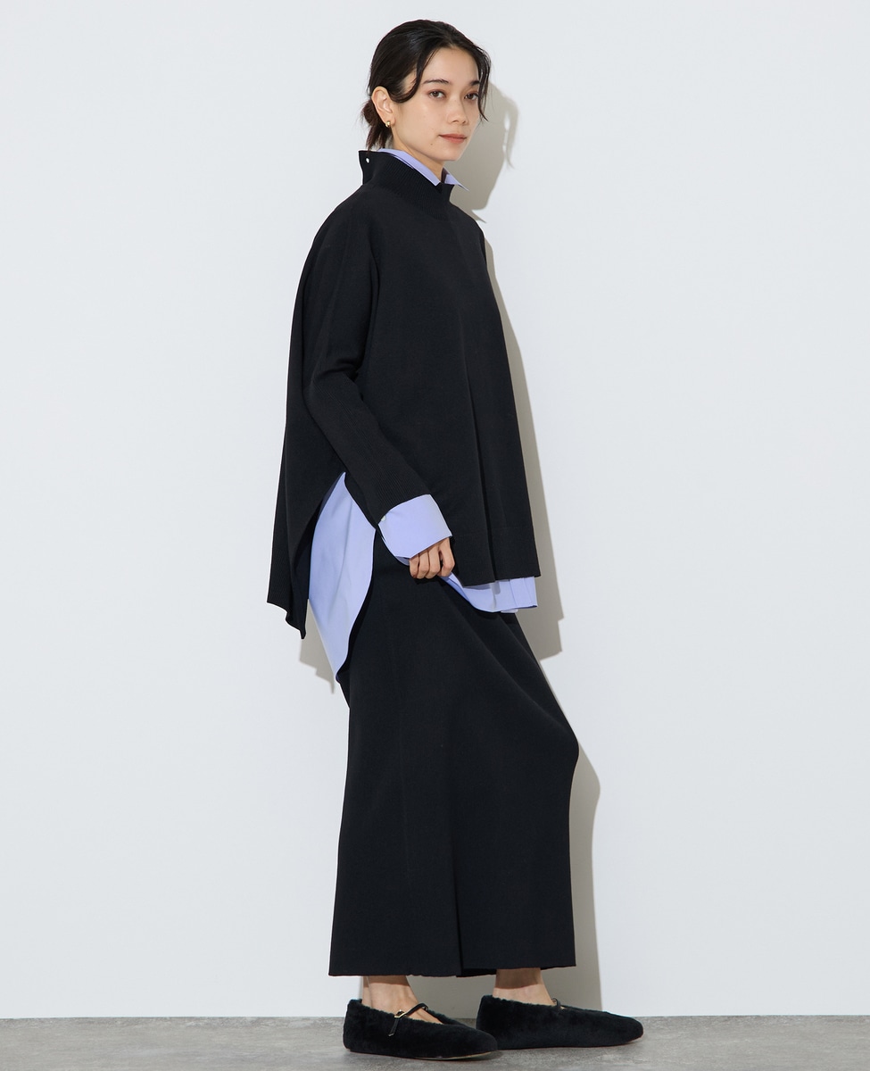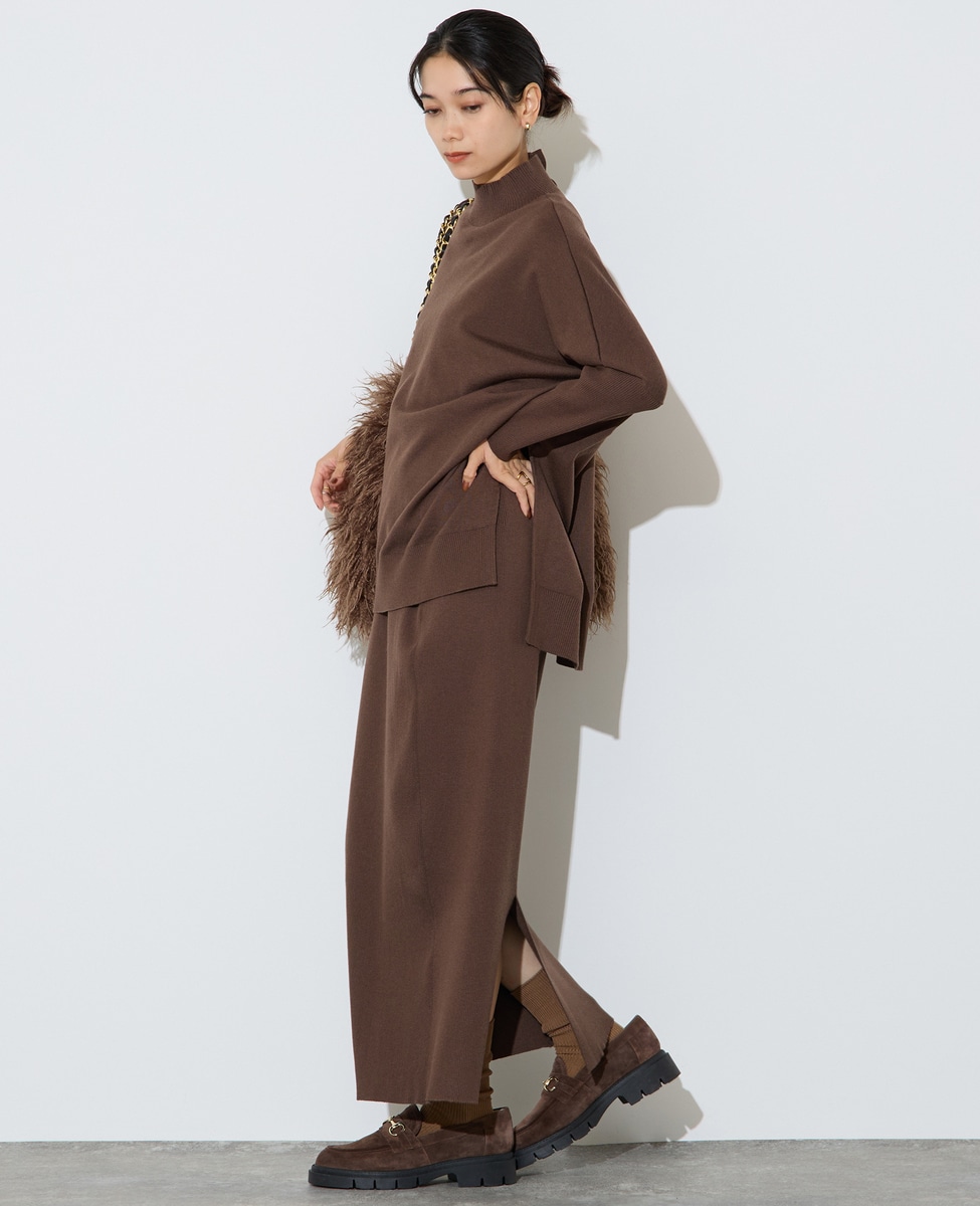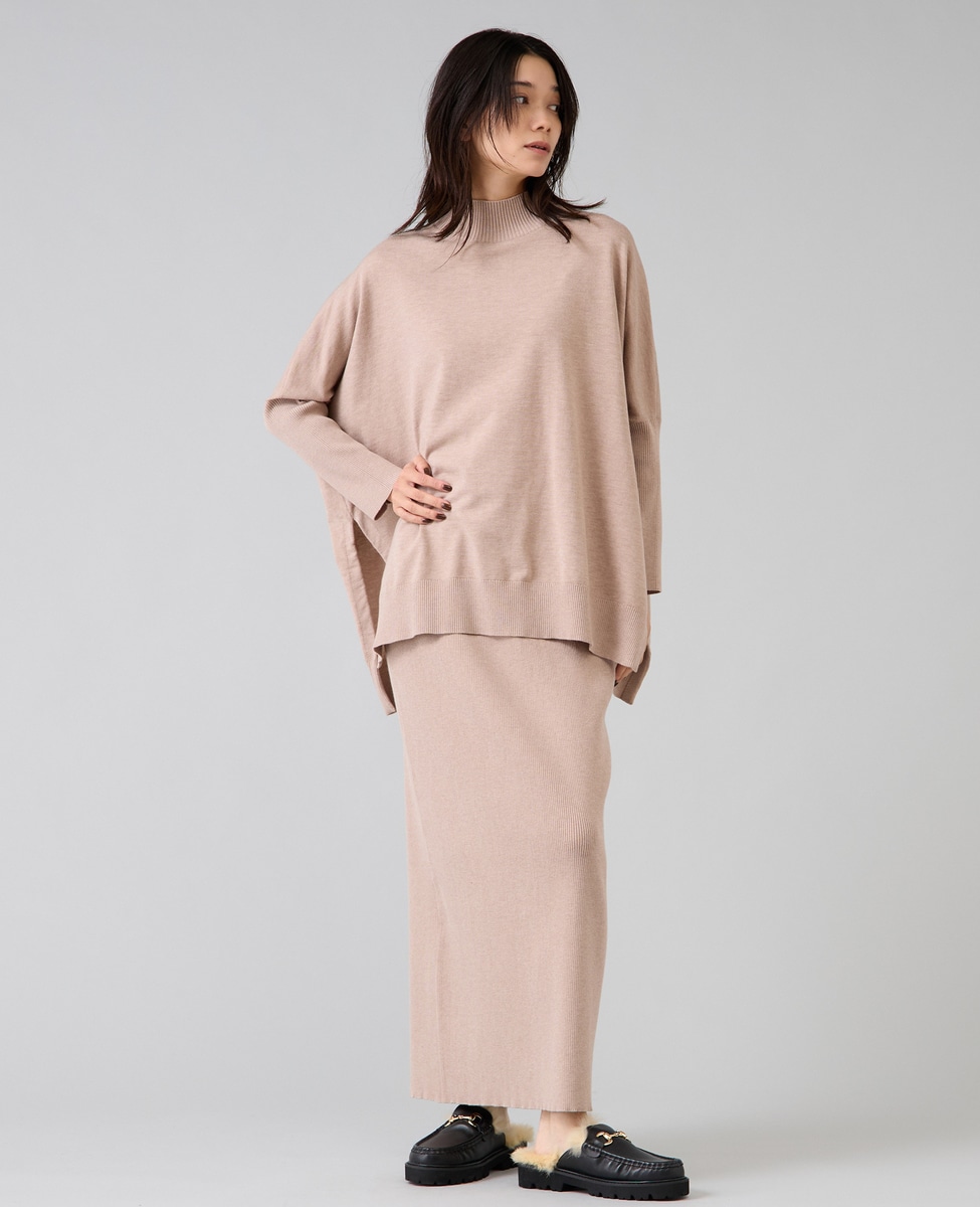 キレイ目~カジュアルまで多様なスタイリングに合わせられる、万能なニットスカートです。