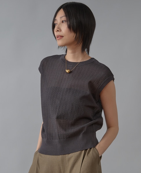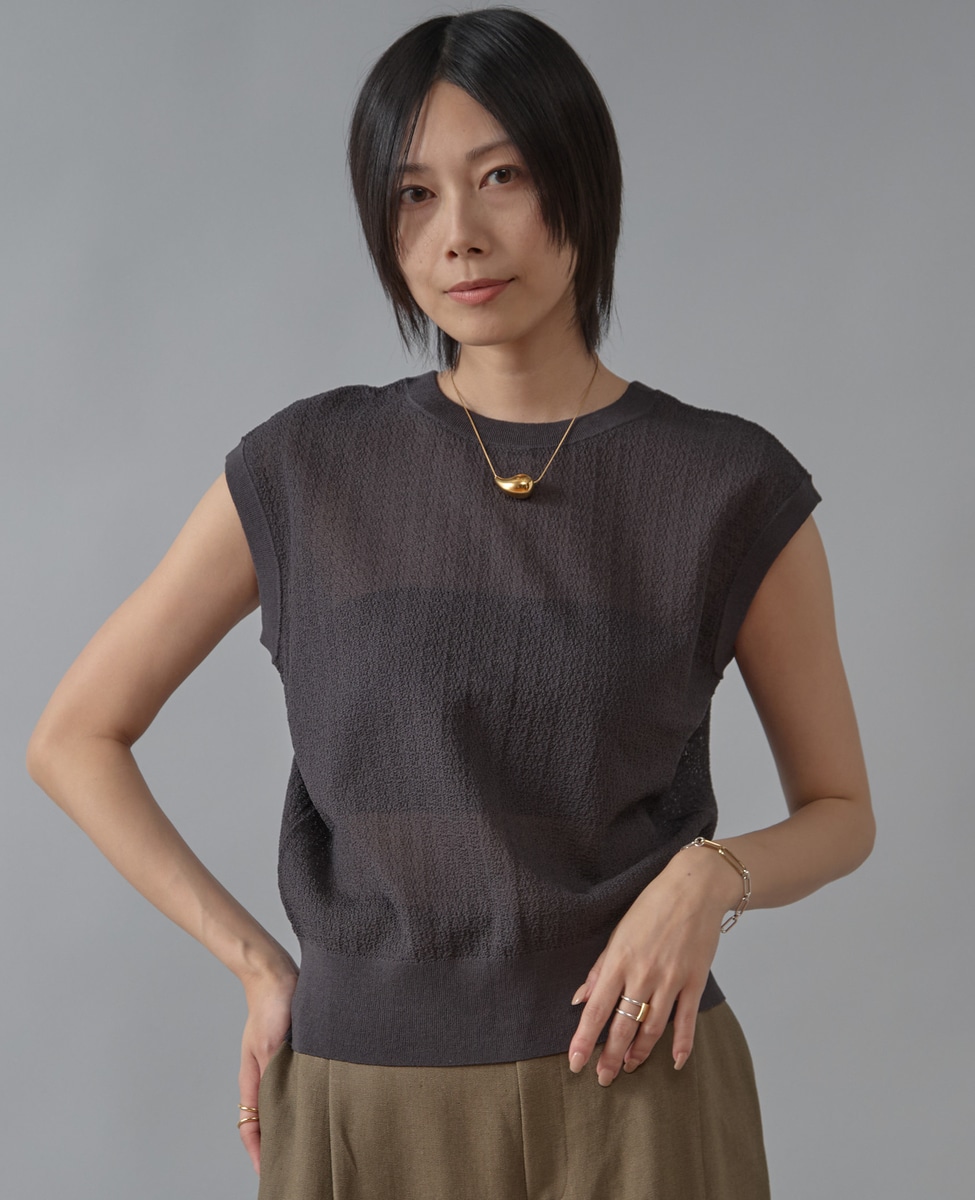 シアーノースリーブニットトップス