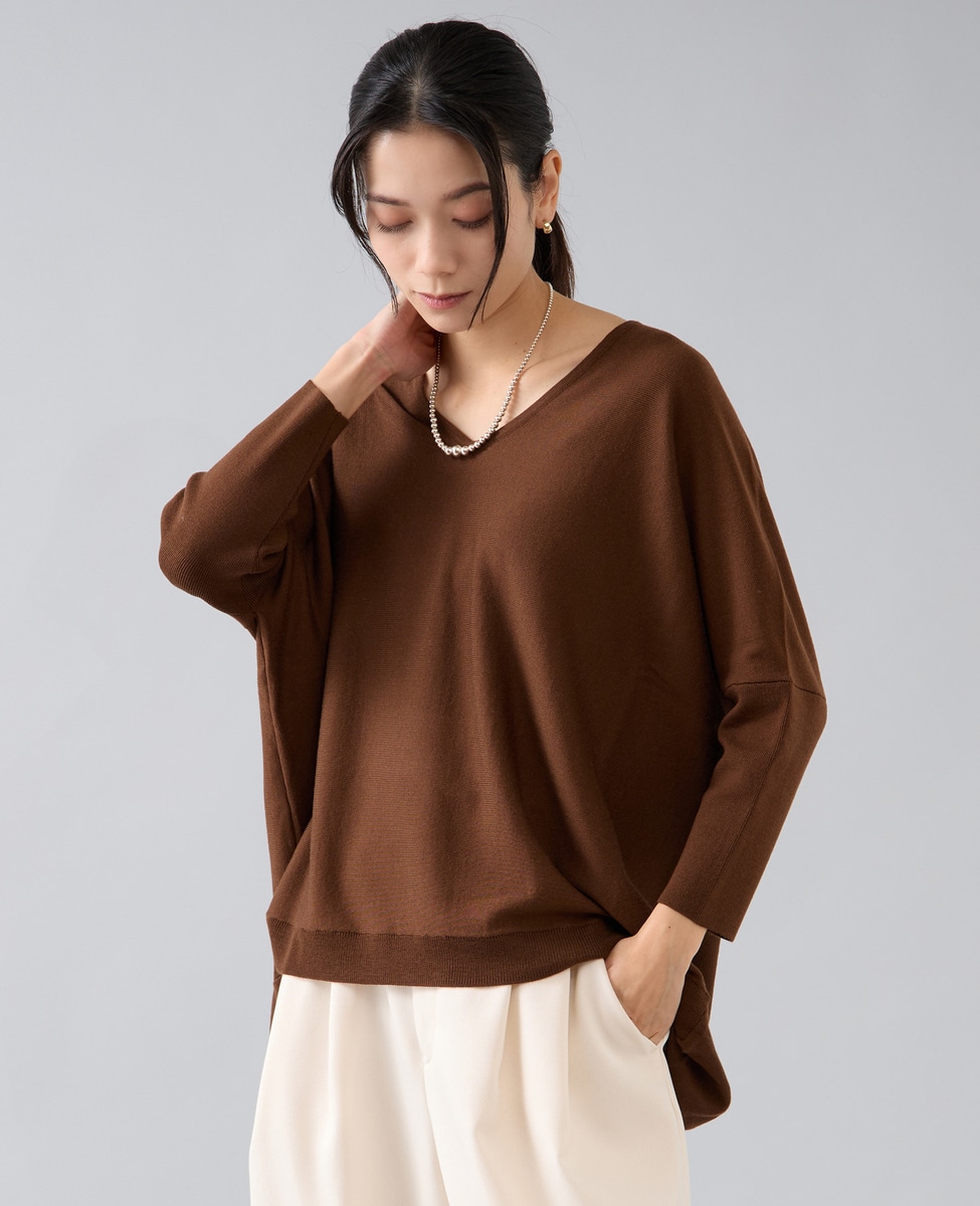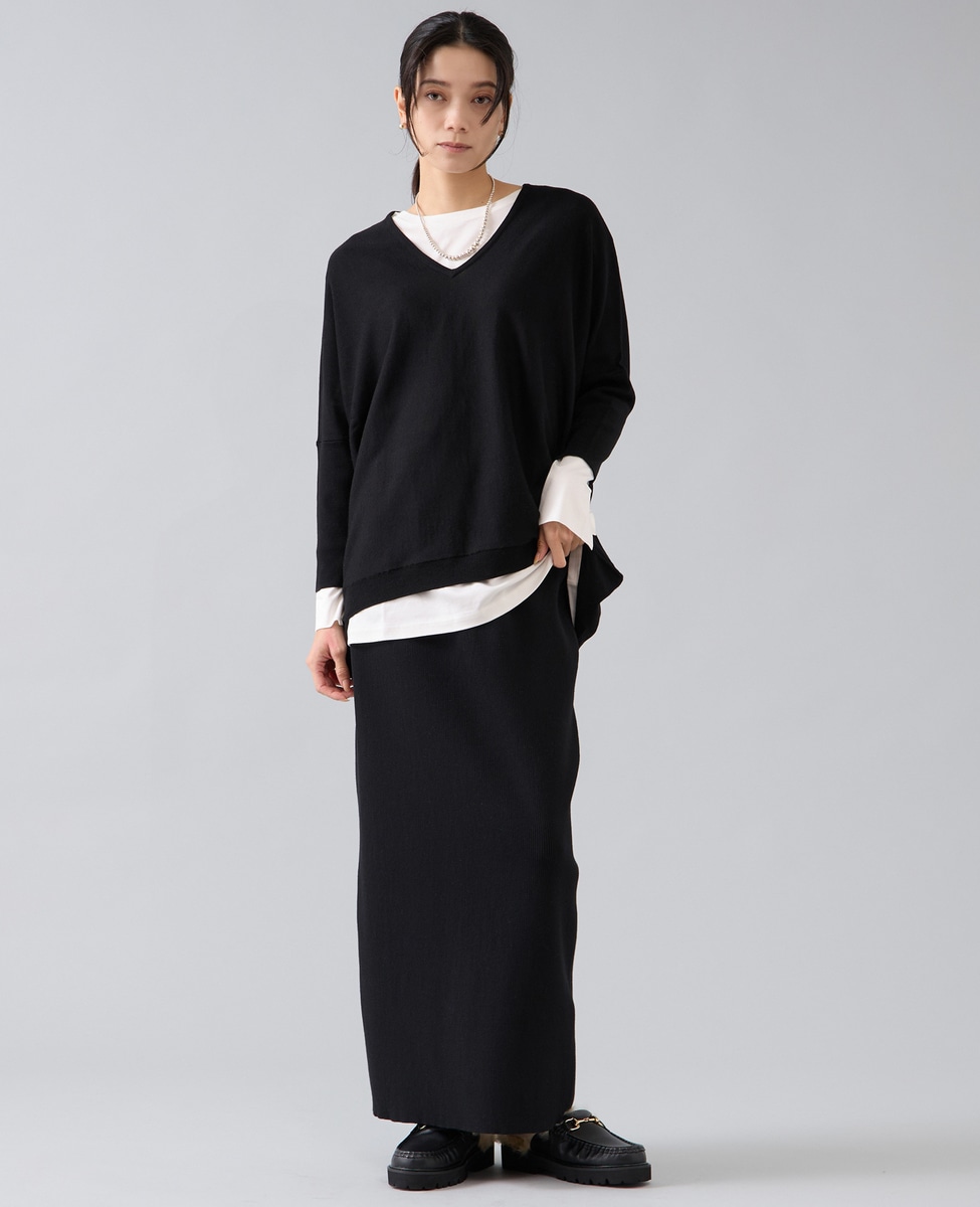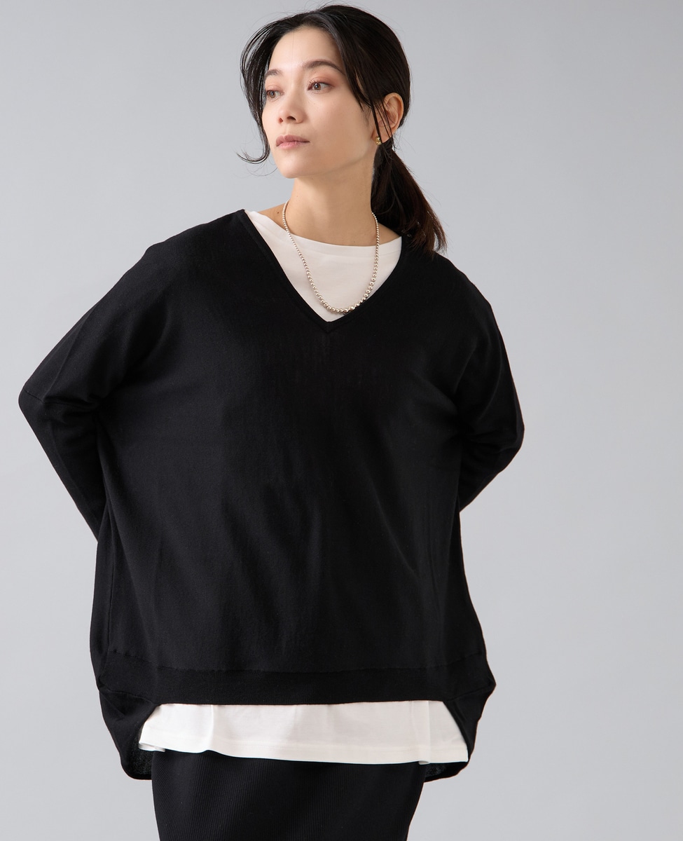 【定番】前後V袖リブオーバーニット