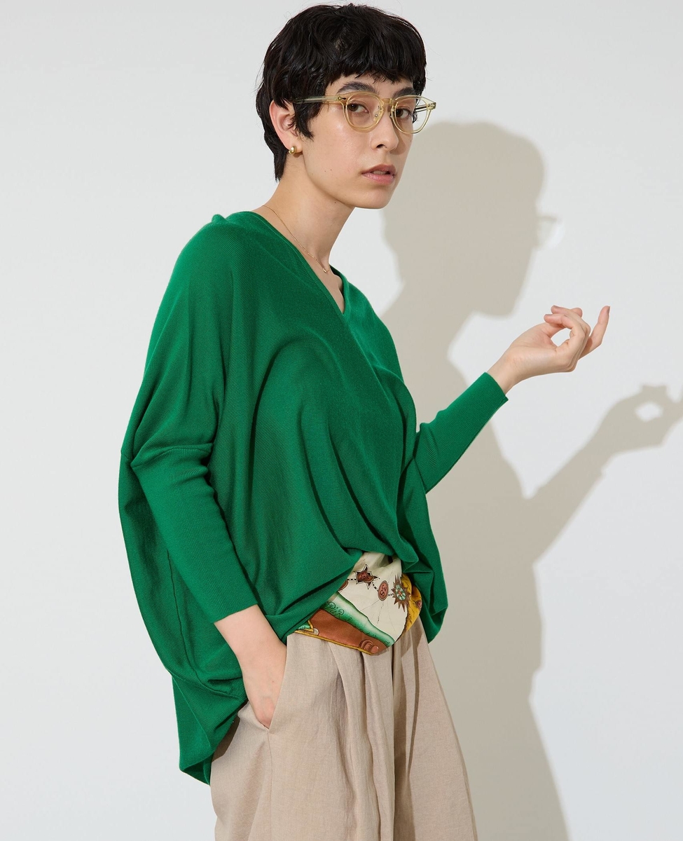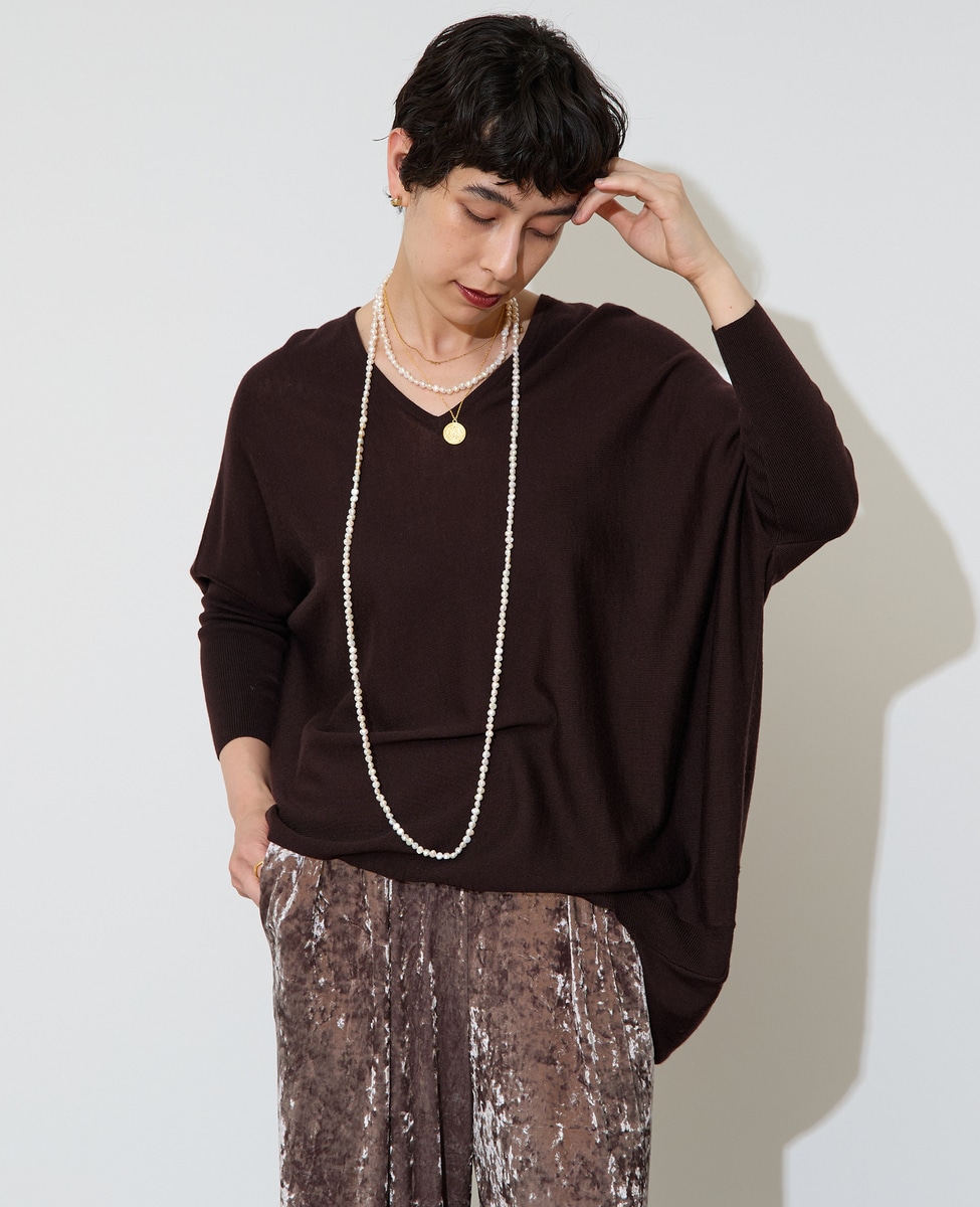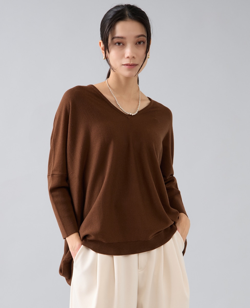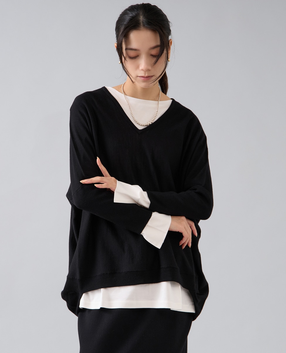 【定番】前後V袖リブオーバーニット