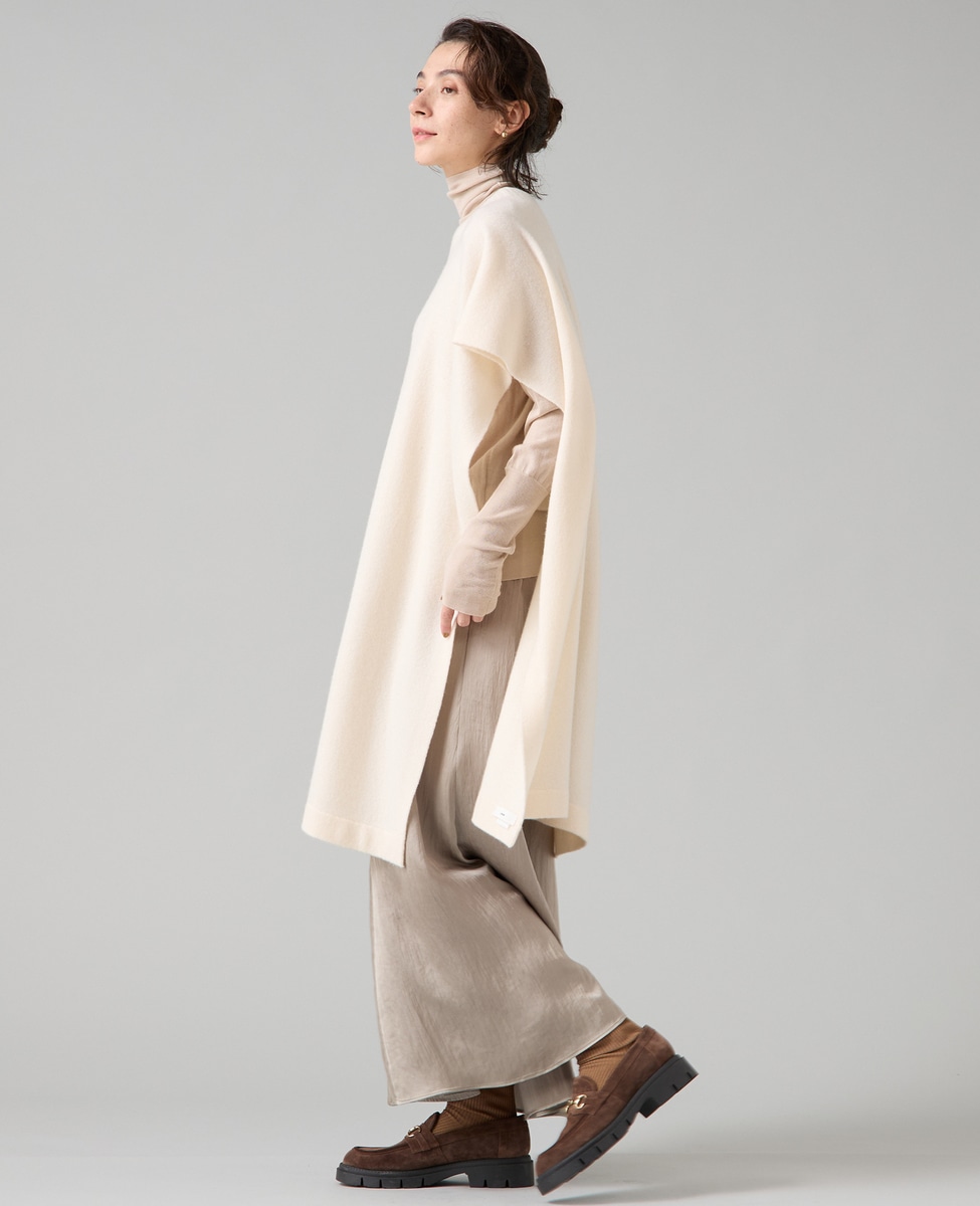 ネックラインはゆるモックネックになっているので、決まりがよく、着脱もラクラク。