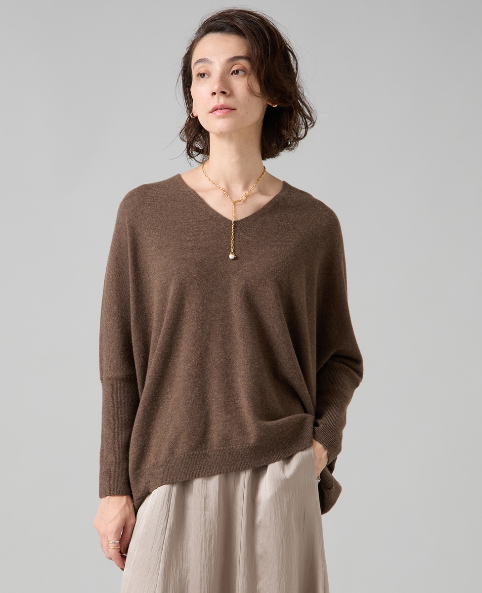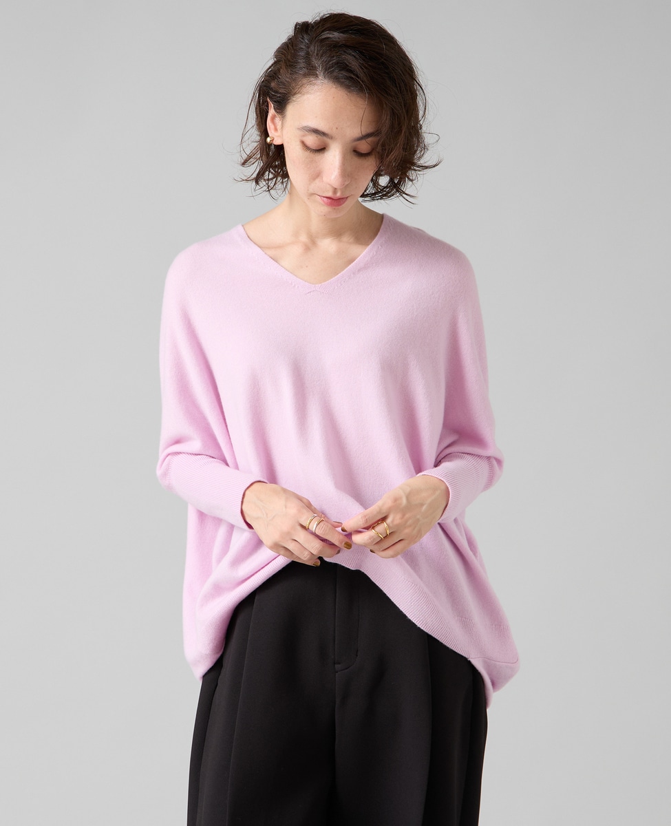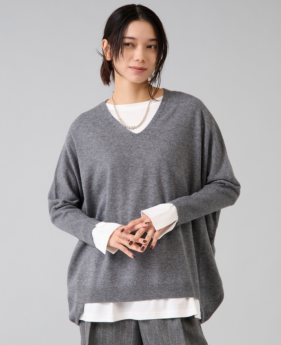 【定番】カシミア混Vネックビッグニット
