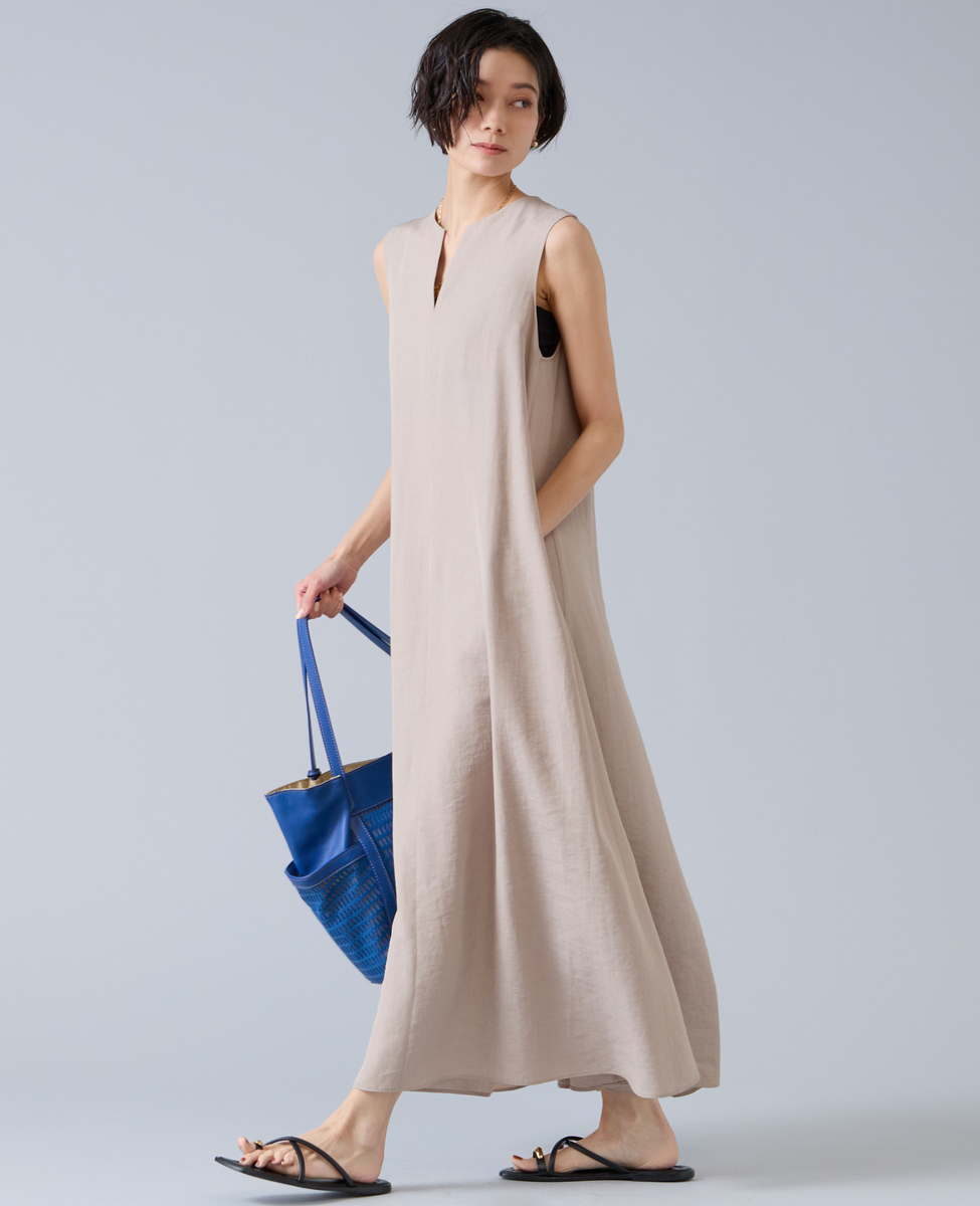 後ろあきノースリーブマキシワンピース