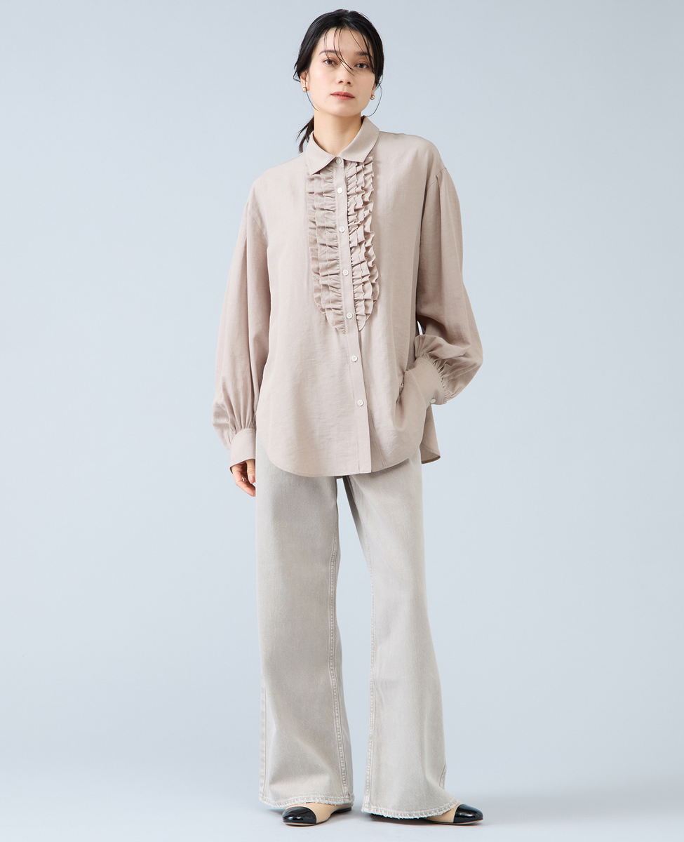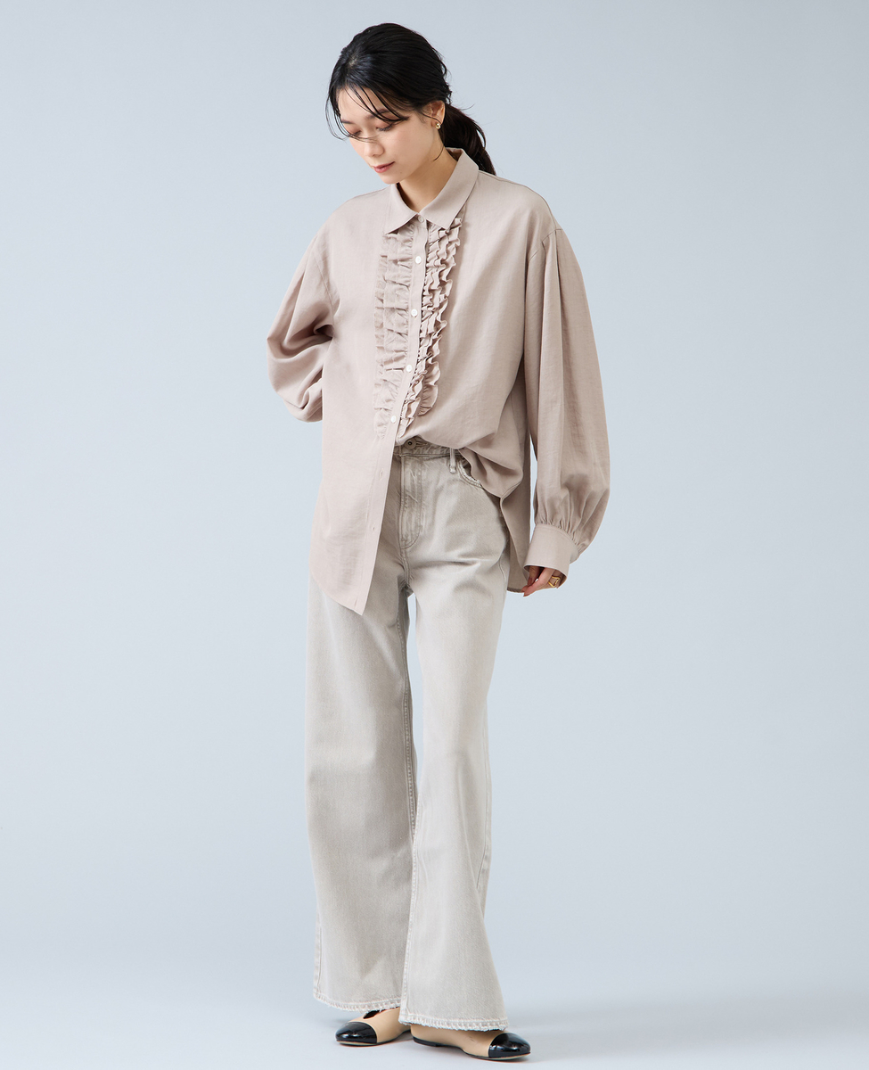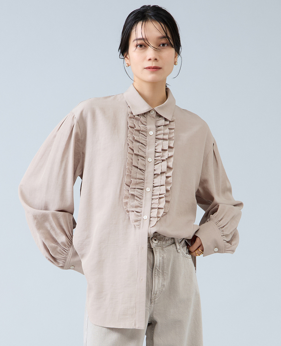 • シャンブレーフリルシャツブラウス 詳細画像 ベージュ 1